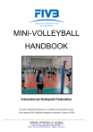 MINI-VOLLEYBALL HANDBOOK International Volleyball Federation The Mini-Volleyball Handbook is a modified and expanded version of the Newest Soft Volleyball Handbook published in Japan in 2008 FÉDÉRATION INTERNATIONALE DE VOLLEYBALL Edouard-Sandoz 2-4 CH-1006 Lausanne - SWITZERLAND Tel : +41 (21) 345 3535 Fax : +41 (21) 345 3545 E-Mail : technical.development@fivb.org Website : www.fivb.org By Prof. Hiroshi Toyoda (Author) (Editor) International Volleyball Federation President of the Technical Commission, Former President of the Coaching and Rules of the Game Commissions, Former Member of the Board of Administration, Coach Instructor Japan Amateur Sports Association Standing Director, Master Coach, Chief Instructor Japan Volleyball Association Advisory Member, Former Vice President and Managing Director International Volleyball Federation Mini-Volleyball Handbook 2 Table of Contents CHAPTER 1 BEFORE STARTING TO COACH MINI-VOLLEYBALL Page A. GOAL OF MINI-VOLLEYBALL COACHING…………………………………………………….…………………………………...4 B. PHYSICAL AND MENTAL CONDITION OF MINI-VOLLEYBALL PLAYERS……………………………………………5 C. W HAT COACHES NEED TO PREPARE FOR W HEN COACHING…………………………………………………….…9 D. W HAT COACHES NEED TO PAY ATTENTION TO WHEN COACHING…………………………….…..……………10 CHAPTER 2 PROCESS OF COACHING AND TEACHING DRILLS IN MINI-VOLLEYBALL Page A. THE THREE STEPS OF VOLLEYBALL COACHING…………………………………………………….……………………11 B. SPECIFIC EXAMPLES OF COACHING MINI-VOLLEYBALL…………………………………………………….………..12 C. EXERCISES TO GET USED TO THE BALL…………………………………………………….………………………………..14 D. PASSING THE BALL FREELY…………………………………………………….…………………………………………………...27 E. SETTING AND SPIKING…………………………………………………….……………………………………………………………45 3 Chapter 1 Before Starting to Coach Mini-Volleyball A. Goal of Mini-Volleyball Coaching These days, volleyball is played by many groups: from primary school children to mothers’ clubs to Olympians, in 217 nations and regions. It is one of the three most popular sports in the world and has grown to be one of the main disciplines of the Olympics. The reason for this outstanding success is that volleyball is a highly versatile sport. It can be practiced by young and old, men and women, and it requires very little equipment. One can play in the gym, on the grass in the park or on the sand at the beach. Volleyball is a sport that provides physical activity for the entire body and thus contributes to overall well-being. It includes controlled, whole-body exercises such as passing the ball, jumping, running and rolling without stepping into the opponent’s court. As for mini-volleyball, it should be viewed as a sport activity with an educational purpose, i.e., fostering collaboration and teamwork, and teaching the importance of developing a strong body and a healthy mind. These characteristics of mini-volleyball can be used by coaches to help children learn the joy of sports through training and playing. Considering the above, it goes without saying that winning is not the ultimate goal in mini-volleyball. One should always remember that coaching mini-volleyball is about providing valuable experiences that children need for their future, while enabling them to experience the joys of self-improvement. 4 B. Physical and Mental Condition of Mini-Volleyball Players One of the main goals of coaching mini-volleyball is to foster the development of children through sporting activities. To attain this goal, mini-volleyball coaches must possess an understanding of the physical and mental condition of the children placed under their responsibility. At the same time, coaches need to be able to measure the children’s progress and training results using various testing methods. Improving Children’s Physical Development and Performance In recent years, the strength and performance of children have been changing for the better. This phenomenon is largely due to improvements in the social environment, such as nutrition and quality of living. This notwithstanding, a worrying trend is the increase observed in the number of overweight children, which is detrimental to the enjoyment of sport. It is all the more important, therefore, to pay attention to the nutrition and healthcare of children playing volleyball. Regarding the strength and performance of children, very few differences exist when one compares boys and girls between the ages of 10 and 12. These findings would tend to suggest that the same rules of mini-volleyball can be used for both genders. More generally, the physical performance in humans consists of five elements: muscular strength, agility, general endurance, flexibility, and body control abilities. Of these, body control abilities such as timing, rhythm, balance, feeling of direction, concentration, and relaxation start to develop first. Figure 1 depicts the increase in human brain weight by age. As can be seen, the nerve centres controlling perception and movement develop rapidly up to the age of 8. Figure 2 shows that reaction times improve particularly between the ages of 8 and 15, when children are in primary or junior high school. Figure 1 Human brain weight Figure 2 Reaction times 5 These data underscore the fact that consistent and well-planned coaching is necessary to achieve body control and attain ideal fitness in volleyball. The most suitable time for players to develop these athletic and body control abilities is when they are young. If incorrect movement patterns are learned, considerable effort is required to cor