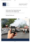 Sambrook Paginated_Layout 1 06/06/2012 15:44 Page 1 REUTERS INSTITUTE for the STUDY of JOURNALISM REPORT Delivering Trust: Impartiality and Objectivity in the Digital Age Richard Sambrook July 2012 Cover image © TBI Communications Sambrook Paginated_Layout 1 06/06/2012 15:44 Page 2 About the Author Richard Sambrook is Professor of Journalism and Director of the Centre for Journalism at Cardiff University. He spent 30 years as a journalist and manager in the BBC, editing many major programmes and covering events from China to the Middle East, Europe, Russia and the United States. He was Director of the BBC's Global News Division, overseeing services for audiences of 240 million people each week. Published by the Reuters Institute for the Study of Journalism Sambrook Paginated_Layout 1 06/06/2012 15:44 Page 3 Contents 1. Introduction 2. Definitions 3. The History: The Emergence of Professional Norms 4. The View From Nowhere – Objectivity in Print Journalism 5. Who Can You Trust? Different Kinds of Journalism 6. Process and Output: The How versus the What 7. The UK Debate: Broadcast Regulation 8. Impartiality and Moral Equivalence 9. Some Proposed Solutions 10. Conclusion Bibliography 1 Sambrook Paginated_Layout 1 06/06/2012 15:44 Page 4 Sambrook Paginated_Layout 1 06/06/2012 15:44 Page 5 1. Introduction From such crooked wood as man is made of, nothing perfectly straight can be built. (Immanuel Kant, ‘Idea for a Universal History’) Here is the fact of the age: People believe nothing. They think everything is spin and lies. The minute a government says A is true, half the people on Earth know A is a lie. And when people believe nothing, as we know, they will believe anything. (Peggy Noonan, Wall St Journal, 11 May 2011) Questions of truth, trust, bias, partisanship, and verification have been raised since the first steps in public communication. In today’s environment of democratised mass digital media they are as important as ever. However, the ideas of impartiality and objectivity – at the heart of serious news journalism for most of the last century – are now under pressure and even attack in the digital age. They emerged as journalistic norms to describe a professional editorial discipline that sought to avoid personal and political biases and to encourage trust in newspaper journalism. They were then adopted by regulators in the early years of broadcasting when limited spectrum conferred significant influence on those with access to the airwaves. Although often used interchangeably, they mean different things. Impartiality relates to absence of bias and objectivity to identifying facts and evidence. In essence, impartiality and objectivity have been what separate journalism from propaganda, entertainment, or fiction. Invented in an age of information scarcity, their relevance in an age of information abundance is now being questioned. Does a neutral voice hold the same value today as it did a century ago? Is the emphasis on impartiality in news actually an impediment to a free market in ideas? And with technological convergence is regulation of impartiality even achievable? Today, in the digital age of plenty, notions of special responsibilities being placed on those with a public voice, and different approaches for print and broadcasting, are rapidly breaking down. Public attitudes to the media, and what they trust, are changing rapidly too. What is the role of regulation or professional codes in the age of social media when anyone can have a voice in the public debate? How do they fit with the modern focus on greater transparency? In the US the broadcasting ‘fairness doctrine’ was abandoned 25 years ago and heralded a significant change in US radio and TV news. In the UK some are arguing for a similar relaxation of impartiality regulation – with a debate on what the consequences would be here. As the disciplines of impartiality and objectivity break down, there are increased signs of propaganda, entertainment and fiction seeping into journalism. With a public inquiry into the methods of the media in the UK, and debate about a ‘post-truth’ political environment in the US, the need for media that can be trusted seems as great as ever. Do we need different codes or journalistic norms for the digital age? Or, in a world where a torrent of information and misinformation make it harder than ever to know what is real, are impartiality and objectivity more important than ever to establish what is true and to raise the quality of public debate? 3 Sambrook Paginated_Layout 1 06/06/2012 15:44 Page 6 Broadcasters, regulators, politicians, and journalists are struggling to make the solutions of the last century fit the changed media characteristics and conditions in the new century. For those seeking solutions to the trust-deficit in modern media, there is debate about a range of different solutions. These include: • • • • • • greater transparency, redefining objectivity, new codes of practice, new forms of regulation or kitemarking, technology solutions, greater emphasis on education and media literacy. This paper is a brief review of the current arguments and some of the proposed solutions in the context of the US and UK market. It proposes three principles to help retain the heart of these norms without being tethered to approaches now seen as anachronistic. These suggest a new premium on: • • • evidence-led newsgathering, diversity of opinion, transparency about methods and values. In the interests of transparency I should point out I spent 30 years producing news for the BBC – which is tightly regulated for impartiality – and found the requirement an aid to delivering high-quality journalism, never a hindrance. 4 Sambrook Paginated_Layout 1 06/06/2012 15:44 Page 7 2. Definitions There is much confusion over terms. ‘Impartiality’ and ‘objectivity’ are used interchangeably, although they mean different things, and are used differently in the