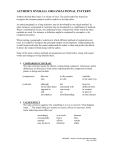 AUTHOR’S OVERALL ORGANIZATIONAL PATTERN Authors develop their ideas in a variety of ways. The good reader has learned to recognize the common patterns used by authors to develop ideas. An entire paragraph, or a long selection, may be developed by one single method. In other instances, a paragraph or selection may be developed by a combination of methods. When a combination occurs, one method provides a framework within which the other methods are used. For instance, a definition might be explained by examples, or by comparison/contrast. When reading a paragraph or selection in which different methods of organization are used, it is helpful to recognize the principal method of development. Understanding the overall framework helps the reader understand the author’s ideas and predict the details. It allows the reader to think along with the author. Some of the most common methods of organization are listed below, along with signal words and strategies to help identify them. 1. COMPARISON/CONTRAST The topic sentence names the objects or ideas being compared. Likenesses and/or differences are discussed. Some terms indicating that the comparison/contrast pattern is being used include: (comparison) likewise also in like manner as with similarly in the same way (contrast) although on the other hand opposed to still nevertheless but contrasted with conversely yet notwithstanding however different from in contrast in spite of on the contrary 2. CAUSE/EFFECT The topic sentence suggests why something is as it is or answers “what happens when…” The details then give reasons or causes, effects or outcomes. Some terms indicating cause/effect are: accordingly consequently reasons may be due to as a result hence effects therefore because thus results affect READING – Author’s Overall Organizational Pattern Rev. July 2005 3. TIME ORDER (Sequence) The topic sentence may suggest or directly state that a process, procedure, or experiment will be discussed, or an event may be introduced from its beginning. Words like “steps” or “stages” may be used in the topic sentence. Some terms pointing out that a time order pattern is being used are: after before formerly thereupon temporarily first next afterward during presently until at last finally following this at that time immediately shortly while now eventually then 4. GENERALIZATION AND EXAMPLE The topic sentence might suggest that examples will be given, like in the following topic sentences: “There are many cases when life is not fair.” “Look around you and you will see many examples of the importance of electricity.” “There are several movies that treat women only as sexual objects.” Some terms indicating that generalization and example is being used are: for example to illustrate for instance to demonstrate such as 5. SUMMARY The author seems to be tying up loose ends and condensing information of a more detailed nature. Some terms that point out a summary pattern are: in brief on the whole in conclusion to sum up in short to summarize 6. DEFINITION The topic sentence should name the thing to be defined, and the word “is” may be emphasized and repeated often. Terms that define the pattern include: means refers to defined as consists of is 7. CLASSIFICATION In the paragraph or selection, details are separated into categories of classes and then there is a discussion of how each class fits into the pattern. Terms that indicate the classification pattern is being used include: properties characteristics kinds elements aspects features types READING – Author’s Overall Organizational Pattern Rev. July 2005 8. CLARIFICATION The topic sentence mentions an idea which is then discussed at length in simple terms. Some terms indicating that clarification is being used are: as a matter of fact in fact obviously clearly in other words evidently of course 9. LOCATION/SPATIAL ORDER The topic sentence may refer to space order. Some terms that indicate this pattern is being used are: above beyond nearby opposite adjacent to close to next to within below inside around on 10. SIMPLE LISTING/ENUMERATION The supporting details are organized into a list of points which have no inherent order or connection. Some terms pointing out this pattern are: also equally important moreover and further in addition besides furthermore Author’s Overall Organizational Pattern EXERCISES: For each selection, circle the letter indicating the principal pattern of organization used by the author. Responsibility, a concept basic to Reality Therapy, is here defined as the ability to fulfill one’s needs, and to do so in a way that does not deprive others of the ability to fulfill their needs. To illustrate, a responsible person is able to give and receive love. If a girl, for example, falls in love with a responsible man, we would expect him either to return her love or to let her know in a considerate way that he appreciates her affection, but that he does not share her feelings. If he takes advantage of her love, we would not consider him responsible. A responsible person also does that which gives a feeling of selfworth and a feeling that he is worthwhile to others. He is motivated to strive and perhaps endure privation to attain self-worth. When a responsible person says that he will perform a job for us, he will try to accomplish what was asked. 1. In developing the passage, the organizational pattern used by the author could be described as a. contrast and comparison b. time order c. simple listing d. definition READING – Author’s Overall Organizational Pattern Rev. July 2005 If we study a child’s handwriting, certain personality traits are revealed. If children have handwriting that is slanted only a little to the right or is straight up and down, they have a moderate temperament and use good judgment. This type is usually affectionate and sharing. However, if the handwriting slants to the far right, they are usually emotional children who re