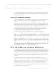 COMPUTER NETWORKING PRIMER To help you understand the uses and benefits of Novell products, this primer explains basic computer networking concepts and technology and also introduces computer networking terminology. What Is a Computer Network? On the most fundamental level, a computer network is an interconnected collection of devices that enables you to store, retrieve, and share information. Commonly connected devices include personal computers (PCs), minicomputers, mainframe computers, terminals, workstations, thin clients, printers, fax machines, pagers, and various data-storage devices. Recently, other types of devices have become network connectable, including interactive televisions, videophones, handheld devices, and navigational and environmental control systems. Eventually, networked devices everywhere will provide two-way access to a vast array of resources on a global computer network through the largest network of all, the Internet. In today’s business world a computer network is more than a collection of interconnected devices. For many businesses the computer network is the resource that enables them to gather, analyze, organize, and disseminate information that is essential to their profitability. The rise of intranets and extranets—business networks based on Internet technology—is an indication of the critical importance of computer networking to businesses. Intranets, extranets, and the Internet will be treated in more detail in a later section. For now, it is enough to understand that most businesses have installed intranets to collect, manage, and disseminate information more quickly and easily than ever before. They established intranets simply to remain competitive; now, the momentum continues, and extending the company network to the Internet is the next technological transformation of the traditional business. What Are the Benefits of Computer Networking? The most obvious benefit of computer networking is that you can store virtually any kind of information at, and retrieve it from, a central location on the network as well as access it from any connected computer. You can store, retrieve, and modify textual information such as letters and contracts, audio information such as voice messages, and visual images such as facsimiles, photographs, medical x-rays, and even video segments. A network also enables you to combine the power and capabilities of diverse equipment and to provide a collaborative medium to combine the skills of different people—regardless of physical location. Computer networking enables people to share information and ideas easily, so they can work more efficiently and productively. Networks also improve commercial activities such as purchasing, selling, and customer service. Networks are making traditional business processes more efficient, more manageable, and less expensive. COMPUTER NETWORKING PRIMER 1 Cost-Effective Resource Sharing By networking your business computers you can reduce the amount of money you spend on hardware by sharing components and peripherals while also reducing the amount of time you spend managing your computer system. Equipment sharing is extremely beneficial: when you share resources, you can buy equipment with features that you would not otherwise be able to afford as well as utilize the full potential of that equipment on your network. A properly designed network can result in both lower equipment costs and increased productivity. Suppose that you had a number of unconnected computers. Employees using these computers would not be able to print unless you purchased a printer for each computer or unless users manually transferred files to computers with printers. In this scenario you would be choosing between hardware and labor expenses. Networking the computers would give you other alternatives. Because all users could share any networked printer, you would not need to buy a printer for every computer. As a result, instead of buying numerous inexpensive, low-end printers that would sit idle most of the time, you could buy a few inexpensive printers and a few printers with high-end productivity features. The more powerful printers would be able to print more rapidly and with better quality than the less expensive ones. In addition, the more powerful printers might also be able to print in color and to sort, staple, or bind documents. When you select the right mix of printers and assign each network user appropriate access to them, you have enough printing power to address the needs of all of your employees. Rather than leave expensive equipment idle, you provide your employees with the latest, most powerful productivity features—all for a significantly lower cost than if you were to purchase an inexpensive printer for each workstation on the network. A network enables you to share any networkable equipment and realize the same benefits that you would enjoy from sharing printers. On a network, you can share e-mail systems, modems, facsimile machines, data storage devices such as hard disks and CD-ROM drives, data backup devices such as tape drives, and all network-enabled software. When you compare the costs associated with sharing these resources to the costs of purchasing them for each computer, the savings can be enormous. 2 COMPUTER NETWORKING PRIMER A network also enables you to save money on software. Instead of buying separate copies of the same application for various machines, you can purchase one copy with enough user licenses for your network. In large businesses the amount of money saved on software is substantial. Finally, you will also be able to reduce your administrative overhead. On a computer network, updates to software, changes in user information, and network security can all be accomplished from one location. With standalone computers you would be required to make these updates on each individual computer workstation. Streamlined Business Processes A well-designed computer network produ