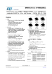 STM8S207xx STM8S208xx Performance line, 24 MHz STM8S 8-bit MCU, up to 128 KB Flash, integrated EEPROM, 10-bit ADC, timers, 2 UARTs, SPI, I²C, CAN Datasheet - production data Features Core – Max fCPU: up to 24 MHz, 0 wait states @ fCPU 16 MHz – Advanced STM8 core with Harvard architecture and 3-stage pipeline – Extended instruction set – Max 20 MIPS @ 24 MHz Memories – Program: up to 128 Kbytes Flash; data retention 20 years at 55 °C after 10 kcycles – Data: up to 2 Kbytes true data EEPROM; endurance 300 kcycles – RAM: up to 6 Kbytes Clock, reset and supply management – 2.95 to 5.5 V operating voltage – Low power crystal resonator oscillator – External clock input – Internal, user-trimmable 16 MHz RC – Internal low power 128 kHz RC – Clock security system with clock monitor – Wait, active-halt, & halt low power modes – Peripheral clocks switched off individually – Permanently active, low consumption power-on and power-down reset Interrupt management – Nested interrupt controller with 32 interrupts – Up to 37 external interrupts on 6 vectors Timers – 2x 16-bit general purpose timers, with 2+3 CAPCOM channels (IC, OC or PWM) – Advanced control timer: 16-bit, 4 CAPCOM channels, 3 complementary outputs, deadtime insertion and flexible synchronization – 8-bit basic timer with 8-bit prescaler – Auto wakeup timer – Window watchdog, independent watchdog February 2015 This is information on a product in full production. LQFP80 14 x 14 mm LQFP64 14 x 14 mm LQFP64 10 x 10 mm LQFP48 7 x 7 mm LQFP44 10 x 10mm LQFP32 7 x 7 mm Communications interfaces – High speed 1 Mbit/s active beCAN 2.0B – UART with clock output for synchronous operation - LIN master mode – UART with LIN 2.1 compliant, master/slave modes and automatic resynchronization – SPI interface up to 10 Mbit/s – I2C interface up to 400 Kbit/s 10-bit ADC with up to 16 channels I/Os – Up to 68 I/Os on an 80-pin package including 18 high sink outputs – Highly robust I/O design, immune against current injection – Development support – Single wire interface module (SWIM) and debug module (DM) 96-bit unique ID key for each device Table 1. Device summary Reference Part number STM8S207xx STM8S207MB, STM8S207M8, STM8S207RB, STM8S207R8, STM8S207R6, STM8S207CB, STM8S207C8, STM8S207C6, STM8S207SB, STM8S207S8, STM8S207S6, STM8S207K8, STM8S207K6 STM8S208xx STM8S208MB, STM8S208RB, STM8S208R8, STM8S208R6, STM8S208CB, STM8S208C8, STM8S208C6, STM8S208SB, STM8S208S8, STM8S208S6 DocID14733 Rev 13 1/117 www.st.com Contents STM8S207xx STM8S208xx Contents 1 Introduction . . . . . . . . . . . . . . . . . . . . . . . . . . . . . . . . . . . . . . . . . . . . . . . . 9 2 Description . . . . . . . . . . . . . . . . . . . . . . . . . . . . . . . . . . . . . . . . . . . . . . . . 10 3 Block diagram . . . . . . . . . . . . . . . . . . . . . . . . . . . . . . . . . . . . . . . . . . . . . 12 4 Product overview . . . . . . . . . . . . . . . . . . . . . . . . . . . . . . . . . . . . . . . . . . 13 5 6 4.1 Central processing unit STM8 . . . . . . . . . . . . . . . . . . . . . . . . . . . . . . . . . 13 4.2 Single wire interface module (SWIM) and debug module (DM) . . . . . . . . 14 4.3 Interrupt controller . . . . . . . . . . . . . . . . . . . . . . . . . . . . . . . . . . . . . . . . . . 14 4.4 Flash program and data EEPROM memory . . . . . . . . . . . . . . . . . . . . . . . 14 4.5 Clock controller . . . . . . . . . . . . . . . . . . . . . . . . . . . . . . . . . . . . . . . . . . . . . 16 4.6 Power management . . . . . . . . . . . . . . . . . . . . . . . . . . . . . . . . . . . . . . . . . 17 4.7 Watchdog timers . . . . . . . . . . . . . . . . . . . . . . . . . . . . . . . . . . . . . . . . . . . 17 4.8 Auto wakeup counter . . . . . . . . . . . . . . . . . . . . . . . . . . . . . . . . . . . . . . . . 18 4.9 Beeper . . . . . . . . . . . . . . . . . . . . . . . . . . . . . . . . . . . . . . . . . . . . . . . . . . . 18 4.10 TIM1 - 16-bit advanced control timer . . . . . . . . . . . . . . . . . . . . . . . . . . . . 18 4.11 TIM2, TIM3 - 16-bit general purpose timers . . . . . . . . . . . . . . . . . . . . . . . 18 4.12 TIM4 - 8-bit basic timer . . . . . . . . . . . . . . . . . . . . . . . . . . . . . . . . . . . . . . . 19 4.13 Analog-to-digital converter (ADC2) . . . . . . . . . . . . . . . . . . . . . . . . . . . . . 19 4.14 Communication interfaces . . . . . . . . . . . . . . . . . . . . . . . . . . . . . . . . . . . . 19 UART1 . . . . . . . . . . . . . . . . . . . . . . . . . . . . . . . . . . . . . . . . . . . . . . . . . . 20 4.14.2 UART3 . . . . . . . . . . . . . . . . . . . . . . . . . . . . . . . . . . . . . . . . . . . . . . . . . . 20 4.14.3 SPI . . . . . . . . . . . . . . . . . . . . . . . . . . . . . . . . . . . . . . . . . . . . . . . . . . . . . 21 4.14.4 I2C . . . . . . . . . . . . . . . . . . . . . . . . . . . . . . . . . . . . . . . . . . . . . . . . . . . . . 22 4.14.5 beCAN . . . . . . . . . . . . . . . . . . . . . . . . . . . . . . . . . . . . . . . . . . . . . . . . . . 22 Pinouts and pin description . . . . . . . . . . . . . . . . . . . . . . . . . . . . . . . . . . 23 5.1 Package pinouts . . . . . . . . . . . . . . . . . . . . . . . . . . . . . . . . . . . . . . . . . . . . 23 5.2 Alternate function remapping . . . . . . . . . . . . . . . . . . . . . . . . . . . . . . . . . . 32 Memory and register map . . . . . . . . . . . . . . . . . . . . . . . . . . . . . . . . . . . . 34 6.1 2/117 4.14.1 Memory map . . . . . . . . . . . . . . . . . . . . . . . . . . . . . . . . . . . . . . . . . . . . . . 34 DocID14733 Rev 13 STM8S207xx STM8S208xx 6.2 Contents Register map . . . . . . . . . . . . . . . . . . . . . . . . . . . . . . . . . . . . . . . . . . . . . . 35 7 Interrupt vector mapping . . . . . . . . . . . . . . . . . . . . . . . . . . . . . . . . . . . . 46 8 Option bytes . . . . . . . . . . . . . . . . . . . . . . . . . . . . . . . . . . . . . . . . . . . . . . 47 9 Unique ID . . . . . . 