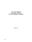 Area Agency Region 8 Interagency Agreement For Early Childhood Transitions October 6, 2009 Revised 1/12, 3/14 2014-2017 1 TABLE OF CONTENTS Section l Overview Section II – General Steps of the Transition Process Section III – Protocols & Procedures for Transitions from Family-Centered Early Supports and Services vendor programs of One Sky Community Services to Preschool Special Education Programs in Region 8 Protocol l: The IFSP Team shall develop a transition plan in the IFSP in accordance with HeM 510 and Part C of the IDEA 2004 Protocol 2: The IFSP Team shall determine if the child is potentially eligible for special education Protocol 3: If the IFSP Team determines the child is potentially eligible, FCESS shall initiate a referral to the appropriate School District and notify the NH Department of Education Protocol 4: The School District shall schedule and convene the IEP Team and conduct the disposition of referral process/meeting Protocol 5: With parental permission, FCESS shall schedule and conduct the Transition Conference Protocol 6: Procedures for the combination of the Transition Conference and the Disposition of Referral or other IEP Team meeting Protocol 7: Based upon the outcome of the disposition, the School District shall schedule/conduct evaluations and convene the IEP Team to determine eligibility for special education services, document services through the IEP and determine placement as appropriate. Protocol 8: Implementation: The IEP shall be in place by the child’s 3rd birthday. Protocol 9: Procedures for the transitions of children whose third birthday occur during the summer months Protocol 10: Procedures for children who are referred to FCESS more than 45 calendar days but less than 90 calendar days before their third birthday Protocol 11: Procedures for children who are referred to FCESS less than 45 calendar days before their third birthday Protocol 12: Procedures for addressing concerns Protocol 13: Procedure for review of the Interagency Agreement 2014-2017 2 Section IV – Forms Form 1 Opt-Out Form Form 2 Referral to Special Education Form 3 Transition Conference Invitation Form 4 Sample Written Prior Notice Language Section V- Contact Information 2014-2017 3 Area Agency 8 Interagency Agreement For Early Childhood Transitions Section I - Overview A. Introduction This Interagency Agreement is entered into by One Sky Community Services, whose responsibility it is to oversee and administer Family Centered Early Supports and Services, its vendor programs Richie McFarland Children’s Center, Child and Family Services and any other vendor program One Sky Community Services employs, and the Fremont School District, Brentwood School District, East Kingston School District, Exeter School District, Kensington School District, Newfields School District, Stratham School District, Deerfield School District, Epping School District, Greenland School District, Hampton School District, Hampton Falls School District, Kingston School District, New Castle School District, Newington School District, Newmarket School District, North Hampton School District, Northwood School District, Nottingham School District, Portsmouth School District, Raymond School District, Rye School District, Seabrook School District and South Hampton School District. B. Purpose We, the providers of services for young children with disabilities and their families in the Greater Portsmouth Area, are committed to creating a collaborative process to ensure that those we serve experience a smooth and high quality transition from Early Supports and Services to Preschool Special Education. This process, while respectful of both service delivery systems and of families’ confidentiality and choice, promotes increased accountability, efficiency and communication that will benefit families and all those who serve them. We acknowledge that the following process is set forth to meet federal and state requirements, and most importantly to assist families in a smooth transition. We recognize that multiple factors affect this process including the age at which a child is first referred for services, families’ preferences, and our own human fallibility. Good communication among all parties is encouraged to help facilitate the established process. C. Scope This agreement shall be effective March 2014 to March 2017 and reviewed annually in the spring by representatives from One Sky Community Services, whose responsibility it is to oversee and administer Family Centered Early Supports and Services, its vendor programs Richie McFarland Children’s Center, Child and Family Services and any other vendor program the One Sky Community Services employs, and the Fremont School District, Brentwood School District, East Kingston School District, Exeter School District, Kensington School District, Newfields School District, Stratham School District, Deerfield School District, Epping School District, Greenland School District, Hampton School District, Hampton Falls School District, Kingston School District, New Castle School District, Newington School District, Newmarket School District, North Hampton School District, Northwood School District, Nottingham School District, Portsmouth School District, Raymond School District, Rye School District, Seabrook School District and South Hampton School District. 2014-2017 4 D. Participants This agreement and procedures have been developed and/or agreed to by the following: Representative Agency/Districts Contact Information See Contact Information and Signatures 2014-2017 5 Section II –General Steps of the Transition Process 27-29 months Meeting to Develop the Transition Plan After 7 day opt-out period IFSP Team meeting held: • Written Transition Plan completed and included in IFSP for ALL children • Transition booklet given to family (Blue Book) • A discussion/determination about whether the child is potentially eligible for special education Parents are informed of their 