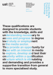 Level 3 – Specification Creative Media Production & Technology Diploma and Extended Diploma in Creative Media Production & Technology These qualifications are designed to provide students with the knowledge, skills and understanding necessary to access and progress to degree level study or employment in the media sector. They provide an opportunity for those with an interest in media to explore, develop and test their creativity within a qualification structure which is stimulating and demanding and provides a supportive transition from general to more specialised study. Contents 1 Frame of Reference 2 Units & Indicative Content 1.1Definitions and characteristics 3 Unit 1Introduction to Media Processes and Technical Skills 12 1.2Objectives 3 14 1.3Qualification structure 4 Unit 2Introduction to Design and Research Skills in Creative Media Production 16 1.4Commentary on qualification structure 5 Unit 3Introduction to Professional Practice in Creative Media Production 18 1.5Admissions 7 Unit 4Critical and Contextual Awareness in Creative Media Production 20 1.6Induction 7 Unit 5Investigating Audio Production and Technology 1.7Planning the programme 22 7 Unit 6Investigating Visual Production and Technology Unit 7Investigating Interactive Media Production and Technology 24 Unit 8Developing a Creative Media Production Project 26 Unit 9Characteristics and Engaging with an Audience 30 Unit 10Preparing for Progression 32 Unit 11Specialist Study in Creative Media Production 34 1.8Personal and Professional Development 8 1.9Assessment 9 1.10Accreditation and funding 9 Unit 12Project Proposal in Creative Media Production & Technology – Externally assessed 36 Unit 13Project Realisation in Creative Media Production & Technology 40 3 Guidance for Students Unit 8Developing a Creative Media Production Project Unit 12Project Proposal in Creative Media Production & Technology 44 46 4 Grade Criteria Unit 8Developing a Creative Media Production Project 48 Unit 12Project Proposal in Creative Media Production & Technology 50 Unit 13Project Realisation in Creative Media Production & Technology 52 5 Grade Exemplification 55 Frame of Reference 1.1 Definitions and characteristics The Level 3 Diploma and Extended Diploma in Creative Media Production & Technology are designed to provide young people with the knowledge, skills and understanding necessary to access and progress to degree level study or employment in the media sector. They provide an opportunity for those who have an interest in media to explore, develop and test their creativity within a qualification structure which is stimulating and demanding and provides a supportive transition from general to more specialised study. Study for the qualifications is not time constrained but will normally be over a period of one year for the Diploma and two years for the Extended Diploma. The structure of the qualifications, with units linked to provide coherence, will allow students to synthesise newly acquired practical skills with theoretical knowledge and understanding as they explore their aptitude and ambition and the particular characteristics of a broad range of creative media disciplines. Students will be encouraged to recognise not only the unique characteristics of different disciplines, but also the dynamic and potentially innovative relationships between those disciplines. The qualifications will require students to develop a coherent and effective working methodology, through immersion, reiteration and reinforcement, which will enable them to react positively and creatively across a diverse range of assignments and creative activities. The final unit of the Extended Diploma will demonstrate the independent capacity to self-initiate, research, analyse, organise, reflect and evaluate commensurate with study in higher education. The qualifications will encourage student recognition of the broader context within which the media industries operate and the necessity to develop transferable skills to ensure an effective contribution to both the immediate and future development of those industries. The qualifications are characterised by experiential, experimental and integrated learning, relying on the application and transfer of recognised skills, whilst valuing the accidental and novel results that can occur in both individual and collaborative practice, and recognising common principles and distinctive characteristics within the wider media sector. 1.2 Objectives The qualifications will enable students to: 1.Have a critical and contextual awareness of different perspectives and approaches within the media sector or related subjects of study or work 2.Research, analyse and evaluate relevant information and ideas in order to develop creative solutions 3.Understand, adapt and safely use appropriate and practical methods and skills for creative production 4.Solve complex problems through the application of practical, theoretical and technical understanding 5.Critically review the effectiveness and appropriateness of methods, actions and results 6.Use evaluative and reflective skills in order to take responsibility for own learning, development and decision-making 7.Take responsibility for the research, planning, time management and actions to access progression opportunities 8.Effectively present themselves and their work to appropriate audiences. 3 Frame of Reference 1.3 Qualification structure Diploma in Creative Media Production & Technology Extended Diploma in Creative Media Production & Technology Students must complete eight mandatory units Students must complete units 1—8 of the Diploma in addition to Units 9—12. Unit 1Introduction to Media Processes and Technical Skills Level 3 12 credits 60 GLH Unit 9Characteristics and Contexts in Creative Media Production Level 3 18 credits 90 GLH Unit 2Introduction to Design and Research Skills in Creative Media Production Level 3 12 credits 60 GLH Unit 10Preparing for Progression in Creative Media Producti