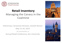 Retail Inventory Managing the Canary in the Coalmine Vishal Gaur, Saravanan Kesavan, Ananth Raman May 15-16, 2014 for presentation at Annual Retail Conference, Koc University Key takeaways • Assessment of retail inventories is important for retailers, their investors, and their lenders (and suppliers) • But is difficult because • – inventory turnover is a coarse metric – inventory hides information A new metric, Adjusted inventory turnover (AIT), – to benchmark inventory productivity performance by adjusting inventory turnover for its correlation with gross margin and capital intensity. – can be computed by retailers, investors, as well as lenders. – examples showing how and why AIT is useful 2 Anecdotal Evidence • “When I research a stock, I always check to see if inventories are piling up… With a manufacturer or a retailer, an inventory buildup is usually a bad sign. When inventories grow faster than sales, it is a red flag.” – Peter Lynch* * One Up On Wall Street : How To Use What You Already Know To Make Money In The Market, page 215 3 Inventory, a widely used metric of inventory productivity, varies widely across firms or even over time. Thus, performance comparisons based on inventory turnover can be erroneous. Variation in inventory turnover within retail segments • Within-firms variation Range of inventory turnover of commonly known firms in 1985-2003: Amazon.com Best Buy Co. Inc. 2.8 – 8.5 Circuit City Stores, Inc. 4.0 – 5.8 The Gap, Inc. 3.6 – 6.3 Radio Shack Corp. 1.1 – 3.1 Wal-Mart Stores, Inc. 4.9 – 7.9 • Across-firms variation Range of inventory turnover of supermarket chains during the year 2000: 4.7 to 19.5. • Inventory turnover = [Inventory @ cost]/[Cost of goods sold] OR [Inventory @ retail]/[Sales] 5 Variation in inventory turnover across retail segments Inventory Turnover 4.57 Gross Margin 37% Catalog, Mail-Order Houses 8.60 39% Department Stores 3.87 34% Drug & Proprietary Stores 5.26 28% Food Stores 10.78 26% Hobby, Toy, And Game Shops 2.99 35% Home Furniture & Equip Stores 5.44 40% Jewelry Stores 1.68 42% Radio,TV, Cons Electr Stores 4.10 31% Variety Stores 4.45 29% Retail Industry Segment Apparel And Accessory Stores Source: Gaur, Fisher and Raman (2005) “An econometric analysis of inventory productivity in US retail services,” Management Science. One reason why inventory turnover varies across firms and years: tradeoff with gross margin Example: Annual Inventory Turnover versus Gross Margin for four Consumer Electronics Retailers for 1987-2000 10 Direction of improved performance 9 Inventory Turns 8 7 6 5 4 3 2 1 0 0 0.1 0.2 0.3 0.4 0.5 0.6 Gross Margin (%) Best Buy Co. Inc. Circuit City Stores Radio Shack CompUSA Source: Gaur, Fisher and Raman (2005) “An econometric analysis of inventory productivity in US retail services,” Management Science. Tradeoff between inventory turnover and gross margin (earns versus turns tradeoff) Inventory Turnover Low variety, Fast-moving products, Predictable demand Direction of increasing tradeoff frontiers High variety, Slow-moving products, Unpredictable demand Gross Margin Data for U.S. public retailers shows this tradeoff between inventory turns and gross margin Retailers with higher gross margins have lower inventory Turns 10 Inventory turns 9 8 7 6 5 4 3 2 1 0 0 0,1 0,2 0,3 0,4 0,5 0,6 0,7 Gross margin 0,8 Adjusted inventory turnover – a superior metric for benchmarking inventory productivity A statistical method for benchmarking inventory turnover Description of Data and Variables • Data: – Annual data for all public U.S. retailers since 1985. – Retailers are subdivided into ten segments based on type of business. • Variables (s=segment, i=firm, t=year): Cost of Goods Soldsit Average Inventory sit Salessit - Cost of GoodsSoldsit GMsit = Cost of GoodsSoldsit – Inventory Turnover ITsit = – Gross Margin – Capital Intensity – Sales Surprise Avg Gross Fixed Assets sit Avg Inventory sit + Avg Gross Fixed Assets sit Salessit SSsit = Sales Forecast sit CIsit = 11 A panel data regression model to benchmark performance Differences across firms Differences across years Effect of Gross Margin Effect of Capital Intensity Effect of Sales Surpise logITsit = Fi + c t + b1 log GMsit + b2 log CIsit + b 3 log SS sit + esit • • We use a panel of data spanning many retailers across segments and many years • “s” denotes SIC segment that a retailer belongs to. • “i” denotes the index of each retailer. • “t” denotes year Error term Fi and ct are called FIXED EFFECTS. They are necessary to control for unobserved differences across companies. Gaur, Fisher, Raman/vg77@cornell.edu 12 Definition of Adjusted Inventory Turns (AIT) • AIT is a metric to benchmark inventory productivity by adjusting inventory turnover for its correlation with gross margin and capital intensity. AIT IT GM 1.48 CI 1.05 – IT: Inventory turnover, GM: Gross margin, CI: Capital intensity. – The coefficients 1.48 and -1.05 obtained by doing a regression on historical data. Adjusted Inventory Turns Adjusted Inventory Gross Capital Inventory Turnover Margin Intensity Turnover Scenario IT GM CI AIT A 2 25% 50% 6.3 B 2 45% 50% 10.0 C 2 25% 80% 3.9 D 4 25% 50% 12.7 Tradeoff frontiers between Inventory Turns and Gross Margin for two values of Adjusted Inventory Turns, AIT = 2 and 4. The value of capital intensity is fixed at 25% for each frontier 18 Higher tradeoff frontier 16 14 AIT = 2 Inventory Turnover 12 AIT = 4 10 8 A 6 B 4 C 2 0 0% 10% 20% 30% 40% 50% Gross Margin 60% 70% 80% 90% Tradeoff frontiers between Inventory Turns and Capital Intensity for two values of Adjusted Inventory Turns, AIT = 2 and 4. The value of gross margin is fixed at 25% for each frontier. 30 Higher tradeoff frontier AIT = 2 AIT = 4 Inventory Turnover 25 20 F 15 D E 10 5 0 0% 10% 20% 30% 40% 50% 60% Capital Intensity 70% 80% 90% 100% Examples of Adjusted Inventory Turns Year 2007 2006 2005 2004 2003 2002 2001 2000