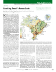 POLICYFORUM EMBARGOED UNTIL 2:00 PM US ET THURSDAY, 24 APRIL 2014 LAND USE Brazil’s controversial new Forest Code grants amnesty to illegal deforesters, but creates new mechanisms for forest conservation. Cracking Brazil’s Forest Code Britaldo Soares-Filho,1* Raoni Rajão,1 Marcia Macedo,1, 2 Arnaldo Carneiro,3 William Costa, 1 Michael Coe,2 Hermann Rodrigues,1 Ane Alencar 4 R oughly 53% of Brazil’s native vegetation occurs on private properties. Native forests and savannahs on these lands store 105 ± 21 GtCO2e (billion tons of CO2 equivalents) and play a vital role in maintaining a broad range of ecosystem services (1). Sound management of these private landscapes is critical if global efforts to mitigate climate change are to succeed. Recent approval of controversial revisions to Brazil’s Forest Code (FC)—the central piece of legislation regulating land use and management on private properties—may therefore have global consequences. Here, we quantify changes resulting from the FC revisions in terms of environmental obligations and rights granted to land-owners. We then discuss conservation opportunities arising from new policy mechanisms in the FC and challenges for its implementation. Created in 1965, the FC was transformed during the 1990s into a de facto environmental law via a series of presidential decrees. As of 2001, the FC required landowners to conserve native vegetation on their rural properties, setting aside a Legal Reserve (LR) that occupies 80% of the property area in the Amazon and 20% in other biomes [supplementary material (SM), fig. S1, and table S1]. The law also designated environmentally sensitive areas as Areas of Permanent Preservation (APPs), aiming to conserve water resources and prevent soil erosion. APPs include both Riparian Preservation Areas (RPAs) that protect riverside forest buffers, and Hilltop Preservation Areas (HPAs) at hilltops, high elevations, and steep slopes. The FC severely restricted deforestation on private properties but proved challenging to enforce, particularly in the Amazon. As deforestation rates rose in the early 2000s, efforts to strengthen enforcement increased pressure on the farming sector, which triggered a backlash against the FC. The agribusiness lobby took advantage of a favorable political moment, related to a substantial drop 1 Universidade Federal de Minas Gerais, Belo Horizonte, MG 31270-901, Brazil. 2Woods Hole Research Center, Falmouth, MA 02540, USA. 3Secretaria de Assuntos Estratégicos da Presidência da República, Brasília, DF 70052900, Brazil. 4Instituto de Pesquisa Ambiental da Amazônia, Brasília, DF 71.503-505, Brazil. *Corresponding author: britaldo@csr.ufmg.br 60° W Roraima 70° W Amazon (A M) Caatinga Cerrado (CA) (CE) Pantanal Atlantic (PT) Pampas Forest (AF) (PA) 50° W Amapá 0° 0° 40° W Amazonas Pará AM Ceará Maranhão Rio Grande do Norte Piauí Acre 10° S Tocantins Rondônia Paraíba Pernambuco Alagoas CA 10° S 70° W Compliance levels > 300% 70% — 300% 50% — 70% 20% — 50% 0 —20% –20% — 0 –50% — –20% –70% — –50% –90% — –70% < –90% FC inapplicable 0 Sergipe Mato Grosso 60° W CE Distrito Federal Gisáo PT 20° S Mato Grosso do Sul Bahia Minas Gerais AF Espírito Santo 20° S 40° W States Rio de Janeiro São Paulo Biomes Paraná Main rivers Santa Catarina 30° S 500 1000 km 30° S PA Ri o Grande do Sul Compliance levels under Brazil’s 2012 FC. Percent difference between the remaining area of native vegetation and the area required to comply with the 2012 FC. Positive values indicate forest surpluses or land that may be legally deforested. Negative values indicate forest debts or land that requires restoration. See SM for details. in deforestation rates in the Brazilian Amazon, to propose creation of a new FC, which was approved in late 2012 (2). Some criticize the legislation for being too lenient on landowners; others maintain that it is a barrier to agricultural development. Regulations detailing key implementation mechanisms of the revised FC are still under negotiation. Amnesty for Illegal Deforestation The 2012 FC maintains conservation requirements for LRs and RPAs—i.e., land that may not be deforested (table S1). These two requirements protect 193 ± 5 Mha of native vegetation containing 87 ± 17 GtCO2e (see the map). Changes in the definition of HPAs reduced their total area by 87% (table S8). Because the new law differentiates between conservation and restoration requirements, the 2012 FC reduced by 58% Brazil’s “environmental debt”—i.e., areas of LR and RPA deforested illegally before 2008 that, under the previous FC, would have required restoration at the landowner’s expense (fig. S2). This was accomplished by forgiving the LR debt of “small” properties, ranging in size from 20 ha in southern Brazil to 440 ha in the Amazon. Under these new rules, 90% of Brazilian rural properties qualify for amnesty. Further reductions resulted from including RPAs in the calculation of the LR area, reducing the LR restoration requirement to 50% in Amazonian municipalities occupied predominantly by protected areas, and relaxing RPA restoration requirements on small properties (table S1). Together, these measures decreased the total area to be restored from 50 ± 6 to 21 ± 1 Mha, of which 78% encompasses LRs and 22% RPAs (tables S2 and S3). Reductions in the environmental debt were uneven across states and biomes, affecting mainly the Amazon, Atlantic Forest, and Cerrado (fig. S2). These losses may have a large impact on www.sciencemag.org SCIENCE VOL 344 25 APRIL 2014 363 POLICYFORUM EMBARGOED UNTIL 2:00 PM US ET THURSDAY, 24 APRIL 2014 biodiversity conservation (3) and forest restoration programs (4), especially in the Atlantic Forest, where only 12 to 16% of the original forest cover remains (5). Furthermore, both old and new FCs allow an additional 88 ± 6 Mha of legal deforestation on private properties (table S4 and the figure). This 