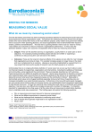 BRIEFING FOR MEMBERS MEASURING SOCIAL VALUE What do we mean by measuring social value? Over the last twenty years there has been increasing importance attached to measuring the social value and social impact that various organisations create. The demand for measuring this value comes from all sides: funders who want to direct their money to the most effective projects, policy makers and government officials have to account for their spending decisions, and social organisations need to demonstrate their impact to funders, partners and beneficiaries1. This has led to a growing interest in terms such as „value for money‟, „value added‟ and „outcomes‟ as ways to measure a organisations performance. In many ways the distinction between „output‟ and „outcomes‟ encapsulates what is meant by measuring social value. Outputs: These are the activities done by an organisation, usually listed in an action plan or set of objectives. For example providing homeless people with food and shelter or organising a conference to discuss long term care services for the elderly. Outcomes: These are the long term observed effects of the outputs and are often the „real‟ changes that organisations are trying to make. For example homeless people no longer living on the street and now in employment is an outcome. Likewise a new policy implemented by a government or a new project that improves the quality of long term care for elderly people is an outcome. Unfortunately there is no single authoritative definition of „social value‟ but we can say that it refers to wider non-financial impacts of programmes, organisations and interventions, including the wellbeing of individuals and communities, social capital and the environment. These are typically described as „soft‟ outcomes, mainly because they are difficult to quantify and measure2. Social value assessment is therefore concerned with measuring these wider outcomes that can be directly attributed to the actions of an organisation after taking into account what would have happened anyway and the contribution of others3. Being able to demonstrate social value can be hugely beneficial especially during current times of spending cuts and increased competition over scare financial resources. Furthermore in the non-profit sector good managers are very precise about tracking costs and incomes but few use sophisticated impact assessment approaches to help allocate resources. It should be noted that while measuring social value is a worthwhile and valuable objective, it can also be a very difficult and complex process with a number of challenges. It is therefore important for organisations to be fully aware of all the costs (time and resources) involved before deciding how to undertake social value assessment. This briefing paper will explore the following questions: Why is measuring social impact relevant for diaconal organisations? What are the different approaches to measuring social value? What are the challenges and drawbacks to measuring social value? How to decide which approach might best for an organisation to take? What‟s next? 1 2 3 Mulgan, Geoff: Measuring Social Value (2010) Wood, Claudia & Leighton, Daniel: Measuring Social Value; gap between policy and practice (2010) Mulgan, Geoff: Measuring Social Value (2010) Page 1 of 7 Eurodiaconia is supported under the European Community Programme for Employment and Social Solidarity (2007-2013). Views expressed do not necessarily reflect those of the European Commission. Eurodiaconia is a federation of organisations, institutions and churches providing social and health services and education on a Christian value base throughout Europe. Eurodiaconia is registered as an AISBL in Belgium. Why is measuring social value relevant for diaconal organisations? Organisations who have engaged in the process of measuring social value report the following benefits4: Better placed to justify the impact of any external funding received and defend their role in providing services more effectively. Able to make a stronger case for additional funding and further investment in advance. Focus efforts on what really makes a difference. This helps an organisation to plan more strategically and allocate resources more effectively. Continuous improvement by regularly going through the process of social value assessment. Develop stronger communication of the value of their work to the people that really matter. Helps to ask, and find answers to, the right questions. “We change people‟s lives for the better. How do I measure that?” “There are many different groups of people involved in or interested in my organisation. All these stakeholders seem to want different things. How do I prioritise them?” “I want to bid for work on a new social project. They‟ve asked about social benefits that are part of working with my organisation. What‟s the right answer?” “They say that what gets measured gets valued, but how do I measure a new skill, access to employment or changing attitudes to elderly people?” Measuring and demonstrating the value of improved well-being for elderly people in long term care rather than focusing on the unit cost of delivering this care should help policy makers reach appropriate decisions. Highlighting and valuing what are often hidden wider benefits has another major advantage – supporting advocacy. In the context of austerity measures and cuts to social services Eurodiaconia has been examining ways to protect or promote investment in the social sector. Demonstrating the added value and wider social impact of existing social services expenditure can significantly contribute to more informed policy-making in the future and also help make the case for general investment in social services. Information gathered from such assessments can serve as examples to strengthen such advocacy work at EU level and be used by members in their advocacy work. What are the current approa