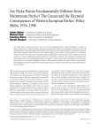 Are Niche Parties Fundamentally Different from Mainstream Parties? The Causes and the Electoral Consequences of Western European Parties’ Policy Shifts, 1976–1998 James Adams University of California at Davis Michael Clark University of California at Santa Barbara Lawrence Ezrow Free University of Amsterdam Garrett Glasgow University of California at Santa Barbara Do “niche” parties—such as Communist, Green, and extreme nationalist parties—adjust their policies in response to shifts in public opinion? Would such policy responsiveness enhance these parties’ electoral support? We report the results of statistical analyses of the relationship between parties’ policy positions, voters’ policy preferences, and election outcomes in eight Western European democracies from 1976 to 1998 that suggest that the answer to both questions is no. Specifically, we find no evidence that niche parties responded to shifts in public opinion, while mainstream parties displayed consistent tendencies to respond to public opinion shifts. Furthermore, we find that in situations where niche parties moderated their policy positions they were systematically punished at the polls (a result consistent with the hypothesis that such parties represent extreme or noncentrist ideological clienteles), while mainstream parties did not pay similar electoral penalties. Our findings have important implications for political representation, for spatial models of elections, and for political parties’ election strategies. I n previous research on the dynamics of parties’ policy positions (Adams et al. 2004), we presented empirical evidence that political parties in Western European democracies tend to shift their ideological orientations in response to shifts in voters’ policy preferences, as suggested by the model of “dynamic representation” developed by Stimson, MacKuen, and Erikson (1995; see also Erikson, MacKuen, and Stimson 2002). Here, we extend this analysis to consider whether the type of party makes a difference. Specifically, we explore whether the members of party families who present either an extreme ideology (such as Communist and extreme nationalist parties) or a noncentrist “niche” ideology (i.e., the Greens) respond differently to shifts in public opinion than do the political elites who represent mainstream or catch-all parties such as Labor, Socialist, Social Democratic, Liberal, Conservative, and Christian Democratic parties. We label the members of the Communist, Green, and extreme nationalist party families as niche parties. Our study, which encompasses eight Western European party systems over the period 1976–1998, produces two central findings. First, we conclude that while mainstream parties’ policy shifts during this period corresponded strongly to shifts in public opinion, niche parties James Adams is associate professor of political science, University of California at Davis, Davis, CA 95616 (jfadams@ucdavis.edu). Michael Clark is a Ph.D. candidate in political science, University of California at Santa Barbara, Santa Barbara, CA 93106-9420 (mcl@umail.ucsb.edu). Lawrence Ezrow is a postdoctoral fellow of political science, Free University of Amsterdam, The Netherlands (lj.ezrow@fsw.vu.nl). Garrett Glasgow is assistant professor of political science, University of California at Santa Barbara, Santa Barbara, CA 93106-9420 (glasgow@polsci.ucsb.edu). Authors are listed in alphabetical order. Earlier versions of this paper were presented at the 2004 annual meeting of the Midwest Political Science Association and at a 2004 departmental symposium at the University of Texas at Austin. We thank Neal Beck, Melvin Hinich, Jonathan Katz, Orit Kedar, Gary King, George Krause, Jeff Lewis, Michael Lewis-Beck, Michael McDonald, Bonnie Meguid, Lorelei Moosbrugger, and three anonymous referees for helpful comments. Any remaining errors are the authors’ sole responsibility. American Journal of Political Science, Vol. 50, No. 3, July 2006, Pp. 513–529 C 2006, Midwest Political Science Association ISSN 0092-5853 513 514 JAMES ADAMS, MICHAEL CLARK, LAWRENCE EZROW, AND GARRETT GLASGOW did not display similar tendencies to adjust their policies in response to changes in the mass public’s policy beliefs. We label this finding on niche parties’ policy rigidity the policy stability result. Our second finding, which concerns the electoral effects of parties’ policy shifts, plausibly explains the policy stability result: namely, we find evidence that when niche parties moderated their policy positions to bring them more closely in line with public opinion, their national vote shares dropped relative to their support in the previous election. We label this finding the costly policy moderation result. By contrast, we find no evidence that voters penalized mainstream parties for changing their policies. In summary, our findings suggest that the linkages between parties’ policy programs, public opinion, and election outcomes are dramatically different for niche parties than they are for mainstream parties. Niche parties such as Green, Communist, and extreme nationalist parties do not appear to adjust their policy programs in response to shifts in public opinion, and when niche parties do shift their policies towards the center of the voter distribution, they are penalized at the ballot box. Neither of these conclusions applies to mainstream parties. Our conclusions have important implications for political representation, for spatial models of elections, and for political parties’ election strategies. With respect to the model of “dynamic representation” developed by Stimson, MacKuen, and Erikson (1995; see also Erikson, MacKuen, and Stimson 2002), which emphasizes the relationship between American parties’ policies and public opinion, our findings suggest that when we export this representational model outside of the United States, we must account for the possibility that the re