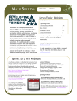 MATH SUCCESS Volume 1, Issue 4 March, 2012 Initiative for Developing Mathematical Thinking Focus Topic: Division Inside this issue: The Initiative for Developing Mathematical Thinking (IDMT) is an organization dedicated to assisting teachers, parents, and children in learning how to think mathematically. Developing Mathematical Thinking (DMT) is an approach to professional development for teachers based on current research of how children develop a deep and well-connected understanding of mathematics. We study how students develop mathematical ideas over time and help parents and teachers build learning environments to best promote this development. In the section “Understanding of Division” you will see how this approach works specific to that topic. In future newsletters, we will highlight similar ideas related Upcoming Events 1 Understanding Division 2-4 Book Corner 5 Problems to Solve 6-7 Contact Information 8 to the learning of more math topics such as fractions, algebra, and early childhood mathematics. You can find previous newsletters at: dmt.boisestate.edu To make suggestions or to be added or removed from the newsletter distribution please e-mail: mti@boisestate.edu Spring 2012 MTI Webinars A webinar is seminar or workshop that is presented over the web. During the webinar, you will be able to interact with the instructor and other participants. We have hosted several webinars throughout the spring and having two webinars that will be conducted in April. The webinars have been archived and are available at: http://www.sde.idaho.gov/site/math/ mtiWebinarsArchived.htm In addition, Nichole Hall at the State Department of Education has set-up a 1-credit option for the webinars. For more information go to: http://www.sde.idaho.gov/site/ math/mtiWebinarCredit.htm The webinars are designed to support teachers in implementing the ideas from the MTI course and the new Common Core State Standards for Mathematics (CCSS-M) Archived Webinars: - Composing and Decomposing Numbers - Progression of Addition Models and Strategies - Ratio and Proportional Reasoning - Multiplication: Strategies, Models, Context - Addition: Strategies, Models, Context - Expressions and Equations - Division: Strategies, Models, Context Upcoming Webinars: April 13th 5:00-6:00 (MST); 4:00-5:00 (PST) Subtraction: Strategies, Models, Context (K-3rd) April 18th 4:45-5:45 (MST); 3:45-4:45 (PST) Mathematics Instructional Practices (K-8th) For more MTI webinar information and to register, go to the MTI Follow Up website: www.tinyurl.com/ mtifollowup Page 2 MATH SUCCESS Understanding Division When you think about how you learned the topic of of division that can be used in exactly the same way division in school, what do you remember most? For to solve all types of similar problems while allowing many adults in the United States this question brings students to do little if any “thinking” or have to make to mind countless hours in grades 4, 5, and 6 spent any decisions as they follow the sequence of steps to learning and practicing a method called long division. perform long division. For some, this a perceived You probably remember your teacher explaining the benefit of long division. In our view, it is a weakness steps to follow to perform long division and then as- that masks the confusion students may have about signing you 20 or more practice problems that you place value and hides weak number sense. used to refine your technique. Maybe you were one of the students who learned long division easily, or maybe you remember it as a frus- “Very few math specialists “Very few math specialists would claim we should would claim we should trating challenge. ‘never’ teach long division. ‘never’ teach long division. With so much time spent focusing Instead they they recommend recommend we we Instead on long division in schools (in spite of many students struggling to remember all of the steps correctly) you may be surprised to learn that many mathematicians and math educators are not particularly fond should treat it as one should treat it as one of of several viable division several viable division methods…” methods…” of long division and have been advo- So, what is the cost to student understanding when they learn only one series of steps and are not given the opportunity to understand the underlying rationale for those steps? Wouldn’t it be better for students to not only know how to perform a particular method but also why that method works? The alternative division methods and models shared in this article help in both of these areas. As we examine these methods you will see how they are not only accessible and easy to learn for stu- cating for several decades to have it de-emphasized dents, more importantly, you will see how directly in school mathematics. Their argument can be they connect to long division and how they might summed up as a practical choice educators must potentially help students learn long division more make between the time it takes to teach long division quickly and with a deeper understanding. compared to the time it takes to teach several alternative division methods. They also weigh the benefits that long division provides compared to other methods’ benefits in later grades. Very few math specialists would claim we should ‘never’ teach long division. Instead they recommend we should treat it as one of several viable division methods that are actually related to each other. So why then have we spent so much time in the last half-century teaching long division exclusively and not these other methods? There is a two-part answer that is surprisingly weak when we think about how much trouble children have learning long division with understanding. First, long division is the most abbreviated and compact division method; essentially it saves the most space on our math papers. Secondly, it’s the most formal method To understand why it is so important for students to lear