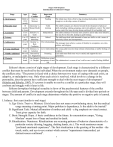 Stages of Development Introduction to Erikson's 8 Stages Stage 1. Oral-Sensory 2.Muscular-Anal 3. Locomotor 4. Latency 5. Adolescence 6. Young Adulthood 7. Middle Adulthood 8. Maturity Ages Basic Conflict Trust vs. Mistrust Birth to 12/18 months 18 Autonomy vs. months Shame/Doubt to 3years 3 to 6 Initiative vs. years Guilt 6 to 12 Industry vs. years Inferiority 12 to 18 Identity vs. years Role Confusion 19 to 40 Intimacy vs. years Isolation 40 to 65 Generativity years vs. Stagnation 65 to Ego-Integrity death vs. Despair Important Event Feeding Toilet training Independence School Peer relationships Summary The infant must form a first loving, trusting relationship with the caregiver, or develop a sense of mistrust. The child's energies are directed toward the development of physical skills including walking, grasping, and rectal sphincter control. The child learns control but may develop shame and doubt if not handled well. The child continues to become more assertive and to take more initiative, but may be too forceful, leading to guilt feelings. The child must deal with demands to learn new skills or risk a sense of inferiority failure and incompetence. The teenager must achieve a sense of identity in occupation, sex-roles, politics, and religion. Love relationships The young adult must develop intimate relationships or suffer feelings of isolation. Parenting Each adult must find some way to satisfy and support the next generation. Reflection on/and acceptance of one's The culmination is a sense of one’s self as one is and of feeling fulfilled. life Erikson's theory consist of eight stages of development. Each stage is characterized by a different conflict that must be resolved by the individual.When the environment makes new demands on people, the conflicts arise. "The person is faced with a choice between two ways of coping with each crisis, an adaptive, or maladaptive way. Only when each crisis is resolved, which involves a change in the personality, does the person have sufficient strength to deal with the next stages of development" (Schultz and Schultz, 1987). If a person is unable to resolve a conflict at a particular stage, they will confront and struggle with it later in life. Erikson downplays biological sexuality in favor of the psychosocial features of the conflict between child and parents. Development extends throughout the life-span and is divided into periods or stages. The amount of conflict in each stage determines whether the positive or negative pole is learned. I. Infancy: first year (similar to oral stage) A. Ego Crisis: Trust vs. Mistrust. Crisis here does not mean overwhelming stress, but the medical usage meaning a turning point. Major problem is dependency. Is the adult to be trusted? B. Significant Task: Mutual affirmation of mother and child - a big emphasis on visual contact. Trust gives capacity for faith. C. Basic Strength: Hope. A basic confidence in the future. In concentration camps, "Going Moslem" meant loss of hope and resulted in death. D. Ritualization: Numinous. Ritualizations are recurring patterns of behavior characteristic of a particular society (kissing, hugging, shaking hands, etc.). The work numinous means "profound emotional experience". The first ritualization is the greeting of the mother - the touch, smile, and eye-to-eye contact which assures "separateness transcended, yet distinctiveness confirmed". 1 Stages of Development E. Ritualism: Idolism (idolatry). Ritualisms are exaggerated, rigid, inappropriate ritualizations. Idolism is a distortion of the numinous reverence into adulation which gives an illusory image of perfection. F. Maldevelopment: Withdrawal. Maldevelopment is a basic weaknesses resulting from poor resolution of the ego crisis. Withdrawal is "detaching" from others, similar to the problems of schizophrenia. G. Significant Relations: Maternal parent II. Early Childhood: 2-->3, similar to anal stage; terrible twos where the child learns that terrible word "No" A. Ego Crisis: Autonomy vs. Shame & Doubt B. Significant Task: Differentiate right and wrong & to establish psychosocial independence. Primitive independence comes by saying "No". C. Strength: Will, courage - the ability to exercise both freedom of choice and self-restraint. D. Ritualization: Judicious - forms basis of legal system (Many lawyers are "anal" types). E. Ritualism: Legalism - being more concerned with the letter of the law rather than the spirit of the law. F. Maldevelopment: Compulsion G. Significant Relations: Parents III. Play Age: 3 --> 5, similar to phallic stage. Here children make up stories (with dolls, soldiers) and play them out. Play to a child is like a blueprint to an adult - a trial universe. Also, children begin to use the next most terrible word to parents: "Why?". A. Ego Crisis: Initiative vs. Guilt B. Significant Task: Role experimentation C. Strength: Purpose (hopefully, to identify with proper role models (For me, Roy Rogers, John Wayne - today-??) D. Ritualization: Authenticity (Dramatic in 1982) - assume culturally accepted roles. E. Ritualism: Impersonation - trying to be something that you are not. F. Maldevelopment: Inhibition G. Significant Relations: Basic family IV. School Age: 6 --> 11, similar to latency stage. Here, children to go school and become more social. Also, the are evaluated (grades) and work is emphasized. A. Ego Crisis: Industry vs. Inferiority B. Significant Task: Skill learning C. Strength: Competence (craftsmanship). At this age, children know who is good at everything. D. Ritualization: Formality. There are appropriate ways of doing things (above being simply right or wrong). E. Ritualism: Formalism (perfectionism) F. Maldevelopment: Inertia 2 Stages of Development G. Significant Relations: School, neighborhood V. Adolescence: 12 --> 18. Up to this stage, development mostly depends upon what is done to you. From here on out, development depends primarily upon what you do. This is the stage when you are ne