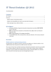 IT Threat Evolution: Q3 2012 Yury Namestnikov Contents Q3 in figures ............................................................................................................................................ 1 Overview ................................................................................................................................................. 1 Mobile malware and operating systems............................................................................................. 1 Exploits: Java vulnerabilities are used in more than half of all attacks .............................................. 5 Cyber-espionage: Gauss, Madi and others ......................................................................................... 7 Q3 in figures According to KSN data, Kaspersky Lab products detected and neutralized 1,347,231,728 threats in Q3 2012. 28% of all mobile devices attacked run Android OS version 2.3.6, which was released in September 2011. 56% of exploits blocked in Q3 use Java vulnerabilities. A total of 91.9 million URLs serving malicious code were detected, a 3% increase compared to Q2 2012. Overview Mobile malware and operating systems During Q3 2012, over 9,000 new malicious .dex files were added to our malware collection. This is 5,000 files fewer than last quarter but 3,500 more than in Q1 2012. This is due to the fact that in Q2 files that had been detected heuristically for some time were added to our malware collection. (Note that one heuristic is used to detect a large number of different programs.) In Q3, the situation was standard and the number of new files added to our collection was in line with the trend we have seen since the beginning of the year. The number of malware modifications targeting Android OS It is curious to see which Android versions become targets for cyber-attacks most often. Distribution of the malware detected by Android OS version, Q3 2012 Android 2.3.6 “Gingerbread”, which accounts for 28% of all blocked attempts to install malware, was the most commonly attacked version. It is not new: it was released in September 2011. However, due to the considerable segmentation of the Android device market, it remains one of the most popular versions. To find out whether there is a good correlation between the distribution of Android OS versions on mobile devices and the distribution of OS versions on devices attacked by cybercriminals, we need to compare our data to the official Android OS version distribution figures from developer.android.com. Below we provide the percentage distribution of OS versions for the last two weeks of September: Source: http://developer.android.com/about/dashboards/index.html Compare this to our data for the same period: Distribution of malware detected in the last 14 days of September 2012, by Android OS version As we can see, there are significant differences between the diagrams: in 48% of all cases victims of cybercriminals used Gingerbread, which was installed on 55% of all devices, while in 43% of all cases the victims had Ice Cream Sandwich, the latest version of Android OS, which is installed on 23.7% of all devices. It is obvious that the devices with the later versions of operating systems installed on them are better suited to actively working online. Unfortunately, more active web surfing often leads users to sites hosting malicious content. Below, we use the KSN statistics for mobile devices to determine what kinds of programs most commonly attack user devices. Distribution of malware targeting Android OS detected on user devices by behavior, Q3 2012* More than one half of all malware detected on user smartphones turned out to be SMS Trojans, i.e. malicious programs that steal money from victims’ mobile accounts by sending SMS messages to premium rate numbers. Distribution of the Android OS malware detected on user devices by family, Q3 2012* * Detection verdicts returned by the Kaspersky Mobile Security file scanning module. Information provided by those users of KL products who have expressly agreed to provide statistical data. The OpFake family has become the most widespread (38.3% of all the malicious programs for Android detected) among all the mobile malware families. All the programs in this family disguise themselves as Opera Mini. Third place in the ranking was taken by the FakeInst family, whose members pretend to be installers for popular programs (17%). These two types of malware are mostly distributed via so-called alternative app stores created by cybercriminals. A fifth of the malicious programs detected on user devices are versatile Trojans, most of which belong to the Plangton family. After being installed on a device, these Trojans collect service data on the telephone, send it to the command server and wait for the cybercriminals’ commands. Specifically, malicious programs in this family can stealthily change bookmarks and the home page. 5% - not-a-virus:RiskTool.AndroidOS.SMSreg, which subscribes the user to expensive services. Programs in this family target users from such countries as the US, the Netherlands, Great Britain and Malaysia. We have written about these programs in our blog. 4% – the Exploit.AndroidOS.Lotoor family. To gain control of a device, cybercriminals need to perform a jailbreak (i.e. to bypass the telephone’s protection in order to gain full access to the file system). Malware belonging to this family is used to obtain root privileges, which offer virtually unlimited possibilities related to manipulating the system. Various advertising programs detected as AdWare together also account for 4% of mobile malware. The most ‘popular’ of these belong to the Hamob family and show advertising built into applications. To summarize, attacks of cybercriminals in Q3 most commonly targeted Android versions 2.3.6 Gingerbread and 4.0.4 Ice Cream Sandwich. Attackers are sufficiently good at bypassing restrictions on installing software from untrusted sourc