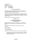 C.I.M. Industries Inc. 23 Elm Street Peterborough, NH 03458 Phone: (603) 924-9481 Toll Free: (800) 543-3458 Fax: (603) 924-9482 Product Guide Specification Specifier Notes: This product guide specification is written according to the Construction Specifications Institute (CSI) 3-Part Format, as described in The Project Resource Manual—CSI Manual of Practice. The section must be carefully reviewed and edited by the Engineer to meet the requirements of the project and local building code. Coordinate this section with other specification sections and the Drawings. Delete all “Specifier Notes” when editing this section. Section numbers are from MasterFormat 2004 Edition. SECTION 07 14 16 FLUID-APPLIED WATERPROOFING FOR BRIDGE DECKS Specifier Notes: This section covers C.I.M. Industries Inc. “CIM 1000” fluidapplied waterproofing with aggregate for bridge deck applications to concrete surfaces. Consult manufacturer for assistance in editing this section for specific applications. PART 1 GENERAL 1.1 SECTION INCLUDES Specifier Notes: Revise the first sentence as required for the specific application. A. Fluid-applied waterproofing for [concrete] [asphalt] surface. Fluid-applied waterproofing rapidly cures to form a seamless, abrasion resistant, and elastomeric waterproof liner. 07 14 16 - 1 CIM 1000 1.2 RELATED SECTIONS Specifier Notes: Edit the following list as required for the project. List other sections with work directly related to the fluid-applied waterproofing. A. Section 03 30 00 – Cast-in-Place Concrete. B. Section 07 10 00 – Damproofing and Waterproofing. C. Section 07 18 00 – Traffic Coatings. D. Section 0996 53 – Elastomeric Coatings. E. Section 09 97 23 – Concrete and Masonry Coatings. 1.3 REFERENCES A. ACI 201.1R – Guide for Making a Condition Survey of Concrete in Service. B. ASTM C836 – High-Solids Content, Cold Liquid-Applied Elastomeric Waterproofing Membrane for Use with Separate Wearing Course. C. ASTM C957 – High Solids Content, Cold-Liquid-Applied Elastomeric Waterproofing Membrane with Integral Wearing Surface. D. ASTM D36 – Softening Point of Bitumen (Ring-and-Ball Apparatus). E. ASTM D412 – Vulcanized Rubber and Thermoplastic Rubbers and Thermoplastic Elastomers – Tension. F. ASTM D624 – Tear Strength of Conventional Vulcanized Rubber and Thermoplastic Elastomers. G. ASTM D648 – Deflection Temperature of Plastics Under Flexural Load in the Edgewise Position. H. ASTM D751 – Coated Fabrics. I. ASTM D822 – Conducting Tests on Paint and Related Coatings and Materials using Filtered Open-Flame Carbon-Arc Light and Water Exposure Apparatus. J. ASTM D1117 – Evaluation Nonwoven Fabric. K. ASTM D1682 – Breaking Load and Elongation of Textile Fabric. 07 14 16 - 2 CIM 1000 L. ASTM D2240 – Rubber Property – Durometer Hardness. M. ASTM D3786 – Hydraulic Bursting Strength of Knitted Goods and Nonwoven Fabrics: Diaphragm Bursting Strength Tester Method. N. ASTM D4060 – Abrasion Resistance of Organic Coatings by the Taber Abraser. O. ASTM D4258 – Surface Cleaning Concrete for Coating. P. ASTM D4259-88 – Abrading Concrete. Q. ASTM D4263 – Indicating Moisture in Concrete by the Plastic Sheet Method. R. ASTM D4285 – Indicating Oil or Water in Compressed Air. S. ASTM E96 – Water Vapor Transmission of Materials. T. ICRI 03732 – Selecting and Specifying Concrete Surface Preparation for Sealers, Coatings, and Polymers Overlays. 1.4 SUBMITTALS A. Comply with requirements of Section 01 33 00 – Submittal Procedures. B. Product Data: Submit manufacturer’s product data, including surface preparation, application, and curing. C. Samples: Submit 3-inch by 1-inch samples for approval by the Engineer. 1. Cured fluid-applied waterproofing, 60 mils thick. 2. Reinforcing fabric and joint cover sheet. D. Applicator’s Project References: Submit list of completed project references. E. Certification of Applicator’s Supervisor: Submit for applicator’s supervisor a certificate indicating completion of manufacture’s contractor training program. F. Warranty: Submit manufacturer’s standard warranty. 07 14 16 - 3 CIM 1000 1.5 QUALITY ASSURANCE A. Qualifications: 1. Applicator: Use applicator experienced in the application of the specified fluid-applied waterproofing for a minimum of 2-years on projects of similar size and complexity. Provide a list of completed projects including project name and location, name of engineer, name of coating manufacturer, and approximate quantity of coating applied. 2. Applicator’s Supervisor: Employ a supervisor during all phases of the work that had successfully completed “CIM Factory Trained applicator Program”. Provide proof of valid certificate. 3. Applicator’s Personnel: Employ persons trained for the application of fluid-applied waterproofing. B. Regulatory Requirements: Comply with environmental regulations. Specifier Notes: Describe requirements for a meeting to coordinate the application of the fluid-applied waterproofing and to sequence related work. C. Pre-Application Meeting: 1. Convene a pre-application meeting [ ____ ] weeks before the start of application of the fluid-applied waterproofing. 2. Require attendance of parties directly affecting work of this section, including the contractor, sub-contractor, engineer, applicator, and manufacturer’s representative. 3. Review environmental requirements, materials, protection of adjacent work, surface preparation, application, curing, field quality control, cleaning, and coordination with other work. 1.6 DELIVERY, STORAGE, AND HANDLNG A. Delivery: 1. Deliver materials to the site in manufacturer’s original, unopened containers and packaging, with labels clearly indicating manufacturer and material. 2. Do not deliver material to site more than one month before use. B. Storage: 1. Store the material in accordance with manufacturer’s instructions. 2. Store materials indoor in an area well ventilated and protected from damage. 3. Do no