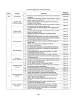 BI 103 15 Objectives and Assessments Week Activity # Any Any Lecture 1 2 Structure and Function Lecture 3 4 5 Integumentary System Lecture 6 7 8 9 1 Cells Recitation 10 11 12 13 Skin Laboratory 14 15 16 Textbook (38-57, 310-313) 17 18 19 Skeletal System Lecture 20 21 22 23 24 2 Muscular System Lecture 25 26 27 Skeletal Structures Recitation 28 29 Objective Describe a current biology news story that was introduced in lecture. Describe the relationship between organ systems, organs, tissues, cells, and organelles. Explain the significance of magnification and staining in studying human tissues. Describe the roles of basic cellular components, including the nucleus and the plasma membrane. List and explain the basic functions of the integumentary system. List and describe the basic components of skin, including layers, and types of cells. Describe the various changes in the integumentary system over time. Provide the characteristics of a variety of skin disorders. Describe basic cellular structures and functions, including the organelles and plasma membrane. Discuss different cellular shapes and different stages of cellular lives. Reflect on background knowledge of anatomy, physiology, and disease. List various skin structures and describe their functions. Describe skin responses to increases and decreases in body temperature. Provide examples of various skin disorders, including characteristics of skin cancers. Label different structures found in a model of the skin. Describe the major functions of each of the organ systems of the human body. List cellular characteristics, including organelles and DNA. Describe normal characteristics of skin, hair, and nails, as well as various skin diseases. List the basic functions of the skeletal system. Describe bone structure, including cells, joints, changes over time, and repair mechanisms. Provide information on various skeletal disorders. Describe research related to exercise and bone density. List the basic functions of the muscular system. Identify various parts of a muscle, and describe the relationship between muscle cell structure and function. Describe muscular-skeletal interactions, including the roles of tendons and ligaments. Explain how exercise impacts muscle structure and function. Provide information on the various structures and functions of the skeletal system. Describe various skeletal system disorders, including imaging techniques used to diagnose these disorders. Summarize this activity’s information on the skeletal system in brief paragraphs. 167 Primary Assessment Any Exam Exam #1 Exam #1 Exam #1 Exam #1 Exam #1 Exam #1 Exam #1 Exam #1 Exam #1 Portfolio #1 Exam #1 Exam #1 Exam #1 Portfolio #1 Exam #1 Exam #1 Exam #1 Exam #1 Exam #1 Exam #1 Exam #1 Exam #1 Exam #1 Exam #1 Exam #1 Exam #1 Exam #1 Portfolio #1 30 Muscles and Organ Systems Laboratory 31 32 33 34 35 Textbook (60-95, 316-329) 36 37 38 Digestive System Lecture 39 40 41 Digestive Disorders Lecture 42 43 44 45 3 Nutrients and Digestion Recitation 46 47 48 49 Digestive Organs Laboratory 50 51 52 Textbook (208-235, 394-405) 53 54 55 4 Respiratory System Lecture 56 57 58 Cardiovascular System Lecture 59 Provide an overview of the systems and structures of the human body. Describe the sectional planes and directions that can be used to describe the orientation of a tissue or body part. Provide information on muscle cells, tissue and organs, as well as the tendons and ligaments connecting organs. Describe impacts of exercise on organ systems. Observe, draw, and label microscopic views of muscle tissues. Describe the basic structures and functions of the skeletal system, including bone growth and bone repair. Give the characteristics of a variety of muscular-skeletal disorders, including fractures, osteoporosis, arthritis, strains, and tears. Define nutrients and provide examples. List various digestive functions. Describe the various digestive organs, including the route food takes as it travels through the digestive tract. Address some of the basic misconceptions of the digestive system. Provide examples of upper gastrointestinal tract (GIT) diseases. List and describe various intestinal disorders. Summarize common diseases of the accessory organs. Provide examples of different nutritional problems, and aspects of dieting. Provide examples of mechanical and chemical digestion. Describe the dietary recommendations for various foods, and the importance of nutrients, fiber, and phytochemicals. Describe health risks associated with obesity, and distribution of body fat. Write possible exam questions about the nutrient and digestion information covered in this activity. Describe basic structures and functions of the digestive system, including the digestive and accessory organs. List and discuss various digestive diseases, including detection, symptoms, locations, and treatments. Compare and contrast the structures and functions of the trachea and ileum. Produce detailed and labeled drawings of microscope specimens. Describe the roles of the digestive system organs. Provide the locations and symptoms of digestive diseases. Outline the equation associated with cellular respiration. List the roles of the various organs associated with the respiratory system. Discuss the process of breathing, including the impact of exercise on capacity. Describe various respiratory diseases. Outline the structure of heart, including the chambers, vessels, and cellular components. 168 Exam #1 Exam #1 Exam #1 Exam #1 Portfolio #1 Exam #1 Exam #1 Exam #1 Exam #1 Exam #1 Exam #1 Exam #1 Exam #1 Exam #1 Exam #1 Exam #1 Exam #1 Exam #1 Portfolio #2 Exam #1 Exam #1 Exam #1 Portfolio #2 Exam #1 Exam #1 Exam #2 Exam #2 Exam #2 Exam #2 Exam #2 60 61 62 63 Respiratory Recitation 64 65 66 67 Heart and Vessels Laboratory 68 69 70 71 Textbook (196-205, 378-391, 170-185, 346-361) 72 73 74 75 Cardiovascular Disorders Lecture 76 77 78 79 Urinary System Lecture 5 80 81 82 83 Blood Recitation 84 85 Urinary System 