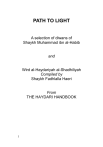 PATH TO LIGHT A selection of diwans of Shaykh Muhammad ibn al-Habib and Wird al-Haydariyah al-Shadhiliyah Compiled by Shaykh Fadhlalla Haeri From THE HAYDARI HANDBOOK 1 2 PATH TO LIGHT A selection of diwans of Shaykh Muhammad ibn al-Habib and Wird al-Haydariyah al-Shadhiliyah Compiled by Shaykh Fadhlalla Haeri From THE HAYDARI HANDBOOK 3 4 CONTENTS Page No. Introduction 7 Praise 9 Song Written Before the Prophet 21 Withdrawal Into the Perception of the Essence 31 Asking Forgiveness 39 Remembrance of my Lord 51 Wird Al-Haydariyah Al-Shadhiliyah 57 5 INTRODUCTION There are a number of prescriptions for the wayfarer that will help him or her on the journey towards the Higher. The most important is the companionship of like-minded people and singing the praise of the Creator. If the diwan is approached and sung properly the wayfarer will discover a wide variety of tonics to suit every ill. The effect of people’s gathering with sincere intention combined with the specific use of sound polishes the heart of the seeker, freeing it to reflect the spark of divine light that is already there. From time immemorial there has been spiritual singing and reciters of God’s glory. Since the time of the Prophet (peace and blessings be upon him and his family) songs have also been sung in his praise, exalting and dwelling upon his qualities and virtues as a reminder to everyone. Numerous Sufi masters have written couplets and diwans for different purposes, some to deepen the seeker’s awareness, some to strengthen their resolve along the path of discipline. In his diwan Shaykh Muhammad Ibn al-Habib, the Qutb of his time, has combined acceptance of heart-rending joy which is the fruit of total dependence and reliance on Allah. Within ten or twenty couplets, many of his odes give a complete manual for the journey, for they are replete with instructions. 6 Transformation in the circle of remembrance (dhikr) is brought about by sincerity and the power inherent in gathering together. The diwan offers us information as well as transformation. It offers us a great deal of worldly strength and a great deal of inner strength. It is a constant reminder. These songs can be sung collectively or individually. Singing the purpose of life – to come to know the Life-Giver – then becomes a part of our lives. The purpose of the diwan is to absorb it until you find that the song is singing in you. The singer and song unite. This is a prelude to the taste of universal union of the Creator when He joins the subtle unseen world with the seen, beyond this world. Shaykh Fadhlalla Haeri. 7 Praise 8 PRAISE Laka ’l –hamdu yaa dha’l-hilmi wa ‘l-afwi wa ‘s-sitri wa hamdeeya min nu’maaka yaa waasi’a ‘l-birri Laka ‘l-hamdu ‘adda ‘l-qatri wa ‘r-ramli wa ‘l-hasa wa ‘adda nabaati ‘l-ardi wa ‘l-hooti fi ‘l-bahri Laka 'l-hamdu 'adda 'n-namli wa 'l-jinni wa 'l-insi wa mil'a 's-samaa wa 'l-'arshi wa 'l-kawkabi 'ddurri wa mil'a 'l-fadaa wa'l-lawhi wa 'l-kursee wa 'th-thara wa 'adda jamee'i 'l-kaa’inaati ila 'l-hashri. 9 PRAISE Praise is due to You, the possessor of serenity, forgiveness and veiling. My praise is part of Your blessing, oh abundant Giver. Praise is due to You, in number as great as the drops of rain, the grains of sand, the pebbles, the plants of the earth and the fish of the sea. Praise is due to You in number as great as the ants, jinn, and men, in quantity as great as the sky, the throne, and the stars like scattered pearls. In quantity as great as space itself, and the tablet of forms, the footstool, the moist earth, and the number of all created beings on the day of gathering. 10 laka 'l-hamdu yaa rabbee kamaa anta ahluhu fa'inneeya laa uhsee 'th-thanaa'a mada 'd-dahri laka 'l-hamdu yaa mu'ti ‘l-mawaahiba bi 'l-fadli wa maaniha ahli 'llaahi bi 'l-fat-hi wa 'n-nasri laka 'l-hamdu bi 'l-anfaasi wa 'l-jismi wa 'l-qalbi tafaddal 'alaa 'abdin tahayyara fi ‘l-amri fa'innee wa in kaanat dhunoobee ta'ooqunee falee feeka husnu 'dh-dhanni yajburu lee kasree famunna 'alaynaa yaa ghafooru bitawbatin tajubbu 'l-ladhee qad kaana fee saalifi 'l-'umri 11 Praise is due to You, oh my Lord, as You deserve it, for I cannot praise You fittingly to the full extent of time. Praise is due to You, oh endless Giver of gifts, the One who grants opening and triumph to the people of Allah. Praise is due to You with every breath with the body and the heart. Look kindly on a slave who is perplexed by the command. If my wrong actions weigh me down, l still have a good opinion of You that You will mend my broken spirit. Oh Forgiving! Grant a turning away [from wrong action] to us which will undo what happened in our early years. 12 13 wa zidnaa mina 'n-na'maa'i wa'n-noori wa 'l-kashfi wa makkinnaa fi 'l-irshaadi bi'l-idhniwa's-sirri wa ayyidnaa fee aqwaalinaa wa fi'aalinaa wa yassir lanaa 'l-arzaaqa min haythu laa nadree fahaa nahnu fee baabi 't-tafadduli waaqifun wa muntadhirun 'atfa 'l-habeebi bilaa 'usri fa'an’im 'alaynaa yaa mujeebu bi sur'atin fa'innaka ahlu 'l-joodi wa 'l-manni wa 'l-khayri fafadhluka mawjoodun bighayri wujoodinaa wa jooduka masdoolun 'alaynaa bilaa nukri 14 Increase us in blessing, light and unveiling, and strengthen us in guidance, with idhn and with the secret. Support us in our words and deeds, and make our provision easy for us - from where we know not! Here we are standing at the door of favour, waiting without hardship for the Beloved to turn to us. Swiftly send us Your ease, oh Answerer, for You are the possessor of generosity, liberality and goodness. Your Bounty exists without our existence, and Your Generosity pours down on us, undenied. 15 wa wafliqnaa li'sh-shukri 'I-Iadhee huwa laazimun galaynaa wa yastad'ee 'l-mazeeda bilaa khusri wa akhrijnaa min sijni 'l-jusoomi wa raqqinaa lihadrati arwaahin thawaaban 'alaa 'sh-shukri wa ash-hidnaa ma'na 'dh-dhaati fee kulli madh-harin liyaqwa shuhoodee fi 'sh-shadaa'idi wa 'l-yusri wa afninaa 'annaa wabqinaa bika daa'iman linalhaqa 