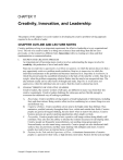 CHAPTER 11 Creativity, Innovation, and Leadership The purpose of this chapter is to assist readers in developing the creative problem-solving approach required to be an effective leader. CHAPTER OUTLINE AND LECTURE NOTES Creative problem solving is an important requirement for effective leadership at every organizational level. The role of a creative leader is to bring into existence ideas and things that did not exist previously, or that existed in a different form. Innovation refers to creating new ideas and their implementation or commercialization. I. STEPS IN THE CREATIVE PROCESS An important part of becoming more creative involves understanding the stages involved in creativity, the production of novel and useful ideas. Step one on creativity is opportunity or problem recognition, in which the person discovers that a new opportunity exists or a problem needs resolution. Step two is immersion, in which the individual concentrates on the problem and becomes immersed in it. Step three is incubation, in which the person keeps the assembled information in the back of the mind for a while. Step four is insight, when the problem-conquering solution flashes into the mind at an unexpected time. The aha moment usually arrives after hours of thought and study. Step five is verification and application, when the individual sets out to prove that the creative solution has merit. II. CHARACTERISTICS OF CREATIVE LEADERS Creative leaders, like creative workers of all types, are different in many ways from their less creative counterparts. Creative leaders challenge the status quo and are flexible enough to overcome the traditional way of looking at problems. A. B. C. D. Knowledge. Creative problem solving requires a broad background of information, including facts and observations. Being creative often involves combining two or more things in a new and different way. Cognitive Abilities. Creative problem solvers tend to be bright rather than brilliant. They maintain a youthful curiosity throughout their lives, within and outside their fields. Creative people are good at divergent thinking, but also know when to narrow the choices. Creative business persons are good at spotting opportunities others might overlook. Personality. Creative people tend to have a positive self-image without being blindly selfconfident. They also have the ability to tolerate the isolation necessary for developing ideas. Creative people are frequently nonconformists, not needing strong group approval. Nonconformity can also mean being a maverick. Creative people are also intellectual thrill seekers, they are persistent, and they enjoy dealing with ambiguity and chaos. Creative people also tend to have an internal locus of control. Passion for the Task and the Experience of Flow. A dominant characteristic of creative people is a passion for their work, or high intrinsic motivation. Passion for the task and high Copyright © Cengage Learning. All rights reserved. 84 Chapter 11: Creativity, Innovation, and Leadership intrinsic motivation contribute to a total absorption in the work and intense concentration, the experience of flow. The formula B = f (P E) is relevant here. Certain personal characteristics may facilitate a leader’s being creative, but the right environment is necessary to trigger creative behavior. E. The Componential Theory of Individual Creativity. This theory integrates the information already presented. Creativity takes place when three components join together: expertise, creative-thinking skills, and task motivation. The combined forces of the three factors lead to individual creativity as follows: expertise x creative-thinking skills x task motivation = creativity. III. OVERCOMING TRADITIONAL THINKING AS A CREATIVITY STRATEGY Creative problem solving requires an ability to overcome traditional thinking. The creative person often looks at problems in a new light and transcends conventional thinking about them. The central task in becoming creative is to break down rigid thinking that blocks new ideas. The process of overcoming traditional thinking has been characterized in several ways. The most familiar is that a creative person thinks outside the box. Bus tours to look at foreclosed real estate properties are a new and amusing example of thinking outside the box. IV. ORGANIZATIONAL METHODS TO ENHANCE CREATIVITY Here we describe several creativity-enhancing methods, including a review of brainstorming. The leader plays a dual role in implementing creative problem-solving techniques: facilitating group interaction and providing a fair share of creative output. A. Systematically Collecting Fresh Ideas The more ideas you try, the greater the probability of finding one that works. A notable way of collecting fresh ideas is for employees to furnish them to a company database, so when somebody needs a fresh idea it can be assessed through a company search engine. Google uses an internal web site to collect and retrieve ideas. To facilitate having fresh ideas, the leader/manager can establish idea quotas, such as asking staff members to bring one new idea to each meeting. A major leadership accomplishment is to obtain widespread participation in contributing innovative thinking, such as done at Procter & Gamble. B. Brainstorming Brainstorming is the best-known method for creativity improvement (as well as for creative problem solving). To encourage creativity during the idea-generating part of brainstorming potential solutions are not criticized or evaluated in any way. One variation of brainstorming is the 6-3-5 method in which people exchange ideas written on index cards and build on the ideas of others. Another variation of brainstorming is to encourage extreme thinking. Participants are asked to contribute ideas that would probably work but are so outrageous they could get the group fired. Brainstorming, much like other creative-problem-solving techniques works best in an organizational culture that fost