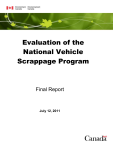 Environment Canada (EC) and fulfill a Treasury Board commitment, an evaluation of the National Vehicle Scrappage Program (NVSP) was conducted.