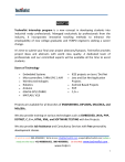 ABOUT US Technofist Internship program is a new concept in developing students into industrial ready professionals. Managed exclusively by professionals from the industry, it incorporates innovative teaching methods to enhance the employability of new college graduates and IT/BPO engineers seeking a career change. It’s time to submit your final year project abstracts/Synopsis. Technofist provides project ideas and abstracts with world class quality. A dedicated team of professionals and our committed experts will be available all the time to assist students. Doors of Technology Embedded Systems Microcontrollers / ARM /PIC / AVR Wireless technologies Robotics Arduino GSM & GPS/ ZIGBEE MATLAB / VLSI IEEE projects on Java / Dot Net Java and Dot Net Application Projects Android Based Projects PHP C,C++ Projects are available for all branches of ENGINEERING, DIPLOMA, MCA/BCA, and MSc/BSc. We also provide training on various technologies such as EMBEDDED, JAVA, PHP, DOTNET, C, C++, HTML, XML, and SOFTWARE TESTING with live Projects. We also provide Job Assistance and Consultancy Services with free personality development classes. At work as usual: 080-40969981 | Write to me: info@technofist.com, projects@technofist.com |when u needs me the most: +91-9008001602, 080-40969981| On the Web: www.technofist.com , www.itcdp.in 1 PROJECT LIST SL No 1 CONTENTS EMBEDDED PROJECTS 2 ARM BASED PROJECTS ANALOG AND DIGITAL ELECTRONICS PROJECTS MICROCONTROLLER BASED PROJECTS IEEE TRANSACTIONS ON ROBOTICS IEEE TRANSACTIONS ON GSM WIRELESS BASED PROJECTS CELL PHONE BASED PROJECTS SMART CARD/ RFID BASED PROJECTS BIO-METRIC / BIO-MEDICAL BASED PROJECTS CAN PROTOCOL BASED PROJECTS GSM AND GPS BASED PROJECTS MICROCONTROLLER BASED ELECTRICAL BLUETOOTH BASED PROJECTS ZIGBEE BASED PROJECTS CAPSENSE, TOUCH SENSE MATLAB VLSI SOFTWARE PROJECTS JAVA, J2EE PHP DOTNET 3 ANDROID BASED PROJECTS 4 MECHANICAL PROJECTS At work as usual: 080-40969981 | Write to me: info@technofist.com, projects@technofist.com |when u needs me the most: +91-9008001602, 080-40969981| On the Web: www.technofist.com , www.itcdp.in 2 PROJECT FLOW At work as usual: 080-40969981 | Write to me: info@technofist.com, projects@technofist.com |when u needs me the most: +91-9008001602, 080-40969981| On the Web: www.technofist.com , www.itcdp.in 3 EMBEDDED PROJECTS ARM BASED PROJECTS 1. 2. 3. 4. 5. 6. 7. 8. 9. 10. 11. 12. 13. 14. 15. WIRELESS TELEMEDIA SYSTEM BASED ON ARM AND WEB SERVER TEMPERATURE AND HUMIDITY CONTROL SYSTEM USING GRAPHICAL LCD AND ARM IMPLEMENTING PERIPHERALS USING 32-BIT ARM MICROCONTROLLER ARM AND RFID BASED SECURITY SYSTEM ( HOME , OFFICE OR INDUSTRIAL) ARM BASED SMART POWER GENERATION AND MULTI PURPOSE OPTIMIZATION INTERNET BASED HOME AUTOMATION SYSTEM USING ARM 7 ETHERNET CONTROLLER FOR HOME APPLIANCE USING INTERNET. ARM BASED REMOTE TEMPERATURE CONTROLLER WITH ETHERNET. REAL TIME DATA ACQUISITION SYSTEM USING ARM AND RTOS. DIGITAL RECEIPT SYSTEM (ARM+ETHERNET). PROGRAMMABLE LOGIC CONTROLLERS (PLC)USING ARM FOR INDUSTRIAL AUTOMATION WITH RS485. CHECK POINT ACESS CONTROL USING ARM+ETHERNET+RFID. TALKING THERMOMETER FOR VISUALLY IMPAIRED. ARM AND GLCD BASED MICRO CONTROLLER CLOCK. ARM+ETHERNET CONTROLLED TEMPERATURE REGULATOR USED TO CONTROL THE DEVICE. MICROCONTROLLER BASED PROJECTS 1. 2. 3. 4. AIRCRAFT BLACKBOX WITH AUTO INFORMATION TO THE BASE STATION. EFFICIENT POWER GENERATION AND MULTI PURPOSE OPTIMIZATION INTELLEGENT ADVANCED RTO SURVAILLANCE SYSTEM INVISIBLE EYE At work as usual: 080-40969981 | Write to me: info@technofist.com, projects@technofist.com |when u needs me the most: +91-9008001602, 080-40969981| On the Web: www.technofist.com , www.itcdp.in 4 5. WIRELESS SENSOR NETWORKS – DENSITY BASED TRAFFIC CONTROLLER 6. WIRELESS COMMUNICATION BASED DIGITAL NOTICE BOARD USING GRAPHICAL LCD 7. HIGH PROTECTION VOICE IDENTIFICATION BASED BANK LOCKER SECURITY SYSTEM WITH LIVE VIDEO TRANSMISSION 8. AUTOMATED GREEN HOUSE STATUS MONITORING AND CONTROL SYSTEM 9. DEVELOPMENT OF WIRELESS SENSOR NETWAORK FOR HEALTH MONITORINGSYSTEM 10. CABLE TESTER FOR INDUSTRIES USING AVR 11. AUTO WIPER SPEED CONTROLLER ACCORDING TO RAIN FORCE 12. ALCOHOLIC BREATH ANALYSER AND TILT DETECTOR FOR VEHICLE SECURED IGNITION 13. MICROCONTROLLER BASED AUTOMATED METRO TRAIN 14. A NOVEL OPTIMUM POINT TRACKER OF THE SOLAR CELL POWER SUPPLY SYSTEM 15. INDUSTRIAL AUTOMATION AND MONITORING SYSTEM (TEMPERATURE, VIBRATION, PRESSURE etc.) 16. ELECTRONUIC STICK FOR BLIND WITH PANIC BUTTON ALERT. 17. AUTOMATED AMBULANCE GATES AT AMBULANCE AND TRAFFIC SIGNALS. 18. MICROCONTROLLER BASED HOME OR INDUSTRIAL AUTOMATION. 19. PAITENT MONITORING SYSTEM 20. RFID BASED TRAIN IDENTIFICATION, DETECTION AND UNMANNED RAILWAY CROSSING SYSTEM 21. MICROCONTROLLER BASED BANK LOCKER SECURITY SYSTEM WITH VOICE REPORTING 22. DENSITY BASED TRAFFIC LIGHT CONTROLLER 23. AUTOMATIC VEHICLE SPEED, HORN, AND BRAKE MANAGEMENT SYSTEM (WITH ANALYZER – OPTIONAL) 24. GAS LEAKAGE, THIEF AND FIRE DETECTOR & AUTO DIALING CONTROLLER SYSTEM. 25. INDUSTRIAL PROTECTION SYSTEM USING TEMPERATURE, SMOKE SENSORS AND LIGHT DEPENDENT RESISTOR 26. TOKEN NUMBER DISPLAY WITH VOICE IN SECURITY USING MICROCONTROLLER AT89C51. 27. MICROCONTROLLER BASED AERONAUTICAL CRASH PREVENTION SYSTEM THROUGH RF COMMUNICATION 28. BLACK BOX FOR VEHICALS/CAR – INTELLEGENT VEHICLE MONITORING SYSTEM. 29. AIRPORT AUTOMATION. 30. ALCOHOLIC ANALYZER AND TILT DETECTOR FOR VECHICLE SECURED IGNITION. 31. BELT CONVOYER WITH PICK AND PLACE AND DIGITAL. 32. COLD BLODD BANK STORAGE MANAGEMENT SYSTEM. 33. DESIGNING A COMPLETE VECHICLE IMMOBILIZATION SYSTEM INTEGRATED WITH A PERSONALIZED ALERT MECHANISM. 34. PASSENGER PRE-PAID METRO CARD SYSTEM. 35. REMOTE CONTROLLED JACK FOR CARS. IEEE TRANSACTIONS ON ROBOTICS 1. 2. 3. 4. 5. 6. PC CONTROLELD UNMANNED FIGHTER (WAR TANKER OR HELICOPTER) KROTO FINDER QUAD HELICOPTER PC BASED SMALL UNIT UNMANNED VEHICLE FOR TODAY’S ARMY INTELLEGENT COMBACT ROBOT FOR MILITARY OPERATIONS OBJECT AVOIDING ROBOT USING ULT