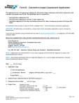 Form B - Connection Impact Assessment Application This application form is for generators applying for Connection Impact Assessment (CIA) and for generators with a project size greater than 10 kW. This application form is required for: New generators applying for CIA New generators applying for revision to their original CIA Generators applying for CIA after rescinding a previous CIA. Note: Include your previous CIA Project ID# below. For generation size less than or equal to 10 kW, complete Form C - Micro-Generation Connection Application. IMPORTANT: All fields below are mandatory, except where noted. Incomplete applications may be returned by PowerStream. If you have any questions contact PowerStream by email to egconnect@PowerStream.ca or telephone 1-877-963-6900 extension 25001. Return the completed form, fees and other required documents by mail, email or fax to: PowerStream Inc. Stations Design and Standards – Embedded Generation 161 Cityview Boulevard, Vaughan, Ontario, L4H 0A9 Email: egconnect@PowerStream.ca Fax: 905-532-4447 – Attention: Stations Design and Standards – Embedded Generation NOTE 1: Applications are cautioned NOT to incur major expenses until PowerStream approves to connect the proposed generation facility. NOTE 2: All technical submissions (Form B, single line diagrams, etc.) must be signed and sealed by a licensed Ontario Professional Engineer (P.Eng.). Date: (dd/mm/yyyy) 1. Application Type: New CIA Application CIA Revision / Rework Original CIA Project ID# (if applicable): Project Name: 2. Ontario Power Authority Feed-In Tariff (FIT) Contract #: 3. Proposed In-Service Date: 4. Project Size: (dd/mm/yyyy) Number of units Nameplate rating of each unit Generator connecting on Existing total nameplate capacity Proposed total nameplate capacity PowerStream Inc. Form B – Connection Impact Assessment Application October 2014 – rev 1.6 kW single phase kW kW three phase Page 1 of 9 Form B - Connection Impact Assessment Application 5. Project Location: Address City / Town / Township Lot Number (s) Concession number(s) 6. Project Contact Information: GPS coordinates Choose a single point of contact: Generator (mandatory) Owner Consultant Owner (mandatory) Consultant (optional) Company / Person Contact Person Mailing address line 1 Mailing address line 2 Telephone Postal Code Cell Fax Email Preferred method of contact with PowerStream: Email Telephone Postal Mail Fax 7. Program Type: A. Net Metering B. FIT C. Load Displacement C. CHP D. Energy Storage E. Other (please specify) ________________ 8. Fuel Type: A. Existing: Wind Turbine Hydraulic Turbine Steam Turbine Solar/Photovoltaic Diesel Engine Gas Turbine Fuel Cell Biomass Anaerobic Digester Bio-Diesel Other (please specify) Co-generation/CHP (combined heat and power) B. New: Wind Turbine Hydraulic Turbine Steam Turbine Solar/Photovoltaic Diesel Engine Gas Turbine Fuel Cell Biomass Anaerobic Digester Bio-Diesel Other (please specify) Co-generation/CHP (combined heat and power) PowerStream Inc. Form B – Connection Impact Assessment Application October 2014 – rev 1.6 Page 2 of 9 Form B - Connection Impact Assessment Application 9. Customer Status Are you an existing PowerStream customer? If yes, PowerStream 12-digit account number: Customer name registered on this account: Are you a Goods and Service Tax (GST) registrant? If yes, provide your GST registration number: Yes Yes - No No RT 10. Location and Site Plan: Provide site plan with approximate line routings for connection to nearby PowerStream facilities. The site plan should include roads, concession and lot numbers and nearby power lines. It should identify the Point of Common Coupling (PCC) location on the PowerStream feeder and the location (i.e. on private property or municipal property) of all generator lines (collector lines and transmission / distribution lines). Drawing / Sketch number: , Rev. 11. Connection to PowerStream’s Distribution System: a. b. c. d. Proposed or existing connection voltage to PowerStream’s distribution system: kV Station: Feeder: Distance between the connection point on the feeder (PCC) and the demarcation point between the utility and distributed generation ‘owned’ Electrical Safety Authority approved load break switch (located on source side of metering, breaker, interface transformer, etc.): km e. If line tap required: Line tap between generating facility demarcation point (load break switch and metering) and connection point on PowerStream’s feeder (PCC): Conductor size (e.g. 366): Conductor type (e.g. AL): Note: PowerStream may request actual impedance for non-standard conductors at a later time. f. PCC GPS coordinates: g. Route distance from PCC (if distance from PCC to generator > 500m) to generation site: km h. Line tap to be built by: PowerStream (see Note) OR other (specify): i. Line tap to be owned by: PowerStream (see Note) OR other (specify): NOTE: Customers requiring line tap construction between their demarcation point and the connection point on the PowerStream feeder should contact PowerStream to discuss potential ownership options, construction and coordination logistics for these facilities. Also, those customers whom may require attaching collector lines to PowerStream poles must also contact PowerStream to discuss potential to engage in joint use of utility assets. PowerStream will consider owning and operating all new lines if they are designed and constructed to PowerStream standards and are located on municipal roadway right-of-ways. This may change your PCC location. You must contact PowerStream to discuss. For details email egconnect@PowerStream.ca or call 1-877-963-6900, extension 25001. 12. Single Line Diagram (SLD): Provide a SLD of the generating facility including the Interface Point / PCC to PowerStream’s distribution system. SLD drawing number: , Rev. PowerStream Inc. Form B – Connection Impact Assessment Application October 2014 – rev 1.6 Page 3 of 9 Form B - Connection Imp