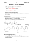 Takusagawa’s Note© 1 Chapter-15 Chapter-15: Glycogen Metabolism - Glycogen is the animal storage form of branched poly(glucose). - Processes of glycogen breakdown is: (glucose)n → glucose-1-phosphate + (glucose)n-1 - Processes of glycogen synthesis is: (glucose)n-1 + UDP-glucose → (glucose)n - Regulation of glycogen breakdown and synthesis: is controlled by two key enzyme (glycogen phosphorylase and glycogen synthase) activities which are activated/inactivated by allosteric regulation and phosphorylation / dephosphorylation. 1. Glycogen breakdown Glycogen structure - Glucose molecules in the main chains are connected by α(1→4) glycosidic bonds. - The branches are attached by α(1→6) glycosidic linkages. - A glucose unit on the non-reducing ends is cleaved or attached one by one. CH2OH CH2OH O CH2OH O O OH OH OH O HO O OH CH2OH CH2OH O CH2 O OH CH2OH O OH O OH CH2OH O OH HO Reducing end HO O α(1Æ6) linkage OH O OH O OH O OH OH Non-reducing ends Branch point O OH OH OH α(1Æ4) linkage Different pathways of glycogen breakdown - In muscle: Glycogen → glucose-6-phosphate (G6P) → glycolysis - In liver: Glycogen → G6P → glucose → bloodstream → various cells → glycolysis - Because the muscle cells mainly consume glucose molecules whereas the liver cells mainly store the glucose molecules. 1 Takusagawa’s Note© 2 Chapter-15 Glycogen breakdown requires three enzymes 1. Glycogen phosphorylase (simply call it phosphorylase) (Glycogen)n + Pi ↔ (glycogen)n-1 + G1P (n residues) (n-1 residues) This enzyme releases a glucose unit one by one until it reaches ~ five units (limit branch) from a branch point. - The enzyme has a crevice where 4-5 units of a left-handed helical glycogen can fit, but it is too narrow to fit a branch point. O - - Enzyme-catalyzed modification/demodification process yields two forms of phosphorylase Phosphorylase a --- E-O-PO32- (attachment at Ser-14). Phosphorylase b --- No phosphate attachment. Both forms of enzyme are allosterically activated or inactivated. Allosteric inhibitors: ATP, G6P and glucose. Allosteric activator: AMP. Pyridoxal phosphate (PLP) is an essential cofactor for phosphorylase - PLP covalently bound to phosphorylase via a Schiff base to Lys-679. - PLP’s phosphate group probably functions as an acid-base catalyst. Phosphorylase (CH2)4 - O H H C O P O C - O H N O - O OH CH O P O C - + N H O CH3 H OH + N CH3 H H Pyridoxal phosphate (PLP) PLP bound to Lys 679 via Shiff base 2 Takusagawa’s Note© 3 Chapter-15 Reaction mechanism 1. Formation of an [E-PL · Pi · glycogen] ternary complex. 2. Cleavage of the glycosidic bond by an acid catalysis (the Pi donates H to the bridge O because the Pi receives H from PL), and formation of oxonium ion intermediate (half-chair conformation). 3. Reaction of Pi with the oxonium ion to form G1P. Half-chair oxonium ion CH2OH HO O HO OH H CH2OH + O HO HO O CH2OH H HO OH - O Acid catalysis H HO O O O P - O H O O PL HO O OH O HO OH O - O - O P - O O CH2OH HO H O P O (Glu)n-2 CH2OH O H O OH O O (Glu)n-2 P - O O PL E E Glycogen + Pi + Enzyme Ternary complex 3 H - O O O O P - O O PL E P - O Takusagawa’s Note© 4 Chapter-15 2. Glycogen debranching enzyme - Removes branches so that glycogen phosphorylase can complete reaction. Reaction mechanism 1. Three glucose units of the branch are cleaved and reattached to the non-reducing end of the main chain. 2. The branch point, the glucose attached to the main chain by the α(1-6) glycosidic bond is hydrolyzed. G1P G1P G1P G1P Limit branch G1P G1P G1P G1P G1P Free glucose G1P G1P G1P G1P G1P G1P G G1P 4 Takusagawa’s Note© 5 Chapter-15 3. Phosphoglucomutase - G1P produced from the glycogen breakdown must be convert to G6P in order to enter glycolysis or to produce glucose in liver. - Phosphoglucomutase catalyzes the conversion of G1P to G6P. - The Ser of the enzyme is phosphorylated. Reaction mechanism 1. The O6 of G1P attacks the phosphoenzyme to form a dephosphoenzyme-G1,6P intermediate. 2. The Ser-OH group on the dephosphoenzyme attacks the phosphoryl group at C1 to regenerate the phosphoenzyme, and the product G6P is released. Enzyme Ser H2C O 2PO3 Enzyme Enzyme Ser Ser H2C O PO3 2- CH2OH 2- CH2OPO3 O CH2OPO3 O OH HO 2- H2C O H O OH 2- OPO3 OH G1P HO OH 2- OPO3 OH HO G1,6P OH OH G6P 2. GLYCOGEN SYNTHESIS - Biosynthetic and degradative pathways of metabolism are almost always different. Glycogen synthesis Glucose Glycogen Glycogen breakdown 5 Chapter-15 6 Takusagawa’s Note© A. UDP-glucose formation by UDP-glucose pyrophosphorylase - In the glycogen synthesis pathway, at first, the uridine diphosphate (UDP) is attached to glucose. - This reaction is catalyzed by UDP-glucose pyrophosphorylase. Reaction mechanism 1. The phosphoryl oxygen of G1P attacks the α-phosphorus atom of UTP to form UDP-glucose (ΔG°’ ≈ 0). Since the ΔG°’ ≈ 0, this reaction is not proceeded without some input energy. 2. The released PPi is rapidly hydrolyzed by inorganic pyrophosphatase (ΔG°’ < 0). Since this hydrolysis reaction is exergonic, the first phosphorylation reaction is pulled. ΔG°’ (kJ/mol) G1P + UTP ↔ UDP-glucose + PPi ~0.0 H2O + PPi → 2Pi -33.5 Overall G1P + UTP → UDP-glucose + 2Pi -33.5 6 Chapter-15 7 Takusagawa’s Note© B. Glycogen synthesis by glycogen synthase Reaction mechanism 1. The glycosidic bond between glucose and UDP in UDP-glucose is hydrolyzed. The cleaved glucose ion takes the oxonium ion intermediate (half-chair conformation), which is stabilized by the enzyme. 2. The glucose unit of UDP-glucose is transferred to the C4-OH group on one of glycogen’s non-reducing ends to form an α (1→4) glycosidic bond. - UDP is recycled by conversion to UTP with ATP. UDP + ATP ↔ UTP + ADP Thermodynamics - ΔG of glycogen breakdown by glycogen phosphorylase is < 0 (ΔG ≈ -5 to -8 kJ/mol). (glucose)n + Pi ⎯→ G1P + (glucose)n-1 - ΔG of glycogen synthesis by glycogen synthase is < 0 (ΔG ≈ -14 kJ/mol). (glucose)n-1 + UDP-gluco