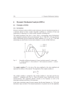 236 6 Dynamic Mechanical Analysis 6 Dynamic Mechanical Analysis (DMA) 6.1 Principles of DMA 6.1.1 Introduction Dynamic mechanical analysis (DMA) yields information about the mechanical properties of a specimen placed in minor, usually sinusoidal, oscillation as a function of time and temperature by subjecting it to a small, usually sinusidal, oscillating force. The applied mechanical load, that is, stress, elicits a corresponding strain (deformation) whose amplitude and phase shift can be determined, Fig. 6.1. ISO 6721-1 [1] states that the mode of deformation governs whether the complex modulus is E*, G*, K*, or L*. The other relationships are shown below for the elastic modulus E, see also ASTM D 4092 [2]. stress σ strain ε σA εΑ σ, ε δ ωt Fig. 6.1 Sinusoidal oscillation and response of a linear-viscoelastic material; G = phase angle, E = tensile modulus, G = shear modulus, K = bulk compression modulus, L = uniaxialstrain modulus The complex modulus E* is the ratio of the stress amplitude to the strain amplitude and represents the stiffness of the material. The magnitude of the complex modulus is: E* VA HA The complex modulus is composed of the storage modulus E´ (real part) and the loss modulus E´´ (imaginary part), Fig. 6.2. These are dynamic elastic characteristics and are material-specific; their magnitude depends critically on the frequency as well as the measuring conditions and history of the specimen. In the linear-viscoelastic range, the stress response has the same frequency (Z = 2Sf) as the deformation input excitation. The analytical parameters in dynamic tests are the amplitudes 6.1 Principles of DMA 237 of the deformation and the stress, and the time displacement GZ between deformation and stress, and are used to determine the specimen’s characteristics [3]. E* E* >E' (Z)@2 >E' ' (Z)@ E ' (Z) E' ' (Z) tan G Fig. 6.2 VA HA 2 E * cos G E * sin G E' ' (Z) E ' (Z) Formulae for calculating complex modulus E*, storage modulus E´, loss modulus E´´ and loss factor tan G [1, 2]G According to ISO 6721-1 [1], the storage modulus E´ represents the stiffness of a viscoelastic material and is proportional to the energy stored during a loading cycle. It is roughly equal to the elastic modulus for a single, rapid stress at low load and reversible deformation, and is thus largely equivalent to the tabulated figures quoted in DIN 53457. In the same ISO standard [1], the loss modulus E´´ is defined as being proportional to the energy dissipated during one loading cycle. It represents, for example, energy lost as heat, and is a measure of vibrational energy that has been converted during vibration and that cannot be recovered. According to [1], modulus values are expressed in MPa, but N/mm2 are sometimes used. The real part of the modulus may be used for assessing the elastic properties, and the imaginary part for the viscous properties [3]. The phase angle G is the phase difference between the dynamic stress and the dynamic strain in a viscoelastic material subjected to a sinusoidal oscillation. The phase angle is expressed in radians (rad) [1]. The loss factor tan G is the ratio of loss modulus to storage modulus [1]. It is a measure of the energy lost, expressed in terms of the recoverable energy, and represents mechanical damping or internal friction in a viscoelastic system. The loss factor tan G is expressed as a dimensionless number. A high tan G value is indicative of a material that has a high, nonelastic strain component, while a low value indicates one that is more elastic. 238 6 Dynamic Mechanical Analysis Curves show the change in complex modulus E*, storage modulus E´, loss modulus E´´, and loss factor tan G In a purely elastic material (Fig. 6.3), the stress and deformation are in phase (G = 0), that is, the complex modulus E* is the ratio of the stress amplitude to the deformation amplitude and is equivalent to the storage modulus E´ (G = 0, therefore cosine 0 = 1; sine 0 = 0, therefore E* = E´). Steel is an example of an almost purely elastic material. In a purely viscous material, such as a liquid, the phase angle is 90°. In this case, E* is equal to the loss modulus E´´, the viscous part. stress σ strain ε σA σ,ε εΑ Fig. 6.3 ωt Stress–strain behavior of a purely elastic material Viscous and elastic properties measured Typical curves of the changes undergone by amorphous thermoplastics are shown in Fig. 6.4. At low temperatures, the molecules are so immobile that they are unable to resonate with the oscillatory loads and therefore remain stiff. The macromolecular segments cannot change shape, especially through rotation about C–C bonds, and so the molecular entanglements act as rigid crosslinks. At elevated temperatures, the molecular segments become readily mobile and have no difficulty resonating with the load. The entanglements more or less remain firmly in place, but may occasionally slip and become disentangled. Thermosets and elastomers have additional chemical crosslinks that are retained no matter what the temperature is. Weakly crosslinked rubber has one crosslink for every 1000 atoms while cured, brittle thermosets have one for every 20 atoms. 239 E*;E' tan δ E'' Loss factor tan δ entropy elastic glass transition state energy elastic state Loss modulus E'' Complex modulus E* Storage modulus E' 6.1 Principles of DMA Temperature/ Time Fig. 6.4 Schematic diagram of typical DMA curves for an amorphous polymer The material is said to be in the glass state or energy elastic state at the low temperatures described above, and in the rubber or entropy elastic state at the elevated temperatures mentioned there. A change from the glass state into the rubber-elastic state is called the glass transition. When the timescale of molecular motion coincides with that of mechanical deformation, each oscillation is converted into the maximum-possible internal friction and nonelastic deformation. The loss modulus, which is a measure of this di