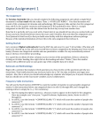 Data Assignment 1 The Assignment By Tuesday, September 22, you should complete the following assignment and submit a single Word document to me by e-­‐mail with the subject “Data 1: <YOUR LAST NAME>.” Your final document will consist of (A) a statement of rationale and methodology, (B) frequency table and bar chart for categorical data, and (C) a five-­‐number summary and histogram for the quantitative data. There is a sample assignment on the MLP site, with data taken from the first day survey from another class. Note that it is perfectly ok if you work with a friend, but (a) you should tell me who you worked with, and (b) you and your friend should not choose the exact same variables. Also note that this assignment uses Excel (instead of StatCrunch) so that you build some facility with this ubiquitous software package. Because of the statistical limitations of Excel, this is the only assignment that will use it. Getting Started Get a version of BigSurveyResults.xls from the MLP site and save it to your T: drive folder. (The data will need to be cleaned up, so you will save yourself time on future assignments by keeping your clean version handy.) Choose one categorical variable and one quantitative variable. Fix any inconsistently entered data or obvious errors before proceeding. It is a good idea to delete all other columns on your version of the spreadsheet. (Select a column by clicking on its letter heading, then right click on the heading and select “Delete.”) Save this smaller version with a different name so your good copy of the complete data set is intact. Rationale and Methodology Begin with a sentence that explains which questions you chose (write out the question) and why you chose them. Then briefly describe any work you had to do to “fix” the data set before you began your analysis. Also, this is where you should acknowledge any students who helped you, if anyone. Remember that you should not use the exact same variables as your collaborators. Frequency Table Instructions You will use the Excel function COUNTIF to count the number of matches to each possible categorical answer. In the instructions below, my categorical data is in cells A2 through A80, and I changed the existing entries to simply be f, s, j, r for consistency. 1. Start by typing descriptive names (i.e., what you want to appear on the chart) for the categories. Since my example uses “class year,” I typed Freshman, Sophomore, Junior, Senior in cells C3 through C6. 2. In cell D2, I use the formula “=COUNTIF(A2:A80, “f”)” which will count the number of people who answered “f”. 3. In cell D3, I use the formula “=COUNTIF(A2:A80, “s”)” which will count the number of people who answered “s”. 4. In cell D4, I use the formula “=COUNTIF(A2:A80, “j”)” which will count the number of people who answered “j”. 5. In cell D5, I use the formula “=COUNTIF(A2:A80, “r”)” which will count the number of people who answered “r”. Bar Chart Instructions Select the cells that contain the descriptive labels and the counts, as shown below. Then choose the Insert tab and select the 2-­‐D column chart that looks like a regular bar chart. The result of this is the chart shown below. Google “create bar chart in excel 2013” (or whatever Excel version you have) and watch a video. Note that in Excel they call a vertical bar chart a “column chart” but it is ok if you want to make it horizontal by choosing “bar chart.” For style points, make the chart look fancy and cool. Once you have a chart you like, right click it to copy, and then paste it to your word document. Be clear (either in commentary or axis labeling) what the vertical axis measures (count, proportion, or percentage). Five Number Summary Instructions 1. This explanation assumes the data is in cells B2 through B80. 2. In cells C82 through C86, type MIN, Q1, MED, Q3, MAX to serve as labels. 3. In cell B82 enter the formula “=QUARTILE(B2:B80,0)” 4. In cell B83 enter the formula “=QUARTILE(B2:B80,1)” 5. In cell B84 enter the formula “=QUARTILE(B2:B80,2)” 6. In cell B85 enter the formula “=QUARTILE(B2:B80,3)” 7. In cell B86 enter the formula “=QUARTILE(B2:B80,4)” Histogram Instructions Define bins as shown in the picture below, and then use Google to find a video for “creating a histogram in Excel 2013” or whatever version you have. Once you have the histogram dialog box open, see the settings in the picture below (like “selecting” Chart Output) to get the histogram as shown. Once the histogram has been created (as in the picture below) you can right click to copy it, and then paste it into your Word document report. Assignment Rubric (20 points total) ____/2 Rationale and methodology is complete ____/4 Well-­‐formatted table correctly displays counts and proportions/percentages ____/4 Clearly labeled bar chart that matches the frequency table ____/4 Correct five number summary ____/4 Clearly labeled histogram ____/3 Intangibles such as extra effort in use of other Excel features or Word formatting to enhance the appearance of your submission, or extra commentary on the results.
