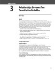 CHAPTER 3 Relationships Between Two Quantitative Variables Overview Goals The overall goal of Chapter 3 is to develop a systematic way to uncover information about bivariate data (two variables per case). We can pursue this goal as we did in Chapter 2 for univariate data: by using graphical displays and then finding a measure of center and spread to summarize the distribution. The basic plot used is the scatterplot. The basic summary measures are the regression line (which can be thought of as the measure of center) and the correlation (which can be thought of as the measure of spread). The five sections of this chapter will teach students to • make a scatterplot and determine what its shape tells about the relationship between the two variables • find and interpret the equation of the least squares regression line • find and interpret the correlation coefficient • use diagnostic tools such as residual plots to determine whether the linear regression line is appropriate or a transformation is needed first • make transformations that re-express a curved relationship as a linear one Content Overview Statistical Software Statistical software is important for this chapter—one of the most computationally intensive in this textbook. Students can use statistical software to construct scatterplots quickly, accurately, and flexibly. But more to the instructional point, they can use the software to change the location of points and then observe the corresponding change in the correlation and the regression line to further their understanding of the properties of these two measures. A Note on Terminology In the statistical community, the language of correlation and regression has not been standardized. The words in the chart on the next page are sometimes used interchangeably. 75 Terminology Concept A Bivariate Relationship Terminology Words Used Relationship Association Correlation (used only when the trend is linear) Concept Words Used The Degree of Spread Correlation of the Points About Measure of strength the Line of the relationship Scatter Variation A Summary Line Line of best fit Regression line Trend line Model Fitted line Least squares line Comparing Analyses of One-Variable and Two-Variable Distributions Thinking of the parallels between exploring a one-variable distribution and exploring a two-variable relationship is helpful. You may want to discuss this table with your students, which you can show them on the overhead projector or give them as a handout (master on page 92). Chapter 2: One Variable Chapter 3: Two Variables Key Idea Distribution Relationship (association) Plots Dot plot Stemplot Boxplot Histogram Scatterplot Shape Linear or curved Normal, uniform, or skewed Symmetric Constant strength Clusters, gaps, and outliers Clusters, gaps, and outliers Ideal Shape Normal Linear (oval/ellipse) Measure of Center Mean Median Regression line Measure of Spread Standard deviation from the Center Interquartile range Correlation Notes for AP Teachers Preparing for the AP Exam Throughout the Year Describing Distributions in Context: Shape, Trend, and Strength As in Chapter 2, frequently AP Exam free-response problems that cover the content of this chapter ask the student to describe distributions of bivariate data in context. With bivariate data, instead of shape, center, and spread, we use shape, trend, and strength. 76 Chapter 3 Overview Statistics in Action Instructor’s Guide, Volume 1 © 2008 Key Curriculum Press Section 3.1 is a great place to start students focusing on a complete description of a scatterplot in context. Even though they can’t yet compute the regression equation or the correlation, they can still describe a scatterplot’s trend and strength, just by looking at the data. When they do learn how to do the calculations, they can be used as additional evidence for conclusions they can reach from observation and analyzing a scatterplot as described in Section 3.1. In the past, the question on the AP Exam has been stated along these lines, “Describe the nature of the relationship between the two variables.” (See AP Exam 2004 B Question 1, 2002 Question 4, 2000 Question 1.) For the answer to be “essentially correct,” the student needs to include four important pieces: 1. Shape: Whether it was linear or nonlinear—if there was a pattern, that should be stated. 2. Trend: Is there a positive or negative trend? 3. Strength: If there is a trend, is it strong or weak? Does the relationship vary in strength or is it more constant? 4. Context: The context needs to be included! For example, if you consider Display 3.1 on page 106 of the student book, there is a moderately positive association between the year an employee at Westvaco was hired and the year that employee was born, and that trend is fairly linear without curvature. There is more variability among values of y for larger values of x than for smaller. (The student book gives another example of a description.) The student who loses points in this area usually either leaves out one of the big three (shape, trend, strength) or completely forgets the context. For example, for Display 3.1, the student could write, “There is a positive and moderate association between the variables. As one variable increases, so does the other. There are clusters in the x 75–90’s range for different y groupings, and a possible outlier at (43, 28).” Although this is a fairly nice description of most features, the student forgot to mention that there is a linear trend and never once mentioned the actual variables involved. This description would lose points for both omissions. Comparing Distributions: Differences in Shape, Trend, and Strength When students are asked to compare two scatterplots (or other distributions) on the AP Statistics Exam, they cannot simply describe each scatterplot separately. They should say how the shape, trend, and strength of one differ from those of the other. For example, “While both 