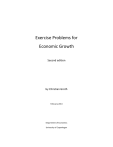 Exercise Problems for Economic Growth Second edition by Christian Groth February 2013 Department of Economics University of Copenhagen Contents Preface I. A refresher on basic concepts. The Solow model in continuous time …………………………….. 1 II. Transitional dynamics. Speed of convergence ……………………………………………………………….. 11 III. Growth accounting versus explanation of growth ………………………………………………………….. 17 IV. Applying the Ramsey model …………………………………………………………………………………………… 24 V. Human capital and economic growth……………………………………..……………………………………….. 31 VI. Simple reduced-form AK models…………. …………………………………………………………………………. 41 VII. R&D and horizontal innovations………………………………………………………………………………………. 55 Appendix: Solution formulas for linear differential equations of first order………………………………… 69 Preface to the second edition This is a collection of exercise problems that have been used in recent years in the course Economic Growth within the Master Program in economics at Department of Economics, University of Copenhagen. The majority of the exercise problems have been tried out in class in previous years and at exams. Compared with the first edition (February 2012) typos and similar are corrected and a few new exercise problems are added. For constructive criticism I thank Niklas Brønager and a lot of previous students who have suffered for bad wording and obscurities in earlier versions of the problems. No doubt, it is still possible to find obscurities. Hence, I very much welcome comments and suggestions of any kind relating to these exercises. February 4, 2013 Christian Groth Remarks on notation Given a production function Y = F (K; AL); we use the notation y Y =L; k K=L; y~ Y =(AL); and k~ K=(AL): Acemoglu (2009) uses y and k in the same way; the corresponding variables de…ned on a “per unit of e¤ective labor basis”he writes, however, in the asymmetrical way as y^ Y =(AL) and k K=(AL): To indicate the “level of technology”(assumed measurable along a single dimension), depending on convenience, we sometimes use A (as above), sometimes T . Unless otherwise speci…ed, whether we write ln x or log x; the natural logarithm is understood. In spite of the continuous time approach, the time argument of a variable, x; may be written as a subscript t; that is, as xt ; rather than as x(t) (depending on convenience). Section I A refresher on basic concepts. The Solow model in continuous time I.1 In the last four decades China has had very high growth in real GDP per capita, cf. Table 1. Answer questions a), b), and c) presupposing that the growth performances of China and the U.S. continue to be like what they have been 1980-2007. a) How many years does it take for China’s GDP per capita to be doubled? You should explain your method. b) How many years does it take for GDP per capita in the U.S. to be doubled? c) How long time, reckoned from 2007, will it take for China to catch up with the US in terms of income per capita? You should explain your method. d) Do you …nd it likely that the actual course of events will be (approximately) like that? Why or why not? 1 Table 1. GDP per capita in USA and China 1980 - 2007 (I$ in 2005 Constant Prices) country year rgdpch United States 1980 24537.41 United States 2007 42886.92 China 1980 1133.21 China 2007 7868.28 Source: PWT 6.3. Note: For China the Version 2 data series is used. I.2 In a popular magazine on science, the data in Table 2 was reported: Table 2. World income per capita relative to income per capita in the US: 1952-96 Year 1952 1962 1972 1982 1992 1996 Percent 13.0 13.3 13.0 13.8 15.1 17.7 Source: Knowledge, Technology, & Policy 13, no. 4, 2001, p. 52. Note. Countries’per capita income are weighted by population as a fraction of the world population. a) Brie‡y, discuss this data relative to concepts of income convergence and divergence and relative to your knowledge of the importance of weighting by population size. b) What is meant by the terms unconditional (or absolute) income convergence and conditional convergence? c) Give a short list of mechanisms that could in principle explain the data above. I.3 Stocks versus ‡ows Two basic elements in growth models are often presented in the following way. The aggregate production function is described by Yt = F (Kt ; Lt ; At ); 2 (*) where Yt is output (aggregate value added), Kt capital input, Lt labor input, and At the “level of technology”. The time index t may refer to period t, that is the time interval [t; t + 1) ; or to a point in time, depending on the context. And accumulation of the stock of capital in the (closed) economy is described by Kt+1 where K t = Yt Ct (**) Kt ; is an (exogenous) rate of (physical) depreciation of capital, 0 1. In continuous time models the corresponding equation is _ K(t) dK(t) = Y (t) dt C(t) K(t); 0: a) At the theoretical level, what denominations (dimensions) should be attached to output, capital input, and labor input in a production function? b) What is the denomination (dimension) attached to K in the accumulation equation? c) Is there any consistency problem in the notation used in (*) vis-à-vis (**)? Explain. d) Suggest an interpretation that ensures that there is no consistency problem. e) Suppose there are two countries. They have the same technology, the same capital stock, the same number of employed workers, and the same number of man-hours per worker per year. Country a does not use shift work, but country b uses shift work, that is, two work teams of the same size and the same number of hours per day. Elaborate the formula (*) so that it can be applied to bo