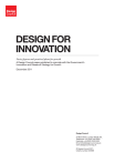 Design for innovation Facts, figures and practical plans for growth A Design Council paper published to coincide with the Government’s Innovation and Research Strategy for Growth December 2011 Design Council 34 Bow Street, London WC2E 7DL Telephone +44 (0)20 7420 5200 Facsimile +44 (0)20 7420 5300 Email info @ designcouncil.org.uk www.designcouncil.org.uk © Design Council 2011 Charity number 272099 DESIGN FOR INNOVATION | CONTENTS cONTENTS Foreword 1. Innovation and growth 2 2. Defining design within innovation 4 3. The expansion of design 5 4. The UK design sector 7 5. Economic evidence on the role of design 8 6. A business innovation infrastructure with design inside 10 7. A public innovation infrastructure with design inside 12 8. Planning for the next generation of innovators 14 9. Design for Innovation policy priorities 15 10. Design for Innovation actions 16 End notes20 About the Design Council The Design Council places good design at the heart of social and economic renewal. As a centre of new thinking and insight into the role of design in innovation, it is one of the world’s leading design organisations. For more than 60 years, it has sought to provide evidence and demonstrate how design can help build a stronger economy and improve everyday life through practical projects with industry, public services and education. The Design Council is a charity, incorporated by Royal Charter, that promotes design and architecture for the public good. For more information please visit: www.designcouncil.org.uk DESIGN FOR INNOVATION | FOREWORD FOrEword “Design can help organisations transform their performance, from business product innovation, to the commercialisation of science and the delivery of public services. That is why design forms an integral part of the Government’s plans for innovation and growth and features strongly in our Innovation and Research Strategy for Growth. The UK has the potential to succeed globally but to do so we must harness our strengths. Design is undoubtedly an area where we are amongst the best in the world, with potential to do even better.” Rt Hon David Willetts MP, Minister for Universities and Science The Design Council has produced this Design for Innovation plan to coincide with the Innovation and Research Strategy for Growth published in December 2011 which sets out how the government will boost business investment in innovation enabling greater success in the global economy. The purpose of this design plan is to bring the design elements of the Innovation and Research Strategy together in one place and to communicate these as widely as possible across design, industry, government and education. Our aim is to provide a useful strategic framework for organisations, institutions and individual businesses with an interest in making design-led innovation happen on the ground. Throughout this plan we have tried to add value to what now sits within the government’s strategy. We have synthesised arguments, brought the underlying facts and evidence to the fore and set out the design priorities. In addition we have laid out the specific design initiatives and actions that the government is funding directly as part of its stimulus package in collaboration with the Design Council and other innovation partners. This design plan has its origins in the Design for Growth Summit, hosted at the Design Council on 23 June 2011. A broad constituency of opinion-formers in areas of design, business, policy and education participated in the event and suggested ideas for swift practical action. We’d like to thank everyone who contributed. David Kester, Chief Executive, Design Council 1 DESIGN FOR INNOVATION | 1 1 INNOVATION AND GROWTH INNOVATION AND GROWTH The Innovation and Research Strategy for Growth sets out the government’s approach to boosting business investment in innovation and enabling UK success in the global economy. This section provides a high-level summary of the main themes of the government’s strategy. The Innovation and Research Strategy is focused on overcoming the economic challenges facing the UK by stimulating growth and employment, rebalancing the economy and delivering effective public services. These goals have to be achieved in a challenging international context. At the same time as the global economy is slowing, it is also becoming more competitive. More countries are seeking to produce innovative products and services and to attract mobile investment capital and high value business activities. Global trends such as population growth, demographic change, resource pressures and climate change are also presenting challenges for societies all around the world. To thrive in the global economy, the UK must rise to the challenge of achieving prosperity through increasing innovation. The government’s strategy is clear that innovation, across the public and private sectors, is the only pathway to sustainable economic growth, higher real incomes and greater quality of life in the long term. This is illustrated by research findings on the impact of innovation on business performance. For instance, NESTA’s Innovation Index shows that companies that introduced a new product between 2002 to 2004 saw average employment growth of 4.4% during the subsequent 3 years compared to 2% for non-innovative businesses. The Innovation and Research Strategy sets out how the government’s support will drive growth by addressing five critical areas: DISCOVERY AND DEVELOPMENT – fostering scientific and technological breakthroughs by prioritising investment in areas that have wide application and where the UK has competitive strengths to exploit emerging global markets. The government will back challenge-led innovation in those technology areas requiring interdisciplinary collaboration to develop new business models products and services. It is also establishing an elite national network of technology and innovation centres, branded ‘Catapult Centres