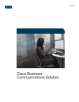 Brochure Cisco Business Communications Solution Cisco Business Communications Solution In today’s fast-changing business environment, customers are becoming more demanding and the competition is growing more intense. Companies are migrating their most important business processes to the network, which unlocks new benefits and creates new challenges. Network security risks are increasing, even as your employees depend on the network more than ever. At the same time, you’re faced with limited resources, staff cutbacks, and tight cash flow. How can you address these escalating business demands within the limits of your resources? With the Cisco® Business Communications Solution. The Cisco Business Communications Solution gives you the network foundation and applications you need to transform the way you do business. It’s made up of an industry-leading set of voice and data networking products, services, and finance options “Cisco becomes the first, and, to date, still the only, designed specifically to meet the unique needs of small and medium-sized organizations. The Cisco Business Communications Solution is built upon the Cisco Unified Communications family of products, which enable businesses to communicate more IP telephony vendor to effectively for increased productivity and profitability. earn Miercom’s highest Today’s customers have high expectations-they expect an immediate response when they rating of ‘Secure’ for its cate more effectively by optimizing messaging, supporting intelligent phone applications, proven ability to defend an IP phone service against malicious attack. An expert team of hackers, assembled and contact your business. The Cisco Business Communications Solution helps you communiand helping your employees accomplish more-even if they’re outside the office. By consolidating voice and data on a single Internet Protocol (IP) infrastructure, the Cisco Business Communications Solution helps you reduce your operating costs and bring together your communications and business processes in ways you may not have thought possible. The Cisco Business Communications Solution is the industry’s first smart, simple, secure, and integrated voice, video, data, and wireless communications system that is designed and priced for growing businesses like yours. It enables your business to migrate to a converged IP network that can improve operational efficiency, enhance customer relation- supervised by Miercom, ships, control costs, and help you respond more quickly and effectively as your business could not disrupt, or even needs change. disturb, phone service or Transforming Your Business with More Effective Communications features after three round-the-clock days of sophisticated attack.” —Network World, May 2004 The Cisco Business Communications Solution improves the efficiency of your operations by making it easier for your employees to connect to the people and information they need-the first time. Intelligent call routing allows incoming customer calls to be routed to the employee most qualified to respond to the request, using the communications devices that make employees most accessible. Unified messaging helps employees prioritize voicemail or check e-mail from a computer or IP phone. And, single-number reach enables traveling employees to automatically initiate outbound calls as if they were at their IP phone-all from the convenience of their mobile phone. Consolidating your communications on an IP network can also unlock the door to innovative, productivity-improving business applications. With flexible, custom applications, Cisco Unified IP phones can become inventory management systems, provide immediate access to sales data, or inform employees of critical information. Integrated Microsoft Customer Relationship Management (CRM) features can turn any employee into a call agent, providing customer information and enabling them to update customer records in real time, thereby helping to increase customer satisfaction. Cisco wireless phones enable employees to take advantage of intelligent voice communications as they travel around the work site-there’s no need to stay at their desks to stay connected. Using a phone, PDA, or even softphone software running on a laptop, they can receive and place calls, check voicemail, or even participate in a conference call-from almost anywhere. Additionally, many third-party phone productivity applications help you and your employees accomplish even more, such as accessing sales results, employee extension numbers, or any Web-based content right from their phones, whether they’re working at a branch office or at home. Sales personnel can even check inventory from a field office. According to a 2005 report by Sage Research, companies with a converged IP telephony solution commonly report that their users save five or more hours per week in technical support for telephony applications. The savings reflected not only increased user productivity, but savings for technical support staff as well. Companies also reported time savings due to easier moves, adds, and changes; increased mobility; increased remote office productivity; reduced back-and-forth telephone calling; and improved productivity at headquarters. Some of the specific productivity improvements included: Percent Realizing Benefit Average Time Saved Easier moves, adds, and changes 56 percent 1.6 hours/move Improved mobile employee productivity 48 percent 4.3 hours/week/mobile employee Improved remote-office employee productivity 46 percent 4.0 hours/week/remote office employee Less “back-and-forth” on the phone for employees 46 percent 3.9 hours/week/employee Improved headquarters employee productivity 45 percent 3.9 hours/week/employee Easy to Use and Manage The Cisco Business Communications Solution helps your staff take charge of their communications environment with simple, intuitive network management tools for telephony, routing, switching, a