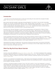 The Association of Black Psychologists ON DARK GIRLS Introduction “…the capture of the mind and body both is a slavery far more lasting, far more severe than conquest of bodies alone…” Ayi Kwei Armah, Two Thousand Seasons (p.33) Black women have been assaulted—physically and psychologically—for centuries—since we were involuntarily brought to the colonies as enslaved labor (Blackmon, 2009). Whereas Whites were glorified (Fairchild, 1988), portrayals of Black women (and men) were vicious. We were cast as morally and intellectually inferior to White men and women, sexually perverse, and spiritually bankrupt (cf. Fairchild, 1995). Viewed as sub-human, we were victims of physical and sexual abuse, social discrimination, and psychological tyranny. And still we rise! We never fully gave in to the lies and misrepresentations; but generations of abuse do take a toll and has affected us as individuals, families, communities, and a people. Dark Girls gives us an opportunity to take a soul-searching look at the effects of racism on the self-image of Black women personally and collectively, particularly as it relates to complexion, so that where healing is needed, we can heal; where our tools for resilience and defying the lie protected us, we can lift them up for celebration and increased use. In the conversations that ensue from Dark Girls, we can choose to take this occasion to heal; to no longer simply demonstrate resilience to the assaults and lies about Black women, but rather, we can as Blackmon (2009; p. 3) stated chose to “…counter [our] realities of violence and discrimination by envisioning the Black female community as a collective of unique agents working toward a common goal of liberation” (Blackmon, 2009, p. 3). Viewing Dark Girls presents an opportunity. Not everyone will have the same reaction. Not everyone will identify with all of the issues, images, and concerns. However, we can all take out time to reflect deeply, rethink where we stand on these issues, and support each other. What You May Not Know About Colorism Definition Colorism is skin color stratification (Okazawa Rey, Robinson, & Ward, 1987). It is “a form of oppression that is expressed through the differential treatment of individuals and groups based on skin color. Typically, favoritism is demonstrated toward those of lighter complexions while those of darker complexions experience rejection and mistreatment….” (Jackson-Lowman, 2013) Colorism is one expression of internalized racism. After hearing racist stereotypes and attitudes, a time comes when these are adopted as truth—internalized—and believed by those on the receiving end of the lie. A heavy price is paid by all members of the Black community. “Colorism is a persistent problem for people of color in the USA. Colorism, or skin color stratification, is a process that privileges light-skinned people of color over dark in areas such as income, education, housing, and the marriage market. Colorism is directly related to the larger system of racism in the USA and around the world. The color complex is also exported around the globe, in part through US media images, and helps to sustain the multibilliondollar skin bleaching and cosmetic surgery industries.” (Hunter, 2007, p.237) The Association of Black Psychologists ON DARK GIRLS Historical Roots In the US, colorism has roots in European colonialism (Jordan 1968) and plantation system of enslaved African Americans (Stevenson 1996). The American enslavement system operated as a form of White domination that rewarded those who emulated Whiteness culturally, ideologically, economically, and aesthetically (Hunter, 2007). Four central figures emerged out of the racist antebellum representations of Black womanhood: the “inept domestic servant” (the mammy), the domineering matriarch, the sex object (the Jezebel), and “the tragic mulatto” (Morton, 1991). While White women were idealized as all things virtuous (piety, deference, domesticity, passionless, chastity, clean and fragile), Black women were cast as primitive, lustful, seductive, physically strong, domineering, unwomanly and dirty (Mgadmi, 2009). The color caste system established in the antebellum period was reinforced through various laws. In 1622 we saw the first miscegenation law in Virginia (Russell, Wilson, & Hall, 1992). Also in 1662 a Virginia law declared that mixed children born to enslaved women would share the legal status of their mother. Thus, the children that the White enslavers had with captive women were defined as enslaved. However, they were often provided more favorable roles within a plantation; thus enacting the colorism hierarchy. After the Civil War, the divisions created during enslavement led to divisions based on differences in skin color, hair texture and physical appearance (Jackson-Lowman, 2013, p. 158). These early laws and practices took root and eventually influenced several parts of Black life. Social groups such as the Bon Ton Society (Washington, D.C.), and the Blue Veins (Nashville) had strict admission standards based on color (Russell et al., 1992). Neighborhoods made up of primarily lighter-skinned African Americans emerged in cities like Chicago, Philadelphia and New York. Black churches were not exempt. Some were designated specifically for lighter-skinned African Americans and even the break of the Colored Methodist Episcopal Church (C.M.E.) in 1870, from the African Methodist Episcopal Church (A.M.E.), was based on skin color issues. The 20th century witnessed the “paper bag test” and the “comb test” by color conscious churches and some social organizations to enforce rules for lighter-skinned membership. Membership was denied if your skin was darker than the paper bag, or if the comb might snag in your hair. Some churches painted their doors light brown; a signal to those who were darker than the door that they were not welcome. Still other churches hung a comb at their do