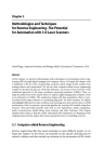 Chapter 2 Methodologies and Techniques for Reverse Engineering–The Potential for Automation with 3-D Laser Scanners David Page, Andreas Koschan, and Mongi Abidi, University of Tennessee, USA Abstract In this chapter, we present methodologies and technologies for automating reverse engineering (RE) through digital imaging and computer vision. We begin this chapter with a definition of RE in terms of generating computer-aided design (CAD) models from existing objects and components. We use the term computer-aided reverse engineering (CARE) to describe this process. With this definition, we present a brief overview of the traditional approach to RE using coordinate measuring machines (CMMs). Then, we begin the main focus of the chapter where we explore digital imaging and computer vision as an alternative to CMMs. This exploration begins with data acquisition, where we present laser-based range scanners as a promising approach. For these scanners, we explain and highlight differences in data resolution and scanning rates and contrast those to CMM performance. Next, we present a processing pipeline for creating CAD models using these scanners. This processing includes tasks such as view registration, surface integration, patch reconstruction, model fitting, noise removal, and other functions. This chapter explains these topics to help the reader understand their importance in designing an RE imaging system and the impact that various parameters have on modeling accuracy. 2.1 Computer-aided Reverse Engineering Reverse engineering (RE) has many meanings to many different people. As we begin this chapter, we first focus our attention on the specific meaning that we intend to address and then extend our attention to the automation of RE, which 12 2 Methodologies and Techniques for Reverse Engineering we call computer-aided reverse engineering (CARE). To this end, this chapter discusses CARE in general and then explores 3-D laser scanning in depth as an emerging CARE technology from the computer vision community, as introduced in Varady et al. (1997), Bernardini et al. (1999), and Page et al. (2003). The chapter details the methodologies and techniques associated with computer vision scanning and notes specific challenges for the CARE problem. 2.1.1 What Is Not Reverse Engineering? Each discipline of engineering has a different definition for RE. Computer engineers and computer scientists, for example, refer to RE when they speak of determining the algorithmic functionality of a software package when they have no prior knowledge of the original software design. Engineers and programmers attempt to develop functional block diagrams of the software through interaction with the interface and to develop high-level code descriptions from raw machine code. This software definition is not the scope of our RE discussion. Another example of RE that might be familiar–but also outside the scope of this chapter–concerns revealing the inner workings of a machine to figure out what makes it tick. This form of RE is also a systems level approach where an engineer disassembles the item of interest to develop an understanding of the functional relationship of components or to gain insight into the types of materials used to fabricate the components. As with software RE, the goal is to develop a highlevel description of a system without a priori knowledge. These two examples are common applications that use the term RE, but we wish to emphasize that our definition of RE is not related to these examples, but is instead related to the area of computer-aided engineering (CAE). 2.1.2 What is Computer-aided (Forward) Engineering? In the late 1970s and into the 1980s, computer-aided design (CAD)–a component of CAE–began to revolutionize engineering disciplines. The peak of this revolution occurred in 1990 with the design of the Boeing 777; the entire aircraft was designed and preassembled through a virtual CAD) simulation. According to Boeing, the first 777 to roll out of the production hangar in 1994 was just hundredths of an inch–about the thickness of a playing card–within alignment. This precision contrasts with the half-inch alignments common with most aircraft parts before that time–an improvement of several orders of magnitude. This revolution in technology has continued into the 1990s and today with the emergence and growth of computer-aided manufacturing (CAM). CAM is the automation of the manufacturing process itself–beyond just the design process– where machines such as computerized numerically controlled (CNC) mills allow precise fabrication of objects directly from CAD descriptions. With CAM, a designer can rapidly move from a conceptual CAD description to a real-world 2.1 Computer-aided Reverse Engineering 13 tangible object. We might use the term forward engineering—in a tongue-incheek manner—to describe this type of design, and the term CAE to describe the automation of forward engineering through CAD and CAM technologies. 2.1.3 What Is Computer-aided Reverse Engineering? CAE through CAD and CAM technologies is the automation of engineering and fabrication, where a design formalizes ideas through computer modeling and then fabricates those models into real-world objects. CARE flows in the opposite direction. CARE creates a computer model of an object through measurements of the object, as it exists in the real world. In this context, we define CARE as the reversal of CAE or the ability to generate a CAD model from a real-world tangible object. We illustrate this flow in Figure 2.1. The disc brake appears on the left side of this figure and its CAD model appears on the right. We acquired this particular brake from a local junkyard and cleaned the surfaces of rust and dirt. Then, we used a laser-based range scanner to create the CAD model. This model is metrically accurate to within a few millimeters of the original junkyard brake. By analogy, one might think of this capability as a