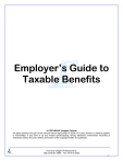 Employer’s Guide to Taxable Benefits © COPYRIGHT Ledgers Canada All rights reserved. No part of this manual may be reproduced in whole or in part, stored in a retrieval system, or transmitted, in any form or by any means (photocopying, faxing, electronic, mechanical, recording or otherwise) without the prior written permission of the copyright holder and publisher. Your local Ledgers Professional is: Dilip Chetram, MBA Tel: 416-412-3625 -1- Table of Contents Table of Contents .............................................................................................................................2 Overview............................................................................................................................................4 Taxable Benefits ...............................................................................................................................5 Automobile Benefits......................................................................................................................................... 6 Calculating the Benefit ................................................................................................................................. 7 Automobile Allowances ................................................................................................................................... 9 Reasonable per Kilometer Allowances ........................................................................................................ 9 Unreasonable per Kilometer Allowances..................................................................................................... 9 Flat Rate Allowances ................................................................................................................................. 10 Combined Allowances ............................................................................................................................... 10 Board and Lodging ........................................................................................................................................ 11 Counselling Services ..................................................................................................................................... 12 Disability Related Employment Benefits........................................................................................................ 12 Discounts on Products, Services or Merchandise......................................................................................... 13 Educational Allowances for Children ............................................................................................................. 13 Gifts and Awards ........................................................................................................................................... 13 Group Term Insurance Premiums ................................................................................................................. 14 Low Rent or Free Housing............................................................................................................................. 14 Interest Free and Low-Interest Loans............................................................................................................ 15 Home Purchase Loans .............................................................................................................................. 15 Home Relocation Loans............................................................................................................................. 16 Medical Expenses.......................................................................................................................................... 16 Moving Expenses and Relocation Expenses ................................................................................................ 16 Non Accountable Allowances .................................................................................................................... 16 Moving Expense Summary, Taxable vs. Non-taxable ............................................................................... 17 Municipal Officers Expense Allowance ......................................................................................................... 18 Parking Provided by an Employer ................................................................................................................. 18 Premiums for Private Health Services Plans................................................................................................. 18 Premiums for Provincial or Government Health Plans .................................................................................. 19 Professional Membership Dues..................................................................................................................... 19 Recreational Facilities, Fitness Club Memberships....................................................................................... 20 Registered Retirement Savings Plans........................................................................................................... 20 Travelling Expenses for a Spouse................................................................................................................. 20 Stock Options ................................................................................................................................................ 21 Subsidized Meals........................................................................................................................................... 21 Subsidized School Services .......................................................................................................................... 21 Transportation to/from the Workplace ........................................................................................................... 21 Travel Allowances.
