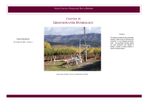 NAPA COUNTY BASELINE DATA REPORT CHAPTER 16 . GROUNDWATER HYDROLOGY PURPOSE This chapter summarizes the basic groundwater hydrology of Napa County and documents the construction of a local integrated groundwater model. The groundwater hydrology analysis and model development were designed to establish a baseline of existing conditions to support countywide programs. UPDATE CHRONOLOGY NOVEMBER 30, 2005—VERSION 1 GROUNDWATER WELL, PUMP, AND DISTRIBUTION PIPES NAPA COUNTY BASELINE DATA REPORT GROUNDWATER HYDROLOGY TABLE OF CONTENTS FIGURES Follows page INTRODUCTION .............................................................................................................................. 16-1 Purpose ................................................................................................................................ 16-1 Specialized Terms Used....................................................................................................... 16-1 POLICY CONSIDERATIONS .............................................................................................................. 16-2 Federal Policies .................................................................................................................... 16-2 State Policies ........................................................................................................................ 16-2 Local Policies........................................................................................................................ 16-2 METHODOLOGY ............................................................................................................................. 16-3 Definition of Study Area ........................................................................................................ 16-3 General Approach................................................................................................................. 16-3 Simplified Geologic Map of Napa County............................................................................16-13 16-2 Map Showing the Approximate Locations of the Three Largest Groundwater Basins in Napa County ..................................................................................16-13 16-3 Generalized Hydraulic Head in the MSTB in October of 2001 ............................................16-13 LIST OF ACRONYMS AND ABBREVIATIONS 3-D three dimensional ac-ft acre-feet EXISTING STUDIES AND DATA SOURCES ........................................................................................ 16-4 Groundwater Resources Studies.......................................................................................... 16-4 ac-ft/yr acre feet per year BDR Napa County Baseline Data Report GEOLOGIC CONTEXT FOR GROUNDWATER ..................................................................................... 16-4 Geologic Structure ................................................................................................................ 16-5 Surficial Geology................................................................................................................... 16-5 CB Carneros Groundwater Basin CB Carneros Basin CEQA CEQA DHI DHI Water & Environment EPA U.S. Environmental Protection Agency ft feet gpm gallons per minute K hydraulic conductivity K spatial distribution of hydraulic conductivity MIKE SHE 3-Dimensional Groundwater Model MIKE SHE/MIKE11 3-Dimensional Groundwater Model MST Milliken-Sarco-Tulocay MSTB Milliken-Sarco-Tulucay Groundwater Basin NNVB North Napa Valley Groundwater Basin PCG preconditioned conjugate gradient CONCLUSIONS AND REPORT UPDATE RECOMMENDATIONS ........................................................... 16-12 RWQCBs Regional Water Quality Control Boards S storage coefficient REFERENCES .............................................................................................................................. 16-12 SWRCB State Water Resources Control Board Sy specific yield USGS U.S. Geological Survey OVERVIEW OF GROUNDWATER IN NAPA COUNTY............................................................................ 16-6 Groundwater Supply and Principal Basins............................................................................ 16-6 GROUNDWATER BASIN OVERVIEW ................................................................................................. 16-7 North Napa Valley Basin....................................................................................................... 16-8 Milliken-Sarco-Tulucay Basin................................................................................................ 16-9 Carneros Basin ................................................................................................................... 16-10 THREE-DIMENSIONAL GROUNDWATER MODEL (MIKE SHE)......................................................... 16-11 Overview............................................................................................................................. 16-11 Modeling Algorithm ............................................................................................................. 16-11 Data Requirements............................................................................................................. 16-11 Assumptions and Limitations .............................................................................................. 16-11 Uses of the Model and Initial Results.................................................................................. 16-11 GROUNDWATER HYDROLOGY—VERSION 1, NOVEMBER 2005 16-1 -16-i- NAPA COUNTY BASELINE DATA REPORT INTRODUCTION T his chapter of the Napa County Baseline Data Report (BDR) describes the baseline conditions for groundwater hydrology of Napa County (County). In addition to summarizing the hydrogeologic system, this chapter documents the construction of a local integrated surface water and groundwater model developed for 