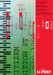 Customer Barcoding Technical Specifications Revised 3 Aug 2012 Contents June 1998 Introduction Key features of the barcoding system About this document Why we are introducing Customer Barcoding Benefits of Customer Barcoding Customer impact The barcode symbology we have chosen The four ‘states’ How bars are interpreted Barcode fields Overview of barcode structure Start Bars Format Control Code Field Sorting Code Field Customer Information Field Reed Solomon Error Correction Bars Stop Bars Standard barcode formats Standard Customer Barcode Customer Barcodes 2 & 3 Encoding Tables Bar symbols N Encoding Table C Encoding Table Bar to Decimal Conversion Table Dimensions, placement and printing of barcodes Constraint factors Dimensions Skew tolerance Bar Density Reflectance Quiet Zones Dot Matrix Printing Placement of barcodes Text representation of the barcode Measurement of barcodes in final form Barcode fonts Glossary 2 2 2 3 3 3 4 4 4 5 5 5 5 6 6 6 7 8 8 9 10 10 10 11 11 12 12 12 12 13 13 13 13 14 14 14 15 16 Introduction Australia Post is implementing a new Customer Barcoding system for letters. From 1998 onwards, sophisticated new sorting equipment called Barcode Sorters (BCS) will be installed at our mail centres. The equipment will enable us to simplify and accelerate the sorting of mail through the Australia Post network. Key features of the barcoding system When the system is introduced, customers will be able to print barcodes above the address information on their letters. Information embedded in the barcodes, will uniquely identify every address or delivery point in Australia. When the barcoded mail enters Australia Post’s network, the BCSs will scan and read the barcodes. About this document Customers will require software to develop and print barcodes on their mail. This document provides information for software developers involved in building this software. It describes the symbology, format, fields, values and other characteristics of the Customer Barcodes. A separate document, ‘A Guide to Printing the 4-State Barcode’, is also available. It explains how to write the programming code to generate the 4-State Barcode and includes information on coding the Reed Solomon Error Correction and test data. 2 Australia Post Customer Barcoding Technical Specifications Why we are introducing Customer Barcoding Customer Barcoding is an important part of Australia Post’s strategy to improve our services to customers mailing bulk quantities of letters. By introducing a ‘4-State’ Barcode, we will be able to use equipment to sort letters to individual addresses, rather than to postcode level. This will improve our sorting efficiency. Benefits of Customer Barcoding Customer Barcoding will provide the following benefits: 1. Simplified pre-sorting requirements. Customers will no longer need to bundle letters. 2. Enhanced service. Barcodes can be read faster and more accurately than address text. This improves sorting efficiency. 3. Greater addressing flexibility. With Customer Barcoding, the range of fonts and envelope layouts is enhanced. 4. Simplified pricing structure. The efficiency of Customer Barcoding enables pricing structures to be simplified. Customer impact To introduce Customer Barcoding, customers will need to undertake the following steps. 1. Review and modify, if necessary, their customer database/s to accommodate the eight digit Delivery Point Identifier (DPID). DPIDs are explained on page 6. 2. Validate their customer database against Australia Post’s Postal Address File (PAF), using approved address-matching and correction software. This software will append the correct DPID in the field created in Step 1. 3. Print the barcode using the approved address-matching and correction software used in Step 2, or by acquiring barcode printing software. 3 The barcode symbology we have chosen There are several barcode symbologies currently on the market. Australia Post has chosen the 4-State Barcode, a derivation that is already used successfully by other postal administrations. Diagram 1 11 96184209 32 57 38 54 Advantages of the 4-State Barcode The main advantages of the 4-State Barcode are as follows: • Contains more information in a set length than most other barcode symbologies; • The barcodes can be read accurately through envelope window panels; and, • The barcodes can be reliably printed using simple printing techniques such as dot matrix, bubble/ink jet, and laser. Mr John Citizen PO BOX 6 FOOTSCRAY WEST VIC 3012 Sample Customer Barcode. The characters designated by the bars are printed directly above the barcode. The barcode is generally placed above the address as shown here The four ‘states’ The barcode comprises four types of bars (four ‘states’), each of which is identified by both a name and a value. Diagram 1 shows an example of a 4-State Barcode. Diagram 2 The four ‘states’ of bars Each bar comprises a ‘tracker’ (middle section), to which an ‘ascender’ (top section) and/or ‘descender’ (bottom section) may be added. Ascender A As Diagram 2 shows, this creates four possible bar states: • • • • Tracker with Ascender and Descender, Tracker with Ascender, Tracker with Descender, and Tracker on its own. Names of the states Each of these states has a name: H, A, D, or T, and a corresponding value: 0, 1, 2, or 3. Bars in different states can be grouped together to form symbols. How bars are interpreted Within a barcode, the bars are grouped in various ways to designate numerical and alphabetical characters. Although a barcode looks like a consistent string of individual bars, the bars are actually sorted into fields. Each field is allocated a set number of symbols (grouped bars). The symbols make sense by reference to an Encoding Table. The particular configuration of fields, symbols, bars and codes in a barcode are determined by the barcode’s format. Note: The next three sections deal with fields, formats and codes in more