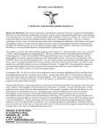 MICHAEL & KATHI ROCK GARDENING FOR HUMMINGBIRDS PROGRAM Michael and Kathi Rock offer extensive experience in educating the community about how to garden for hummingbirds. While they are not professional ornithologists or botanists, they have been studying hummingbird behavior and gardening for hummingbirds for over 10 years. Their hummingbird garden in Madison, Wisconsin contains 100+ varieties of annual and perennial plants that attract hummingbirds and they maintain 20+ hummingbird feeders. They have traveled to southeastern Arizona, Texas, Louisiana and many other locations throughout the Midwestern United States to learn about hummingbirds and have consulted with and studied with many experts and hummingbird bird banders including Nancy Newfield, Sheri Williamson and Tom Wood, Bob and Martha Sargent, Lanny Chambers, Mark Klymm, Ross Hawkins, Bill Hilton, Jr., Steve and Debbie Bouricius, Donald Mitchell, and Brent Ortego. They publish a newsletter about hummingbird gardening in the Northern U.S., The Hummingbird Nectar News, and offer a website: http://mywebspace.wisc.edu/mjrock/web. They have published articles about hummingbird gardening for Northscaping.com, Netlines, the newsletter of The Hummer/Bird Study Group, Second Opinion Magazine, and The Hummingbird Connection, a quarterly publication of The Hummingbird Society. They also actively participate in the HUMNET listserve and The Hummingbird Forum. They have educated many local gardening and birding groups, senior citizen, and service groups throughout their local community and beyond and present their program at the Dane County Garden Expo and Olbrich Gardens every year in Madison, Wisconsin. In August 2013, they presented their program at the Sedona Hummingbird Festival and will speak at the Chicago Garden and Flower show in March 2014. Every September, they conduct a public tour of their hummingbird garden. In September 2007, The Wisconsin State Journal published an article and photos highlighting Michael and Kathi Rock’s hummingbird garden and their community service efforts. In July/August 2008, Midwest Living Magazine featured an article about their garden and experiences with hummingbirds. Their annual garden tour was featured in the June/July 2010 issue of Birds and Blooms Magazine. In 2010, their garden was featured on an episode of The Wisconsin Gardener program on Wisconsin Public Television. Michael and Kathi Rock’s educational program is an interactive Powerpoint presentation that integrates video clips into a series of photos of hummingbirds at flowers and feeders in the Rocks’ own garden. The goal of the program is to help people learn how to most effectively attract hummingbirds to their property, regardless of location (the Rocks live in an urban location in a small Midwestern city.) The program opens with basic information such as how to identify a hummingbird, the life and behavior of the Ruby-throated hummingbird, migration patterns, the best feeders for hummingbirds and how to maintain them, and reproduction and nesting. The second half of the program identifies the best annual and perennial plants to include in your garden for hummingbirds and how to most effectively design a garden to attract hummingbirds. Program participants will receive printed material about hummingbird gardening for future reference as well as free flower bulbs and seeds for a few of the greatest plants for hummingbirds. Michael and Kathi’s passion for and interest in this topic are infectious and will create excitement about hummingbirds and gardening for them in people from a wide variety of backgrounds and interest areas. MICHAEL & KATHI ROCK 5118 BUFFALO TRAIL MADISON, WI 53705 (608) 233-7397 e-mail: kathijr@yahoo.com Website: http://mywebspace.wisc.edu/mjrock/web HUMMINGBIRD GARDENING FOR NORTHERN GARDENERS “The hummingbird is seen to stop thus some instants before a flower, and dart off like a gleam to another; it visits them all, plunging its little tongue into their bosom, caressing them with its wings, without ever settling, but at the same time ever quitting them.” W.C.L. Martin, General History of Hummingbirds, Circa 1840. KEY ELEMENTS OF A SUCCESSFUL HUMMINGBIRD GARDEN -A Garden Filled With Flowers Loved By Hummingbirds With Something in Bloom All Season Long! -Well-Maintained Feeders from April through October (with no instant nectar or red food coloring) -Cover, Perching & Preening Spots (trees & shrubs, shepherd’s hooks, tree snags) -Water Feature---water should be shallow and feature should include dripper or misting device -Hummingbird Beacons (red ribbons, metallic streamers, gazing ball, or any red object!) HUMMINGBIRD GARDENING TIPS Red or Orange Tubular Flowers with no fragrance Focus on Native Plants, Wildflowers & Single Flowers Plants with Many Small Blossoms Pointing Sideways or Down Plants With Long Bloom Period Plants that Bloom Profusely During August & September Mass Plantings of Flowers That are Hummingbird Favorites Height of Plants should be Tall, not Short (or utilize hanging baskets or large containers for shorter plants) Place Feeders & Flowers Where You Can See & Enjoy Them From Your Home! THE “DOZEN DAZZLER” HUMMINGBIRD PLANTS---The Best Plants for A Northern Hummingbird Garden (adapted from The Wildlife Gardener’s Guide to Hummingbirds & Songbird from the Tropics, Susan Day, Ron Rovansek and Jack Griggs, 2003, Harper Collins) RED TROPICAL SAGE, TEXAS SAGE, SCARLET SAGE (SALVIA COCCINEA) annual RED BEE BALM, OSWEGO TEA (MONARDA DIDYMA) perennial AUTUMN SAGE (SALVIA GREGGII) annual ANISE SAGE (SALVIA GUARANITICA) annual STANDING CYPRESS, SPANISH LARKSPUR (IMPOMPSIS RUBRA) biennial/perennial RED CARDINAL FLOWER (LOBELIA CARDINALIS) perennial SUNSET HYSSOP, LICORICE MINT (AGASTACHE RUPESTRIS, AGASTACHE CANNA) perennial MEXICAN CIGAR PLANT (CUPHEA “DAVID VERITY) annual INDIAN SHOT (CANNA INDICA) annual (lift bulbs after first frost & replant in spring) HONEYSUCKLE FUCHSIA, “GART