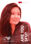 FRASER INTERNATIONAL COLLEGE STUDENT GUIDE 2016 ARE YOU SFU? START A JOURNEY, EXPERIENCE LIFE, LEARN WHY STUDY AT FRASER INTERNATIONAL COLLEGE? • Study at a top ranked Canadian university located in Vancouver, one of the world’s most liveable cities. • You will be part of a diverse population with more than 2,000 students from 50 countries. • FIC offers a supportive environment designed to help you adjust to living and studying in Canada. 1 THE DECISION TO STUDY ABROAD MAY BE ONE OF THE MOST IMPORTANT ONES OF YOUR LIFE. CHOOSE WISELY. CONSIDER CANADA AND SIMON FRASER UNIVERSITY FOR AN INCREDIBLE EDUCATION IN ONE OF THE MOST BEAUTIFUL CITIES IN THE WORLD. 2 CONTENTS SIMON FRASER UNIVERSITY Welcome.................................................................. 4 The Fraser International College advantage...... 5 About Simon Fraser University............................ 6 SFU Co-op program............................................... 7 Vancouver and area............................................... 8 Student life on campus......................................... 10 PROGRAMS Programs offered at FIC...................................... 13 University Transfer Programs (UTP)................. 14 FIC Pre-MBA program........................................ 18 SFU program options.......................................... 19 FIC Associate of Arts degree.............................. 20 ESSENTIAL INFORMATION English language requirements......................... 21 Admission requirements.................................... 22 Scholarships and bursaries............................... 26 Academic calendar.............................................. 27 Your investment.................................................... 27 Conditions of enrolment...................................... 28 Important online links......................................... 30 Application form................................................... 31 3 WELCOME Message from the President and Vice-Chancellor of Simon Fraser University I am delighted to welcome FIC students to SFU, and to one of the most beautiful and vibrant cities in the world. SFU opened its doors in 1965 and has since developed into one of Canada’s leading universities, with an international reputation for innovative teaching, cutting-edge research and community engagement. This reputation is built on our strengths in the liberal arts and sciences, as well as our interdisciplinary and professional programs, and draws on our commitment to integrating teaching and research. SFU faculty members are recognized internationally and our students excel in their fields after graduation. This record has been enhanced by our association with FIC and its students. FIC students enjoy the benefits of learning and living on SFU’s campuses. Our student residences, student services, and recreation and athletics facilities and programs provide a welcoming environment, easing your transition to FIC and SFU, and helping to make your time here a fulfilling and enjoyable experience. I invite you to explore Fraser International College at Simon Fraser University. Professor Andrew Petter President and Vice-Chancellor Simon Fraser University 4 FRASER INTERNATIONAL COLLEGE IS YOUR PATHWAY TO A DEGREE FROM SIMON FRASER UNIVERSITY Fraser International College (FIC), in association with SFU, offers international students a unique pathway opportunity to an undergraduate degree at Simon Fraser University. FIC programs are specifically designed to support your transition from high school to university studies and to help you adjust to a new culture and country. You will receive extensive learning and personal support as you begin your degree program, as well as enjoy the benefits of the facilities and recreation opportunities on the SFU campus. If your application to FIC is successful, you will receive a combined Letter of Offer for your program at FIC and your subsequent degree at SFU. By completing your FIC program and meeting the conditions specified in your Letter of Offer, you will be eligible to enter second year of the relevant degree program at SFU. As a student at FIC, you will benefit from: • being part of a diverse population of more than 2,000 students from over 50 countries • the chance to graduate with an internationally recognized degree from one of Canada’s top ranking universities • full access to university services and eligibility to apply for on-campus accommodation at SFU • university-designed curriculum that helps international students adapt to the Canadian education system • a supportive study environment with small classes • free tutorial classes and regular one-on-one meetings with your instructors • access to SFU’s world-class libraries, modern computer laboratories and excellent sporting facilities • specialized preparatory programs designed to help you successfully transition to your studies in Canada. To learn more about SFU or FIC, visit sfu.ca or fraseric.ca. 5 LAUNCH YOUR GLOBAL CAREER AT SIMON FRASER UNIVERSITY With innovative programs, a focus on academic excellence and a vibrant campus community, it’s no wonder SFU is consistently ranked one of Canada’s top universities. At SFU you’ll be taught by world-renowned educators alongside other talented students who share your passion for learning. SFU has over 25,000 students across its campuses in Burnaby, Vancouver and Surrey. The university offers over 100 distinct programs across eight faculties — you can even combine programs to create a degree that reflects your unique interests. SFU has some of the country’s best varsity sports teams, and is the only Canadian university to compete against United States institutions in the National Collegiate Athletic Association (NCAA). SIMON FRASER UNIVERSITY RANKINGS •#1 Comprehensive University in Canada, Maclean’s (2016) •Top 10 in Canada, Maclean’s (2016) •Top 225 in the World, QS World University Rankings (20