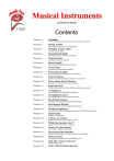 Musical Instruments by Beatrice Wilder © 2002 Contents Worksheet 1 Worksheet 2 Families Draw a line between the instrument and its name and family String Family Becoming familiar with the string family Worksheet 3 Multiple Choice Quiz Tick the correct family Worksheet 4 Woodwind Family Becoming familiar with the woodwinds Worksheet 5 Word Search Instruments and their families Worksheet 6 Brass Family Becoming familiar with the brass family Worksheet 7 Crossword All names of orchestral instruments Worksheet 8 Percussion Family Becoming familiar with the percussion family Worksheet 9 The Orchestra Colour in sections showing the layout of an orchestra Worksheet 10 Facts about the Orchestra Finding out a bit more about the orchestra Worksheet 11 Odd One Out Circle the instrument that does not belong to the same family Worksheet 12 Aerophones Learning about and identifying aerophones Worksheet 13 Scrambled Letters Unscramble names of orchestral instruments Worksheet 14 Reed Instruments Learning about and identifying reed instruments Worksheet 15 Instrument Details Names and details of four orchestral instruments Worksheet 16 Membranophones Learning about and identifying instruments with vibrating membranes Worksheet 17 Quick Quiz Details of instruments Worksheet 18 Choose an Owner Placing instruments with suitable owners Worksheet 19 What Instrument Am I? Identify instruments from clues given. Worksheet 20 Name the Instrument Draw lines to identify instruments Worksheet 21 Percussion Instruments Information and names of various percussion instruments Worksheet 22 Word Search Identifying instruments from descriptions given Worksheet 23 Tick the Correct Answers Multiple choice quiz. Worksheet 24 List of Musical Instruments Musical Instruments Name ......................................... Worksheet 1 © 2002 Families 1) Draw a line between each instrument and its name. 2) Draw a line between each instrument and its orchestral family. String Family Timpani Brass Family Trumpet Percussion Family Violin Woodwind Family Trombone Clarinet 3. Write the name of another instrument in the STRING FAMILY .......................................... 4. Write the name of another instrument in the BRASS FAMILY ........................................... 5. Write the name of another instrument in the PERCUSSION FAMILY ................................ 6. Write the name of another instrument in the WOODWIND FAMILY .................................. 7. To which family does the XYLOPHONE belong? ............................................................... Musical Instruments Name ......................................... Worksheet 2 © 2002 String Family Instruments whose sounds are produced by stretched strings belong to the string family. Which of the following instruments are not string instruments. Cross them out. Viola Timpani Harp Double bass Electric bass Harmonica Shekeree Violin Cello Banjo Piano Zither Guitar Mandolin Kit Make your own list of string instruments. Do some research to see if you can find some which are not on the above list. .................................................... .................................................... .................................................... .................................................... .................................................... .................................................... .................................................... .................................................... .................................................... .................................................... .................................................... .................................................... Which string instruments would you usually find in a symphony orchestra? Musical Instruments Name ......................................... Worksheet 3 © 2002 Multiple Choice (Tick the correct family) Oboe String Brass Woodwind Cymbals French horn Cor Anglais Viola Tuba Xylophone Double bass String Brass Woodwind Bass drum String Brass Woodwind Percussion Percussion Percussion String Brass String Brass String Brass Bassoon Trumpet Woodwind Woodwind Woodwind Percussion Percussion Percussion String Brass String Brass String Brass Cello Clarinet Woodwind Woodwind Woodwind Percussion Percussion Percussion String Brass String Brass String Brass Trombone Saxophone Woodwind Woodwind Woodwind Percussion Percussion Percussion String Brass String Brass String Brass Castanets Euphonium Woodwind Woodwind Woodwind Percussion Percussion Percussion String Brass String Brass String Brass Violin Snare drum Woodwind Woodwind Percussion Percussion Percussion String Brass String Brass String Brass Flute Gong Woodwind Woodwind Woodwind Woodwind Percussion Percussion Percussion Musical Instruments Name ......................................... Worksheet 4 © 2002 Woodwind Family Instruments which are blown into (wind) and which were originally made of wood. They include the families of the Flute, Oboe, Clarinet and Bassoon. Which of the following instruments are not woodwind instruments. Cross them out. Recorder Flute Oboe Guiro Bassoon Sansa Cor anglais Bagpipes Piccolo Saxophone Lute Harmonica Krummhorn Jew’s harp Clarinet Make your own list of woodwind instruments. Do some research to see if you can find some which are not on the above list. .................................................... .................................................... .................................................... .................................................... .................................................... .................................................... .................................................... .................................................... .................................................... .................................................... .................................................... .............................................