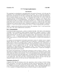 Chemistry 472 Fall 2000 UV-Vis Spectrophotometry Introduction This experiment is an introduction to spectrophotometry and consists of four parts. In the first part, the components of two, disassembled spectrophotometers are examined. One is a single beam instrument, a Bausch and Lomb Spectronic 20; the other is a Beckman DB: a double-beam-in-time spectrophotometer. Next, the spectral response curve of a Spec 20 is determined and the Spec 20 is used to collect the absorption spectrum of chromium(III) nitrate. For comparison, this spectrum is also collected with a double-beam-in-time UV-Vis spectrophotometer. In the third part, a calibration curve is made and the concentration of Cr(III) in an unknown is determined using Beer’s Law. Finally, the effect of diffraction grating blaze density and slit width on the resolution of a spectrum is explored using Oriel optical components and a spectral calibration lamp. Background information for this experiment is contained in Chapters 7, 13, and 14 in Principles of Instrumental Analysis 5th Edition by Skoog, Holler, and Neiman. NOTE: A separate station has been set up for each part of the experiment. Parts 1, 2, and 4 may be done in any order. Part 2 must completed before starting Part 3. Part 1. Instrumentation In molecular absorption spectroscopy, a solution is irradiated with light. If the light is of the appropriate wavelength, it can be absorbed by analyte molecules causing them to undergo a transition to a higher energy state. The amount of radiation absorbed by the sample is determined by measuring the intensity of the beam before (Po) and after (P) it passes through the sample. The transmittance T of the solution is defined as T = P/Po. In spectrophotometry, transmittance is actually a measurement of the ratio of a sample beam intensity to a reference beam intensity. The absorbance A is related to the transmittance by A = -log T. At a minimum, the instrumentation for absorption spectrometry consists of a radiation source (a tungsten filament lamp for the visible or a deuterium lamp for the ultraviolet), a monochromator (a prism or grating system to isolate one wavelength region), a sample cell, a photodetector, and a readout device, as shown in Figure 13-12(a) in Skoog, Holler & Neiman. The monochromator consists of an entrance slit, some optics, a prism or grating, and an exit slit. With this single-beam configuration, the percent transmittance of a blank (reference sample) is adjusted to 100%T. The reference cell in then manually replaced with the sample cell and the %T is indicated on the readout device. Anytime the wavelength is changed, this procedure must be repeated. Most modern spectrophotometers are double-beam instruments as shown in Figure 13-12(b & c). These instruments are configured to allow the automatic and simultaneous (or near simultaneous) measurement of the sample and reference beam intensities. This can be accomplished using a beam splitter to divide the beam into the reference beam and sample beam. In a double-beam-in-time spectrophotometer (Figure 13-12(c)), the beams pass through a modulator which allows the detector to see either the reference beam or the sample beam. Since the source beam is directed through a reference cell part of the time and through the sample cell the rest of the time, the term "double-beam-in-time" is used. Examination of the Spec 20 A diagram of the Spec 20 instrument used in this experiment is shown in Figure 13-17(b) in Skoog, Holler, and Neiman. For this part of the experiment, the Spec 20 has been disassembled. Make sure that it is unplugged, lay it on its back, and open the trap door on the bottom. Opening the door exposes the source, filter mount, phototube, and bottom of the sample chamber. Observe the lamp but do not remove it. It is a common 6-volt tungsten filament lamp very similar in design to an ordinary light bulb. 1 Examine a phototube, noting the anode and cathode. The standard Spec 20 phototube is a type S-4 cesium-antimony tube, which is most sensitive to light in the blue region. When working with the Spec 20 in the red region, above 625 nanometers, a red sensitive phototube is used instead. Examine the curved arm of metal at the bottom of the sample chamber. This is the occluder, which, mounted on a pivot, opens and closes the shutter gate which allows light into the sample. Move the occluder by hand and note its action. It is automatically pushed aside by the cuvette when a reading is taken. When your investigation of this area is complete, close and secure the trap door, and set the instrument upright again. The instrument is divided into two sections. The rear contains the electrical components. These include the power supply, the amplifier which strengthens signals coming from the phototube, and the readout device which in this case is a voltmeter calibrated in both absorbance and percent transmittance units. Continuous light over the entire visible spectrum emanates from the tungsten lamp. This light is collected by the field lens and collimated (made parallel) by objective lens. Identify these components and trace out the light path. The white light next falls upon the diffraction grating, which disperses it horizontally into the familiar sequence of spectral colors. To perform this task, the grating is ruled at 600 lines per millimeter. The dispersed light next passes through the light control, the occluder and the exit slit. Only when a cuvette is inserted into the sample chamber is the occluder moved out of the way. The width of the exit slit and the spread or dispersion of the light from the diffraction grating together determine the spectral bandwidth, which in a Spec 20 is 20 nm. Thus, for example, if the instrument is set at 600 nm, light having wavelengths in the range 590 to 610 nm will be passed to the sample and phototube. Only that portion of the light dispersed by the grating which falls on the exit slit is passed to the sample. Selection of the desir
