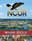 APRIL 16 - 18 CHENEY & SPOKANE, WASHINGTON EASTERN WASHINGTON UNIVERSITY -1- -2- Table of Contents Table of Contents Schedule of Events..................................................4-5 Open Houses............................................................ 20 Welcome Letters Student Interest Sessions.....................................20-21 EWU President.................................................... 6 Sessions Vice Provost of Undergraduate........................... 7 Studies and Student Success.................................. Faculty – Administrator Network.................22-23 (FAN) Sessions NCUR 2015 Chief..................................................... 8 Graduate and Professional............................24-25 School Fair Visual Arts Exhibits........................................... 26 Performing Arts Sessions.............................27-28 Oral Sessions..............................................29-108 Poster Sessions.........................................109-153 Poster Session Map......................................... 154 CUR President/Exec Officer............................... 9 NCUR Oversight Committee.............................. 9 Acknowledgements.............................................10-11 Plenary Speakers...................................................... 12 General Information................................................. 13 Sustainability......................................................14-15 Index Transportation.......................................................... 16 Activities/Excursions............................................... 17 CUR-Goldwater Scholars........................................ 18 Faculty Mentor Award By Institute...............................................155-159 By Presenter.............................................160-175 By Subject................................................176-177 Campus Map............................................. Back Cover NCUR Proceedings.................................................. 19 -3- Schedule of Events Wednesday, April 15, 2015 12:00pm - 8:00pm Registration - Spokane International Airport Thursday, April 16, 2015 7:00am - 4:00pm 7:00am - 9:30am 9:15am - 10:45am Thursday April 16, 2015 Registration - Sports Center PHASE Breakfast - Jim Thorpe Field House Opening & Plenary 1 – Patrick Comb Special Events Pavilion Reese 11:00am - 5:00pm 11:00am - 2:00pm 11:30am - 12:20pm 12:00pm - 1:00pm 12:30pm - 1:20pm 3:00pm – 4:00pm 4:00pm - 5:30pm Gallery of Art Exhibition – Art 3:40pm - 5:00pm Oral Session 4 - Classrooms Poster Session 4 - URC Visual/Performing Arts - Fine Arts Murdock Town Hall Meeting – 1:30pm – 2:20pm Court 11:00am - 12:20pm Oral Session 2 - Classrooms Poster Session 2 - URC Visual/Performing Arts - Fine Arts Student Interest Sessions Oral Session 3 - Classrooms Poster Session 3 - URC Visual/Performing Arts - Fine Arts CUR DIV & Other Open Houses Student Interest Sessions - 12:30pm - 1:50pm 2:05pm - 3:25pm Oral Session 1 - Classrooms Poster Session 1- URC Visual/Performing Arts - Fine Arts Graduate & Professional Fair - 4:30pm - 6:00pm URC Lunch - Jim Thorpe Field House Student Interest Sessions Classrooms FAN Session - Classrooms Student Interest Sessions Classrooms 5:15pm - 6:45pm -4- Classrooms Building Tawanka Common 215 Schedule of Events Friday, April 17, 2015 Friday, April 17, 2015 7:00am - 4:00pm 7:00am - 9:30am 8:00am - 9:00am 9:15am - 10:45am Registration - Sports Center PHASE Breakfast - Jim Thorpe Field House FAN Session - Classrooms Plenary 2 – Carl E. McNair 3:00pm – 5:00pm 4:30pm - 6:00pm 3:40pm - 5:00pm Special Events Pavilion Reese Court 11:00am - 12:20pm 11:00am - 5:00pm 11:00am - 2:00pm 11:30am - 12:30pm 12:00pm - 1:00pm 12:30pm - 1:20pm 12:30pm - 1:50pm 2:00pm – 3:00pm 2:05pm - 3:25pm 7:00pm - 10:00pm Oral Session 5- Classrooms Poster Session 5 - URC Visual/Performing Arts - Fine Arts Graduate & Professional Fair - URC Lunch - Jim Thorpe Field House Student Interest Sessions - Classrooms FAN Session - Classrooms Student Interest Sessions - Classrooms Oral Session 6 - Classrooms Poster Session 6 - URC Visual/Performing Arts - Fine Arts McNair Graduate Student Panel – McNair Reception - Showalter Rotunda NOC Reception - Hargreaves Hall 201 Oral Session 8 - Classrooms Poster Session 8 - URC Visual/Performing Arts - Fine Arts Downtown Spokane Scavenger Hunt Saturday, April 18, 2015 7:00am - 9:00am 7:00am - 9:30am 7:00am - 9:00 am 8:30am - 9:50am 10:00am - 11:15am Showalter Auditorium Registration - Sports Center PHASE Breakfast - Jim Thorpe Field House Luggage drop off and storage PHASE Oral Session 9 - Classrooms Poster Session 9 - URC Visual/Performing Arts - Fine Arts Closing & Plenary 3 - Vanessa Gonzalez-Perez - Showalter Hall Auditorium Oral Session 7 - Classrooms Poster Session 7 - URC Visual/Performing Arts - Fine Arts 11:00am – 1:00pm 11:45am - 6:00pm Lunch - Jim Thorpe Field House Excursions We congratulate all 2015 NCUR participants. Your curiosity, determination and hard-work inspire us. Through a unique public-private partnership, Washington is helping to grow a skilled, homegrown workforce that will foster innovation, drive our economy and fuel a brighter future. • • • • Over 4,400 scholarships have been awarded. Over 900 scholars have graduated to date. Nearly 68% of graduates are employed in their field or seeking an advanced degree in a high-demand field. Of graduates employed in their field of study, nearly 90% remained in Washington state. The notion of innovation and the ability to find solutions to problems that people in my community face inspire me. – WSOS Scholar Supporting the next generation of STEM and health care leaders. Learn more at waopportunityscholarship.org. -5- I’m delighted to welcome you to our beautiful Eastern Washington University campus and to the 29th National Conference on Undergraduate Research. During your stay at Eastern Washington University, y