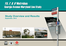 Y5, 7, 8, 9 Metrobus Georgia Avenue-Maryland Line Study Study Overview and Results September, 2012 Y5, 7, 8, 9 Metrobus Georgia Avenue– Maryland Line Study Maryland Department of Transportation Study Purpose • The purpose of the study is to complete a comprehensive analysis of the Georgia Avenue – Maryland Line in order to improve performance of transit service along the line and develop an improvement strategy that includes service, operations, facilities, and customer information enhancements Y5, 7, 8, 9 Metrobus Georgia Avenue– Maryland Line Study 2 Project Scope of Work • Transit Service Assessment – Developed a detailed assessment and “snapshot” of the Georgia Avenue – Maryland Line • Assessment included overall service characteristics, ridership and productivity, boardings and alightings, passenger loads, bus stop spacing, on-time performance, and driver interviews • Traffic Operations Assessment – Identified the full range of traffic issues on the Georgia Avenue – Maryland Line • Traffic signals and other traffic control devices • Traffic enforcement • Stop locations and stop interaction with traffic Y5, 7, 8, 9 Metrobus Georgia Avenue– Maryland Line Study 3 Project Scope of Work • Public Outreach – Rider survey to gauge issues and needs – Two public meetings • Meeting one – issues identification and passenger needs • Meeting two – public feedback on preliminary recommendations – Outreach results were key input into the study process and recommendations • Agency Coordination – Ongoing coordination with key stakeholders to ensure needs were incorporated into the study process Y5, 7, 8, 9 Metrobus Georgia Avenue– Maryland Line Study 4 Project Scope of Work • Recommendations – Completed in two steps • Preliminary recommendations – relied on inputs from all previous steps • Final – Incorporate public and agency stakeholder inputs – Areas covered by recommendations • • • • MetroExtra service between ICC park and ride and Wheaton Passenger facility improvements Schedule adjustments to reflect actual run times Operational modifications Y5, 7, 8, 9 Metrobus Georgia Avenue– Maryland Line Study 5 Line Summary • Line Description – The Georgia Avenue – Maryland Line operates completely within Montgomery County and is comprised of four route patterns: the Y5, Y7, Y8, Y9. Each pattern runs between Montgomery General Hospital in Olney and Silver Spring via Georgia Avenue, with differences between patterns based on service to destinations off of Georgia Avenue • Y5 – Montgomery General Hospital to Silver Spring via the ICC Park and Ride and Leisure World • Y7 – Montgomery General Hospital to Silver Spring via the ICC Park and Ride • Y8 – Montgomery General Hospital to Silver Spring via Leisure World • Y9 - Montgomery General Hospital to Silver Spring direct Y5, 7, 8, 9 Metrobus Georgia Avenue– Maryland Line Study 6 Line Summary • Service Characteristics – Days and hours of service (start of first trip of day to start of last trip of day) Day of Week Hours of Service Weekday 4:29 AM – 12:29 AM Saturday 4:47 AM – 12:30 AM Sunday 5:00 AM – 11:52 PM Y5, 7, 8, 9 Metrobus Georgia Avenue– Maryland Line Study 7 Line Summary • Weekday Ridership and Productivity Productivity Measure Value Minimum WMATA Standard Daily ridership 7,086 >358 Cost recovery from fares 39.6% >14.96% Boardings per trip 54.1 >9.49 Subsidy per passenger $1.50 <$5.96 Boardings per revenue mile 4.2 >1.16 Y5, 7, 8, 9 Metrobus Georgia Avenue– Maryland Line Study 8 Line Map Y5, 7, 8, 9 Metrobus Georgia Avenue– Maryland Line Study 9 Study Findings • Insufficient Run Time – Review of NextBus data indicate significant incidences of insufficient scheduled run times when compared to actual run times. This leads to significant on-time performance and reliability issues on the line. • Inconvenient Service Frequency – Peak period service frequencies are every 15 minutes. This provides sufficient capacity because larger capacity articulated buses are deployed on the line, but 15 minutes on a high ridership line such as the Y Line is inadequate from a passenger convenience perspective. • Operational Issues – There are a number of components of the line’s overall operations that create passenger inconvenience and slower trip time. Y5, 7, 8, 9 Metrobus Georgia Avenue– Maryland Line Study 10 Service Recommendations Recommendation #1 • Recommendation – Add time to current scheduled run time to address on-time and reliability issues on the line • WMATA Schedules Department to evaluate actual run times in more detail • For costing purposes, utilized a 10% addition to current scheduled run times • Recommendation Purpose – Address significant reliability and on-time performance issues on the line • Estimated Annual Operating Cost Associated with Change – $474,000 Y5, 7, 8, 9 Metrobus Georgia Avenue– Maryland Line Study 11 Service Recommendations Recommendation #2 • Recommendation – Provide more frequent headways on most heavily used portion of the line by running two trip patterns • Short term implementation time frame (1-2 years) – One trip pattern making all stops between Olney and Silver Spring – remains at current 15 minute headway – Second trip pattern is a limited stop MetroExtra service between ICC Park and Ride lot and Wheaton Metrorail station running every 15 minutes – four hours of service – 6:00 AM to 8:00 AM and 4:30 PM to 6:30 PM • Mid term implementation time frame (3-4 years) – One trip pattern making all stops between Olney and Silver Spring – remains at current 15 minute headway – Second trip pattern is a limited stop MetroExtra service between ICC Park and Ride lot and Wheaton Metrorail station running every 15 minutes – six hours of service – 6:00 AM to 9:00 AM and 3:30 PM to 6:30 PM Y5, 7, 8, 9 Metrobus Georgia Avenue– Maryland Line Study 12 Service Reco