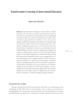 Transformative Learning in Intercultural Education Transformative Learning in Intercultural Education Adair Linn NAGATA Abstract: Transformative learning is a major theory of adult education that can help us consider ways in which the study of intercultural communication is particularly suited to stimulating personal change. Intercultural communication studies offer continuous opportunities for students to learn new ways of making meaning, both subjective and objective, and transforming what Mezirow (1991) terms their meaning perspectives. The holistic pedagogical approach to intercultural education described here emphasizes reflection and self-reflexivity and bodymindfulness in order to promote integrative development of students as whole people, not just to focus on their intellectural growth. It is intended to help them to cultivate both their rational and extrarational capabilities and to exercise appropriate selfcare during the process of writing their theses. If they can learn to welcome confusion as a transitory state between prior convictions and new meaning perspectives, they are more likely to experience transformative learning and new ways of being. As the reflective passages written by students in final papers suggest, they have responded to this holistic educational opportunity with enhanced self-awareness, new skills, and the recognition that they need to make the intention to continue learning throughout their lives. Putting Ourselves on Edge Writing a dissertation has been provocatively described as a liminal journey of the self (Deegan & Hill, 1991). The use of liminal here refers to desires or needs that are smoldering below the threshold of awareness and may be barely perceptible to us. Deegan and Hill describe the liminal self as transitional. Graduate students who had been out of 39 ICR 40 Adair Linn NAGATA school for some time may find writing master’s theses to be similarly challenging to their sense of self although they may not be fully aware of their aspirations or the implications of them, at least not at the beginning of the process. Adults who continue their education in degree programs are typically seeking change, but some of their new experiences may be unexpected, especially when studying intercultural communication. As scholar-practitioners, they will need to move back and forth between theory and practice as they learn and apply new concepts and skills in their work and their lives (Bentz & Shapiro, 1998; Schon, 1983). Most returning students desire to be able to work in new ways, perhaps in different types of work or at a higher level of proficiency and complexity; but they may not realize that the changes they will experience might include major shifts in worldview and ways of being. For example, the Developmental Model of Intercultural Sensitivity created by communication scholar Milton Bennett (1993) postulates an increase in intercultural sensitivity to a qualitatively different level when moving across the paradigmatic divide that separates an ethnocentric outlook from an ethnorelative type of consciousness. Although returning students may enroll in programs expecting to gain new knowledge and skills, they may also encounter other changes that they did not anticipate, particularly in their sense of self. Typically they are confronted with the reality of being a student after what may have been a considerable absence from the classroom: having assignments and deadlines in addition to an already full work and family life, needing to learn new technologies of information delivery and knowledge management, and having to formulate a research project requiring personal choice of topic and selection from an array of unfamiliar research methodologies. All this newness is likely to create uncertainty and confusion, which are particularly stressful and unwelcome when we are being graded. If they are students proceeding on directly from undergraduate studies, they, too, might find some of these expectations challenging and may also feel overwhelmed by being in a classroom with people with so much life experience. The requirements of a demanding degree program may seem to exceed the capability that graduate students feel they have and might contribute to a nagging sense of inadequacy and self-doubt. Learning to manage this feeling of disequilibrium is important. Although this feeling of being stretched beyond our capacity may feel uncomfortable and sometimes unsettling, it may be the most valuable part of our learning. It may ultimately result in expanded capabilities that can help us reinvent ourselves for what Bliss (2004) terms our Third Age and the years afterwards. Inspired by the French term “Troisième Âge,” ThirdAge refers to the concept of lifelong learning, self-development and fulfillment, and the period of life following young adulthood, yet preceding “ seniorhood ” and retirement. A time of life characterized by vital living, freedom, personal growth and enrichment. (www. thirdage.com/about/.2005, January 10) Transformative Learning in Intercultural Education The aspirations encompassed in this definition also seem to characterize an increasing number of Japanese adults who are enrolling in adult degree programs seeking a catalyst for change. Studying intercultural communication exposes us to different ways of thinking, feeling, and doing. Our usual ways of being are likely to be called into question as we engage with people who speak different languages and have different ways of life. Our growing realization as we study other cultures that there is more than one valid and acceptable way to be human may provoke new and unsettling questions and open possibilities we never considered. For example, in “Reframing Conflict: Intercultural Conflict as Potential Transformation, ” Beth Fisher-Yoshida (2005) explains how intercultural conflict can provide a constructive opportunity to engage with people we find different from ourselves. The