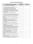 Internal Control Questionnaire ANSWER CASH RECEIPTS/SALE QUESTIONS: Yes 1. Is there a designated cash receipt custodian? 2. Are all receipts recorded on pre-numbered cash receipts tickets, including those received in check form? 3. Are receipts received in check and money order form immediately stamped with a restrictive endorsement? 4. Are all cash receipts counted by the cashier and recorded in a cash receipts journal or the general ledger on a daily basis? 5. Are cash receipt journal entries segregated by type of revenue and fund account? 6. Are undeposited cash receipts adequately secured? 7. Does the cashier assume full responsibility for the cash receipts from the time they are received until deposited at the bank? 8. Are cash receipts deposited intact on at least a weekly/monthly basis? 9. Does someone independent of the cashier deposit the cash receipts? 10. Are cash receipt tickets reconciled to actual undeposited cash before deposit? 11. Does depositor reconcile cash receipt tickets to the cash receipts journal or general ledger before deposit? 12. Does depositor account for all pre-numbered receipt tickets before deposit? 13. Is the reconciliation documented and exceptions noted? 14. Does the cashier note the dates, amounts and persons making the deposits? 15. Are deposits promptly recorded in the bank account check register and the balance recalculated? 16. If cash is not deposited on a daily basis, are the cash receipts deposited on the same day they are received from the cashier? 17. Does someone independent of the cashier and depositor reconcile the bank statement credits with the cash receipts journal? 18. Does the reconciler compare, on a test basis, the recorded deposits in the cash receipts journal to the bank statement credits for timeliness of deposit? 19. Does the reconciler investigate and document exceptions? 20. Are the prenumbered cash receipt tickets filed for future review? 21. Are sales on account recorded on a standard prenumbered form? 22. Are sales on account recorded in the general ledger or sales journal on a daily basis? 23. Are the cash receipt records filed and maintained in accordance with the records management policies and procedures? 1 No N/A NOTES CASH DISBURSMENTS/PURCHASING QUESTIONS: 1. Are all payments made by check except those by petty cash? 2. Does the chapter discourage checks drawn to “cash” or to “bearer”? 3. Are authorized signers limited to elected chapter officials and the chapter manager? 4. Are demand check requests documented on a standard form? 5. Does the requestor and the person approving the request sign the form? 6. Are quotes, proposals, contracts or other price information submitted with the request? 7. Are requests reviewed for budget conformity/approval? 8. Are requests reviewed for allowability based on applicable funding guidelines for restricted funds? 9. Are requests reviewed against chapter policies for propriety? Against Navajo Nation laws and regulations for compliance? 10. Are fund codes and account numbers documented on the request form? 11. Are checks completely filled out before being presented for review and signature? 12. Are two signatures obtained for all checks? 13. Does the chapter manager or his/her designee co-sign all checks? 14. Do policies prohibit the signing or countersigning of checks in advance or in blank? 15. Are voucher packages or other supporting documents presented with the checks submitted for signature? 16. Do the authorized officials thoroughly review the documents before signing checks? 17. Is a suspense file maintained for travel advances? 18. Is the suspense file periodically reviewed and followed up on? 19. Are payments approved only on original invoices or supporting documents? 20. Is there evidence in the voucher package of when and who received the goods? 21. Are invoices and supporting documents defaced after payment? 22. Are voided and spoiled checks properly defaced and retained for future review? 23. Are all paid invoices and supporting documents securely filed at the chapter and in an organized manner? 24. Is there adequate physical control over unused checks (checkbook)? 25. Does a policy exist that prohibits the use of chapter funds for personal loans, stipend advances or per capita distributions? 26. Has the chapter established policies and procedures describing the voucher payment process and standards for travel per diem rates, stipends, bidding, awards for donations, financial assistance, grants, etc? 27. Do these policies and procedures comply with applicable Navajo Nation laws and regulations? 28. Are the cash disbursement records filed and maintained in accordance with the records management policies and procedures? 2 ANSWER Yes No N/A NOTES BANK ACCOUNTS/RECONCILIATIONS QUESTIONS: 1. Is each bank account in the name of the chapter? 2. Do the bank records reflect the chapter’s mailing address? 3. Is there a permanent file for bank account authorization documents? 4. Is the bank signature card updated immediately upon a change in the authorized signatories (e.g., chapter manager and officials)? 5. Is the chapter’s assigned employer identification number reflected on all bank records? 6. Are monthly bank reconciliations performed for all bank accounts? 7. Is the reconciler independent of the check signers? (If not, answer questions 8-10. If so, go to question 11). 8. If not, is at least the custodianship of records segregated from the check signers? 9. Does the records custodian have the responsibility to ensure all checks have a completed voucher package? 10. Does the records custodian document and independently report exceptions? 11. If the reconciliation is independent, does the reconciler directly receive the unopened bank statements? 12. Do bank reconciliations include an accounting of all check numbers, including voided and spoiled check numbers? 13. Do bank reconciliations include a comparison of checks with the supporting documentation? 14. Are exce