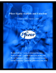 Pfizer Equity Analysis and Valuation Valuation Date: April 1, 2005 Rusty Klein – rusty.d.klein@ttu.edu Justin Kime – justin.kime@us.army.mil Rene Jimenez – lucio.r.jimenez@ttu.edu Todd Johnson – todd.m.johnson@ttu.edu 0 Pfizer Equity Analysis & Valuation Table of Contents Executive Summary……………………….….….2 Business and Industry Analysis…….…………..7 Industry Overview………………………...7 Five Forces Model………………….……..8 Key Success Factors……………………..10 Firm & Industry Conclusions……………11 Accounting Analysis……………………………13 Key Accounting Policies………………...13 Degree of Flexibility...........................…...16 Actual Accounting Strategy……………...17 Quality of Disclosure…………………….19 Ratio Analysis & Forecast Financials…………25 Financial Ratio Analysis…………………25 Financial Statement Forecasts……………37 Valuation Analysis……………………………...39 Cost of Capital…………………………...39 Intrinsic Valuation Methods……………..41 Method of Comparables…………………46 Appendix………………………………………..49 References………………………………………71 1 Mo Money Rusty Klein Justin Kime Rene Jimenez Todd Johnson Pfizer, Inc. Investment Recommendation PFE - NYSE (4/13/2005) 52 week price range Revenue(2004 Market Capitalization Shares Outstanding Dividend Yield 3-Month Avg. Daily Trading Volume Percent Institutional Ownership Book Value Per Share (mrq) ROE(2004) ROA(2004) Est. 5 year EPS growth rate Cost of Capital Estimations Under-Valued Date of Valuation EPS Forecast FYE 12/31 EPS $27.28 $21.99 - 37.90 $52.5B $203.53B 2.80% 28.65M 65% Actual Current Price (4/1/2005) 17% 9% 12% 5-Year Regression 3-Year Regression 2-Year Regression Published 0.132 0.234 0.061 Kd WACC(bt) 3.45% 4.07% Industry Pfizer Average 31.30 20.90 16.40 20.23 1.08 1.82 2.66 3.85 4.00 0.57 Valuation Estimates $9.37 R Squared 2004(A) 2005(E) 2006(E) 2007(E) $1.87 $1.70 $1.93 $2.09 Valuation Ratio Comparison Trailing P/E Forward P/E Forward PEG M/B D/E 7.46B 4/1/2005 Beta 0.458 0.595 0.436 0.393 Ratio Based Valuations Trailing P/E Ke Forward P/E Forward PEG 4.58% D/E 4.99% M/B 4.52% Ford Epic Valuation Intrinsic Valuations Discounted Dividends Free Cash Flows Residual Income Abnormal Earnings Growth Long-Run Residual Income Perpetuity $ 26.15 $ $ $ $ $ $ 39.08 37.84 21.84 44.98 35.58 62.16 $ $ $ $ $ 35.58 58.27 55.52 55.52 99.42 2 Executive Summary Recommendation – Undervalued Security A fter thorough forecasting and evaluations, we have recommended to investors to buy market shares of Pfizer due to their continual growth of price share with no signs of decreasing. With the recent acquisition of Pharmacia, Pfizer has continued to maintain their dominant position in the pharmaceutical industry. Even though many companies are in the pharmaceutical industry, competition is limited to the handful of major drug manufacturers. Pfizer has now grown to be the top pharmaceutical company in the United States and one of the top 10 in the world with $52.5 billion in revenues in 2004. Industry Demand Drivers With new drug innovations serving as the driving force in the industry, companies are forced to allocate larger amounts of capital each year to research and development. In 2004 Pfizer invested $7.7 billion on research and development which was almost twice the amount of its nearest competitor, Novartis. Realizing this necessity of discovering the next “big drug,” Pfizer plans to further increase R&D spending to over $8 billion in 2005. One of the largest threats to any drug company, including Pfizer, is the competition imposed by generic drug companies after patents have expired on highly profitable prescription drugs, such as Viagra. 3 Pfizer’s Industry Standing Pfizer’s main competitors are Abbot Laboratories, Bristol-Meyers Squibb, Novartis, and Merck. Pfizer expects to sustain long-term growth driven by innovative products, strong research and development pipeline and operating efficiencies. Pfizer has grown to be the industry leader, but doesn’t settle for simply being the best. They are constantly seeking to improve, and making the necessary changes to become more effective, in order to further separate themselves from the competition. For example, Pfizer is targeting $4 billion in total annualized cost savings by 2008, representing the other 12% of their total current cost base. Pfizer continually strives to be the leader in the innovation of new pharmaceutical products, such as the completion of 13 new drug applications resulting in 20 filings with the FDA in the next five years. Margin Expansion In the pharmaceutical industry, mergers and acquisitions are increasing in popularity as a means to capture a greater percentage of the market share. Evidence of this trend is Pfizer’s acquisition of Warner-Lambert in 2001 and Pharmacia in 2003. Another margin expansion method used by our company is competing in more than one market such as: pharmaceuticals, consumer health, and animal health. The use of modern technology, the internet, is yet another way to capture market share. Financials 4 The financials for Pfizer the last few years have fluctuated dramatically, due to the acquisition of Pharmacia, in 2003. This proves to be true in the results of operating income dropping from $9.1 billion in 2002 to $1.6 billion in 2003. Pfizer had shown a relatively constant growth since initially going public until the Pharmacia acquisition, the post acquisition years and the forecasts show continual growth in years to come. The forecasted earning per share also confirms our expectations of Pfizer’s future growth. Valuations Based upon our valuations, Pfizer’s stock price is currently undervalued. Using the three intrinsic valuation methods that we feel most confident in; free cash flows, residu