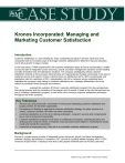 Kronos Incorporated: Managing and Marketing Customer Satisfaction Introduction Customer satisfaction is a core strategy for many companies providing IT services. More and more, companies look for innovative ways to leverage customer satisfaction to determine resource allocation and to drive growth in today’s market. In this case study, ITSMA examines the role customer satisfaction plays at Kronos Incorporated, a singlesource provider of integrated human resources, payroll, and labor management solutions and the leading provider of frontline time and attendance solutions. The company strategically utilizes customer satisfaction findings to drive process improvements and organizational changes, particularly in the area of customer service and support. Kronos’ intensive focus on satisfaction led to a 93% overall loyalty and satisfaction rate for customers in 2001. Appropriately, the firm’s customer service marketing team highlights the company’s high ratings in customer satisfaction as a strategic differentiator and a key reason to purchase Kronos products and solutions. The Case Study explores the evolution of Kronos’ customer satisfaction program from two perspectives: the internal process and the marketing of the program and its results. It looks at the role that services can play in initiating a satisfaction program, as well as its role in driving a customer satisfaction philosophy throughout the entire company. Key Takeaways Services can and should take “ownership” for driving and developing customer satisfaction and loyalty priorities for the entire organization. Developing and leading an aggressive customer satisfaction strategy can place services in a central, customer-oriented role within the entire corporation. Customer satisfaction is not an all-or-nothing proposition. Long-term success and companywide buy-in can be achieved incrementally. Customer satisfaction programs must focus on building the processes, collecting the data, and analyzing and using the results. Companies must also place equal weight on marketing the results inside and outside the corporation. Incentives for employees play a key role in a successful customer satisfaction program. Background Kronos is a single-source provider of integrated human resources, payroll, and labor management software, devices, and solutions. Founded in 1977, Kronos is a publicly traded company with FY 2001 revenues of $293 million. It employs more than 2,000 people worldwide and has 40,000 customers. ITSMA Case Studies provide brief analyses of a top performing strategy or initiative in IT services marketing or sales. The information in this case study is believed to be reliable but cannot be guaranteed to be correct or complete. The analysis and commentary are the opinions of the author. This profile is the property of ITSMA. Reproduction or disclosure in whole or in part to other parties shall be made only upon the express written consent of ITSMA. CS0003 © August 2002 ITSMA—Reproduction Prohibited Case Study Kronos’ products and solutions help organizations align their people, processes, and technology to improve individual productivity and boost overall business performance. Its Frontline Labor Management solutions lead the market in the collection of labor-related data from every employee in an organization via the Web, telephone, desktop, personal digital assistant (PDA) devices, or traditional data collection terminals. Kronos’ Worldwide Customer Service organization provides a complete suite of services designed to help its customers realize the optimum value of their investment in Kronos products. These services include implementation, education, consulting, and ongoing maintenance services delivered in person or electronically as best meets the needs of its customers (Figure 1). Figure 1. Kronos Worldwide Customer Service Organization Joe DeMartino Vice President Worldwide Customer Service Corporate Programs Global Support Field Service International Service Professional Services Customer Service Educational Services Source: Kronos Incorporated, 2002 Services revenue has grown dramatically in recent years and is now a substantial contributor to total corporate revenue (Table 1). Approximately one-third of Kronos’ employees work within its Worldwide Customer Service organization. Table 1. Kronos Product and Services Revenue, 1999–2001 Fiscal ($M) 1999 2000 2001 Products $164.3 $152.1 $153.1 Services $90.0 $117.5 $139.9 Note: The Kronos fiscal year ends September 30. Source: Kronos Incorporated, 2002 Building the Customer Satisfaction Program Phase One: Relationship Surveys Prior to 1995, Kronos relied primarily on dealers with defined geographic territories to serve its customers. A small group of direct sales and services offices supported the dealer network. As the company grew and expanded, it gained an increasing number of national customers. These customers sought uniform services offerings, a single services contract, and consistent, high-quality delivery across the country. The change in market and customer demands drove Kronos to begin to build a direct services delivery capability. Often, the company acquired the assets and staff of existing dealers to build this new model. AUGUST 2002 CS0003 2 © 2002 ITSMA—REPRODUCTION PROHIBITED Case Study With this organizational change, the company began to lay the groundwork for measuring and managing customer satisfaction. In 1995, Kronos hired Omega Management Group to launch a customer satisfaction program for North American customers. The program began with a telephone survey—still in use today—that measures satisfaction with the overall relationship between Kronos and its direct customers. This survey incorporates importance ratings along with the satisfaction data. Omega highlighted gaps between perceived importance and satisfaction, the “Delta Difference,” to help guide Kronos in its efforts toward continuous improvement. The initial su