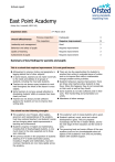 School report East Point Academy Kirkley Run, Lowestoft, NR33 0UQ Inspection dates 3–4 March 2015 Previous inspection: Inadequate 4 This inspection: Requires improvement 3 Leadership and management Good 2 Behaviour and safety of pupils Requires improvement 3 Quality of teaching Requires improvement 3 Achievement of pupils Requires improvement 3 Overall effectiveness Summary of key findings for parents and pupils This is a school that requires improvement. It is not good because Achievement in science, history and geography is lagging behind that of other subjects. In some lessons, teachers do not match work fully to the needs and abilities of all groups of students, including the most able students. Teachers do not always expect students to work hard throughout the whole of the lesson in every subject. Some teachers do not give enough attention to developing students’ ability to express their ideas clearly out loud. Teachers do not always provide sufficient guidance for students on how to improve their writing skills. There are too few opportunities for students to practise their writing in extended pieces of written work or to improve their skills in mathematics through problem-solving activities. Students’ behaviour requires improvement. There are times when teachers allow students to lose focus. When this happens, they do not concentrate on their work as well as they should. Some students do not take sufficient pride in their work. Their handwriting and presentation are untidy. Attendance is below average. The school has the following strengths The academy’s work to keep students safe is good. The academy’s new Principal, other leaders, governors and representatives of the academy Students’ spiritual, moral, social and cultural trust have restored teachers’ and students’ morale development is good. They are prepared and are bringing about rapid improvements in increasingly well for life in modern Britain, and for teaching and achievement. the next stage of their education and the world of Students’ progress in English and mathematics, work. including that of disadvantaged students, is now The governing body and senior officers of the new much closer to the rates expected and to those academy trust are very knowledgeable about all seen nationally. aspects of the academy’s work and are providing The previous decline in the proportion of students leaders with excellent support. attaining 5 A*-C GCSE examination passes, including in English and mathematics, has been reversed. Standards are now rising rapidly across the academy. Inspection report: East Point Academy, 3–4 March 2015 2 of 10 Information about this inspection Inspectors observed students during lessons and looked at the work in their books. Inspectors conducted some of the observations jointly with the Principal or with other members of the leadership team. Inspectors held meetings with the Principal, the Executive Principal, senior and middle leaders, groups of students, members of the governing body and representatives of the Inspiration Trust. There were insufficient responses to Ofsted’s on line survey Parent View to trigger an analysis. Inspectors considered the views expressed in the school’s own recent survey of parents’ opinions. They also considered 54 responses to the staff questionnaire. Inspectors scrutinised the school’s data about students’ attainment, progress, behaviour and attendance. Inspectors also considered documents evaluating the academy’s performance, its plans for improvement, notes about the work of the governing body and policies concerning the arrangements for safeguarding students. Inspection team Godfrey Bancroft, Lead inspector Additional Inspector Sarah Roscoe Additional Inspector Russell Ayling Additional Inspector Mark McGrath Additional Inspector Inspection report: East Point Academy, 3–4 March 2015 3 of 10 Full report In accordance with section 13 (4) of the Education Act 2005, Her Majesty’s Chief Inspector is of the opinion that the school no longer requires special measures. Information about this school This is a smaller than average sized secondary academy. The school became an academy in September 2011. At that time it was sponsored by the Academies Enterprise Trust. Since December 2014 it has been sponsored by the Inspiration Trust. The academy’s last inspection was in March 2013, when it was judged to require special measures. Since then it has received four visits from Her Majesty’s Inspectors to check on its progress. The proportion of students entitled to the pupil premium (additional government funding to support students who are in the care of the local authority or who are entitled to a free school meal) is well above average. Most students are White British. The proportion of pupils who come from minority ethnic groups, and the percentage who speak English as an additional language, are both well below average. The proportion of disabled students and those who have special educational needs or an education, health and care plan is broadly average. The academy currently does not have any students who are taught off site or use any form of alternative provision. The Principal took up his post in January 2015. The academy is supported by an Executive Principal provided by the Inspiration Trust. The academy meets the government’s floor standards, which set the minimum expectations for students’ attainment and progress. What does the school need to do to improve further? Further improve the quality and consistency of teaching and accelerate students’ progress by ensuring all teachers: check regularly on students’ progress in class and make sure they understand the next steps they should take in their learning set work that is always matched closely to the needs of all students, and especially the most able insist that students should try to do their best at all times, work hard in all lessons and present their work neatly help stude