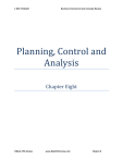 1-­‐855-­‐75-­‐BLACK Business Environment and Concepts Review Planning, Control and Analysis Chapter Eight ©Black CPA Review www.BlackCPAreview.com Chapter 8 1-­‐855-­‐75-­‐BLACK Business Environment and Concepts Review Objectives: Objective 1: Understand cost-­‐volume-­‐profit (CVP) analysis Objective 2: Know the difference between variable and absorption costing Objective 3: Understand corporate budgeting Objective 4: Understand the various methods for forecasting sales Objective 5: Understand standard costing and variance analysis Objective 6: Know the elements of project management ©Black CPA Review www.BlackCPAreview.com Chapter 8 1-­‐855-­‐75-­‐BLACK Business Environment and Concepts Review Objective 1: Understand cost-­‐volume-­‐profit (CVP) analysis A. Cost-­‐volume-­‐profit analysis is a tool used by management to determine the effects of a change in price, sales volume, variable expense, fixed expense, and profits. CVP allows management to determine the breakeven point, as the CVP provides a profitability estimate within a relevant range. a. Breakeven analysis allows management to determine either a number of units or a dollar amount that the company must sell in order for the gains to equal the expenses. Any amount over the breakeven point is profit. i. Breakeven formula: (Sales Price x X) = (variable costs x X) + fixed costs 1. X is the number of units needed to breakeven. 2. Example: A company produces a product that sells for $4. The variable costs are $0.75 per unit and fixed costs are $12,000 $4X = $0.75X x $12,000 $3.25X = $12,000 X = 3,692 units The company must sell 3,692 units at $4 to breakeven. ii. There are shortcuts to finding the breakeven point by using the contribution margin (CM). 1. This is the amount of sales less variable costs. In the prior example the contribution margin per unit was $3.25 ($4 -­‐ $0.75). 2. Short cut formula: Units to break even = Fixed costs ÷ CM per unit X = $12,000 ÷ $3.25 X = 3,692 units iii. The contribution margin can also be used to determine the dollar amount of sales needed to break even. 1. Formula = dollars needed to breakeven = Fixed costs ÷ CM percentage X = $12,000 ÷ ($3.25 ÷ $4) X = $12,000 ÷ 81.25% X = $14,769 b. Breakeven analysis for multiple products – when determining the breakeven point for a company that sells multiple products, you must determine the composite number of units using the company’s sales mix. i. Example: A company sells the following products with a sales mix of 5 units of A for every 3 units of B (5:3) and fixed costs of $25,000 Products A B Selling Price $3 $1.50 Variable costs Contribution margin $0.80 $2.20 $0.75 $0.75 ©Black CPA Review www.BlackCPAreview.com Page 8 -­‐ 1 1-­‐855-­‐75-­‐BLACK Business Environment and Concepts Review ii. Step one: Determine the composite contribution margin Composite CM = 5($2.20) + 3($0.75) Composite CM = $13.25 iii. Step two: Determine the number of composite units to breakeven Composite units needed to be sold = Fixed costs ÷ composite contribution margin Composite units = $25,000 ÷ $13.25 Composite units = 1,887 iv. Step three: Determine the units of Product A and B that need to be sold Product units = Composite units X sales mix A: 1,887 X 5 = 9,434 units of A that must be sold to breakeven And: B: 1,887 X 3 = 5,660 units of B that must be sold to breakeven The company must sell 9,434 units of A and 5,660 units of B to breakeven. Objective 2: Know the difference between variable and absorption costing A. They only difference between the two costing systems is that variable costing treats fixed manufacturing overhead as a period cost rather than a product cost. This means that variable costing expenses fixed manufacturing overhead in the period the costs were incurred, whereas absorption costing treats the fixed manufacturing overhead as a product cost, expensing the overhead when the products are sold. a. Variable costing is not acceptable for GAAP reporting so it is only used for internal reporting. b. Absorption costing is the preferred method for external reporting under GAAP. B. The different ways of costing the fixed manufacturing overhead will cause variable and absorption costing to have different net incomes. a. The relationship between variable and absorption costing: Scenario Outcome Sales = Production (a.k.a. no change in inventory) Income is the same for both Variable income < Absorption income Sales < Production (a.k.a. increase in inventory) Sales > Production (a.k.a. decrease in inventory) Variable income > Absorption income ©Black CPA Review www.BlackCPAreview.com Page 8 -­‐ 2 1-­‐855-­‐75-­‐BLACK Business Environment and Concepts Review Objective 3: Understand corporate budgeting A. Budgeting is an important tool used by management. It helps management to develop an effective strategic plan to accomplish a company’s goals. B. Master budget – A summary of all of the individual budgets within the company. This is a static budget that summarizes the following budgets: a. Financial budget – A group of budgets that includes the capital budget, the cash budget, a budget balance sheet, and statement of cash flows b. Operating budget – A group of budgets consisting of a budgeted income statement and supporting schedules C. There are three types of budgets with which to be familiar. a. Static budget – A budget developed for a specific level of activity b. Kaizen budget – A budget developed based on a continuous process of improvement c. Flexible budget – A budget that can fluctuate based on the level of activity because the variable costs are separate from the fixed costs. D. A company must prepare the budgets in the following order: a. Sales budget – A forecast of the company’s anticipated sales b. Production budget – A budget used to determine how many goods a company needs to produce. i. Formula: Budgeted Sales + Desired ending inventory Total