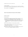 F. Plank, LINGUISTIC ANALYSIS OF VERBAL ART SS 14 9 credits, requirements: (1) oral presentation on one of the following topics in class: sign up for one by May 9, and (2) term paper on that topic: hand in by beginning of next winter semester at the latest Always remember: This is a linguistics class! Topics for class presentations and term papers, with basic reading list GENERAL READING two concise classics: Jakobson, Roman. 1960. Linguistics and poetics. In Thomas A. Sebeok (ed.), Style in language, 350-377. Cambridge, Mass.: MIT Press. [Often reprinted.] Kiparsky, Paul. 1973. The role of linguistics in a theory of poetry. Daedalus 102. 231245. [Reprinted in Donald C. Freeman (ed.) (1981), Essays in modern stylistics, 923. London: Methuen – a collection worth reading also for some of the other chapters.] and these textbooks (although we won’t really use them as textbooks): Traugott, Elizabeth Closs & Mary Louise Pratt. 1980. Linguistics for students of literature. New York: Harcourt. Fabb, Nigel. 1997. Linguistics and literature. Oxford: Blackwell. Fabb, Nigel. 2002. Language and literary structure: The linguistic analysis of form in verse and narrative. Cambridge: Cambridge University Press. -1- FEELING RIGHT, SOUNDING GOOD: FREEZES (“ZWILLINGSFORMELN”) Reference texts: binomial collections in the references below; http://ccat.sas.upenn.edu/~haroldfs/echoword/echodata.html http://en.wikipedia.org/wiki/Siamese_twins_%28linguistics%29 and you’re welcome to create your own binomials: it’s not difficult Essential reading: Dictionary/encyclopedia entries ICONICITY/ICONISM, REDUPLICATION, RHYME, ALLITERATION, ASSONANCE, ECHO WORDS Thun, Nils. 1963. Reduplicative words in English: A study of formations of the types Tick-tick, Hurly-burly and Shilly-shally. Uppsala: Carl Blom. Malkiel, Yakov. 1959. Studies in irreversible binomials. Lingua 8. 113-160. Cooper, William E. & John Robert Ross. 1975. World order. In Robin E. Grossman, L. James San, & Timothy J. Vance (eds.), Papers from the parasession on functionalism, 63-111. Chicago: Chicago Linguistic Society. Ross, John R. 1980. Ikonismus in der Phraseologie: Der Ton macht die Bedeutung. Zeitschrift für Semiotik 2. 39-56. Müller, Gereon. 1997. Beschränkungen für Binomialbildungen im Deutschen. Zeitschrift für Sprachwissenschaft 16. 5-51. Minkova, Donka. 2001. Ablaut reduplication in English: The criss-crossing of prosody and verbal art. English Language and Linguistics 6. 133-169. -2- TWISTING THE TONGUE Collections: http://en.wikipedia.org/wiki/Tongue-twister http://www.uebersetzung.at/twister/ http://www.alphadictionary.com/fun/tongue-twisters/index.html http://www.geocities.com/athens/8136/tonguetwisters.html http://www.fun-with-words.com/tongue_twisters.html Essential reading: Dictionary/encyclopedia entries ALLITERATION, RHYME Schourup, Larry. 1973. Unique New York Unique New York Unique New York. In Papers from the 9th Regional Meeting, Chicago Linguistic Society, 587596. Kupin, Joseph J. 1982. Tongue twisters as a source of information about speech production. Bloomington: Indiana University Linguistics Club. Fromkin, Victoria A. (ed.). 1973. Speech errors as linguistic evidence. The Hague: Mouton. LAPSUS LINGUAE: SPOONERISMS (“SCHÜTTELREIME”) http://en.wikipedia.org/wiki/Spoonerism http://de.wikipedia.org/wiki/Sch%C3%BCttelreim Watch: http://www.youtube.com/watch?v=GtL8PTpsalA http://www.youtube.com/watch?v=aJ0nFQgRApY http://www.bbc.co.uk/programmes/p0141lxw http://www.youtube.com/watch?v=moDPmNUnlA&list=PL2301CCEEA2ED06D9&index=7 http://www.youtube.com/watch?v=aJ0nFQgRApY&list=PL2301CCEEA2ED06D9&inde x=4 http://www.youtube.com/watch?v=M63dmXlORw&list=PL2301CCEEA2ED06D9&index=21 http://www.youtube.com/watch?v=BdMZZmTWhLs&list=PL2301CCEEA2ED06D9&in dex=25 -3- AFFECTED SPEECH GEWÄHLT, GEZIERT SPRECHEN to come later Jakobson & Waugh, Lautgestalt der Sprache 41-44 “von einer tüfen Fünsternüss” -4- WORD-MAKING, or ONOMATOPOEIA AT WORK: Whoosh! Ka-BOOM! Bzzurkk! Collections: http://collection.nlc-bnc.ca/100/200/300/ktaylor/kaboom/ http://www.worsleyschool.net/socialarts/onomato/poeia.html http://www.geocities.com/SoHo/Studios/9783/phond1.html Essential reading: Dictionary/encyclopedia entries MORPHEME, ICONICITY/ICONISM, PHONAESTHEME, IDEOPHONE http://en.wikipedia.org/wiki/Phonestheme Bolinger, Dwight L. 1950. Rime, assonance, and morpheme analysis. Word 6. 117-136. Marchand, Hans. 1969. The categories and types of present-day English wordformation. München: Beck, 2nd edn. [397ff.] Marchand, Hans. 1959. Phonetic symbolism in English word-formation. Indogermanische Forschungen 64. 146-168, 256-277. [summarised in the book above] Voeltz, F. K. Erhard & Christa Kilian-Hatz (eds.). 2001. Ideophones. 2 vols. Amsterdam: Benjamins. -5- PUZZLES: (LETTER) REBUS, “TEXTING” (txt) Reference texts: e.g., http://esl.about.com/b/a/035020.htm http://news.bbc.co.uk/2/hi/talking_point/2815461.stm http://news.bbc.co.uk/2/hi/uk_news/2814235.stm Essential reading: Dictionary/encyclopedia entries ACRONYM, REBUS http://www.fun-with-words.com/rebus_puzzles.html Helene Hovanec (1978). The Puzzler’s Paradise: From the Garden of Eden to the Computer Age. New York: Paddington Press. POSSIBLE WORDS: ANAGRAMS AND PALINDROMES to come later http://www.fun-with-words.com/anagrams.html http://www.fun-with-words.com/palindromes.html http://www.wordsmith.org/anagram/ Starobinski, Jean. 1972. Les mots sous les mots. Paris: Gallimard. -6- THE VOCATIVE CHANT: (Engl.) Jo. ohn! Ethel. bert! (Bav.) Sep. p-ee! Reference texts: easy to produce for yourselves Essential reading: Ladd, D. Robert. 1978. Stylized intonation. Language 54. 517-540. Inkelas, Sharon & Draga Zec. 1988. Serbo-Croatian pitch accent: The interaction of tone, stress, and intonation. Language 64. 227-248. p242 Hayes, Bruce & Aditi Lahiri. 1991. Durationally specified intonation in English and Bengali. In Johan Sundberg, Lennart Nord, & Rolf Carlson (eds.), Music, language, spee