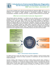 Introduction to Environmental Molecular Diagnostics New Site Characterization and Remediation Enhancement Tools EMD Team Fact Sheet—November 2011 This fact sheet, developed by the ITRC Environmental Molecular Diagnostics (EMD) Team, is one of 10 designed to provide introductory information about and promote awareness of EMDs. The following is an introduction to a selection of EMDs applicable to environmental management, including site characterization, remediation, monitoring, and closure. A glossary is included at the end of this fact sheet. What are environmental molecular diagnostics? “Environmental molecular diagnostics” is a collective term that describes a group of advanced and emerging techniques used to analyze biological and chemical characteristics of soils, sediments, groundwater, and surface water. Many of these tools were originally developed for applications in medicine, defense, and industry. However, over the last decade, great advances have been made in adapting and applying EMDs for site characterization, remediation, monitoring, and closure. EMDs are important and valuable because they can provide key information not available using traditional analytical methods (e.g., groundwater analysis for volatile organic compounds). While they are intended to complement these traditional methods, EMDs can bring a new perspective to all stages in the environmental management decision-making processes. Figure 1 illustrates the connection between the stages of the environmental site management process and the EMDs presented in this and the other fact sheets. Figure 1. Environmental molecular diagnostics. The EMDs discussed in these fact sheets fall into two distinct categories: compound specific isotope analysis (CSIA), which analyzes the isotopic composition of contaminants, and various methods that analyze biomolecules. Generally speaking, CSIA measures the amounts of stable isotopes (typically carbon, hydrogen, or chlorine) in contaminants to determine the extent of specific chemical and biochemical reactions impacting the contaminant. As a contaminant degrades through natural or engineered processes, the relative amount of each stable isotope in the contaminant can change. In contrast, the isotopic composition of contaminants is largely unaffected by processes such as dilution that do not result in 1 Introduction to EMDs EMD Team Fact Sheet—November 2011 degradation of the contaminant. Questions pertaining to a chemical’s source, degradation mechanism, and rate of degradation can be answered, supported, and resolved through CSIA. In contrast, molecular biology–based EMDs are used to determine the biochemical capabilities of microorganisms present in the environment. In many cases, specific microorganisms are responsible for the degradation of specific contaminants. Some molecular biology–based EMDs can be used to detect and quantify these known microorganisms. Other molecular biology–based EMDs can be used determine whether microorganisms are actively degrading specific contaminants and can also identify currently unknown microorganisms involved in these processes. Questions pertaining to biochemical capabilities and activities of microorganisms and changes in microbial population sizes in natural and engineered environments can be answered, supported, and resolved through these types of analyses. Why use EMDs? The environmental management process typically involves site characterization, remediation, monitoring, and closure. A variety of chemical and biological analyses (e.g., analyses for contaminants, geochemical parameters, heterotrophic plate counts) have been developed and are widely accepted as the means to understand environmental and biological conditions at each of these stages. However, characterization and remedial evaluation is best based on converging lines of chemical, geochemical, and microbiological evidence. EMDs provide useful new analytical techniques intended to complement those already in use. For example, traditional chemical analyses of contaminants by gas chromatography or gas chromatography coupled with mass spectrometry accurately quantify the amount of each contaminant but provide little or no information about the isotopic composition of the contaminants. The ability to measure stable isotopes is important because the relative amounts of each stable isotope in contaminants often change in different and predictable ways in response to biological and physical processes. The isotopic analysis of contaminants using CSIA can therefore answer otherwise irresolvable questions about a contaminant’s source, its rate of degradation, and the underlying degradation mechanism. Similar benefits can also be obtained from applying EMDs to biomolecules. Traditionally, cultivation-based methods like heterotrophic plate counts or most-probable-number analyses have been used to estimate numbers of microorganisms and the biodegradation potential of a site (Fredrickson and Balkwill 1998). Unfortunately, the overwhelming majority (>99%) of microorganisms cannot be grown in a laboratory; therefore, cultivation-based methods can dramatically underestimate the size and composition of microbial communities (Amann, Ludwig, and Schleifer 1995 and references therein). The EMDs discussed here can be used to identify and quantify key microorganisms, enzymes, and/or genes involved in specific biodegradation processes without growing microorganisms in the laboratory. These analyses can therefore answer previously unanswerable questions about the potential of sites to support biological remediation processes and the effectiveness of existing remediation approaches. While traditional techniques are still useful and often appropriate, EMDs can provide an unprecedented level of reliability, efficiency, and precision. Each EMD has advantages and disadvantages that must be considered, and the various EMDs offer more direct, comprehensive, and accurate assessment of conta