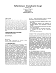 Reflections on Diversity and Design Karamjit S Gill University of Brighton Brighton, UK +44 (0)1223 971 kgillbton&yahoo.co.uk ABSTRACT If Design has something human about it, Culture is a way of living and values, Diversity is about mutuality and reciprocity, and Technology is an interfacing tool, then the purpose of technology design is about engagement. Cross-cultural interaction is then a learning process; a process of discovery, of bridging gaps of diversity. If technology is human extension and culture is an extension (e.g. language, tools, customs) of human relationships, then in what ways does its diversity impact on the relationship between the individual and the collective, and thereby the design of technological tools? The paper explores these questions towards the evolution of a conceptual framework of diversity in design. Categories and Subject Descriptors H. INFORMATION SYSTEMS General Terms Design, Human Factors Keywords Diversity, Design, Cross-cultural, Tacit dimension, Cultural structure, Interface, Connectedness, Breakdown 1. INTRODUCTION In raising issues of inter-cultural communication, cultural pathways, cross-cultural appropriation and transferability, it is a given that we are taking note of cultural differences in articulating the process of diversity and design whilst exploring the notions of engagement, participation, and mediation. From this perspective, the design process is much more than "design as a process of encoding values and meaning in artifacts"; it is about human activity and in our context it is a cultural activity. Just as all tacit knowledge cannot be explicated, so unconscious (hidden) cultural values are not amenable to explication and are therefore not codifiable. However we can learn from [13] that only by indwelling can we understand that which is not explicit if we can relate to it through practice. In other words, we can only understand the hidden culture through engagement. Community engagement in cross-cultural settings is thus more than about reaching an agreement or reaching a goal, it is about a commitment to inter-cultural relations [7]. Design for community engagement is thus is about seeking meaning in the realm of cultural diversity, and this means understanding the cultural structures which could both facilitate and hinder the exploration of meaning. To proceed with the debate on diversity and design, we need to consider some questions in order to understand diversity and its impact on cross-cultural interaction: • Can Diversity be meaningfully understood without a sociocultural context? • Can cross-cultural interactions and collaborations be meaningfully understood without understanding the structures of cultures? • How does the hidden dimension of unconscious culture impact on inter-cultural interaction? • Can cultural linearity get in the way of mutual understanding? • Can the grip of own cultural logic lead to intercultural breakdown? • How do we tame cultural projections? Hofstede & Hofstede [10] and Trompenaars & Hampden-Turner [18] show us how to comprehend cultural diversity and understand its dimensions, and Edward Hall [8] shows us a way of comprehending the nature of cultural diversity and crosscultural interactions. Martin Buber’ s seminal work on I and Thou [1,15] gives us an insight into how to visualise inter-cultural interaction through the lens of I-Thou and I-It. Gill SP [7] explores how our increasing interface with computer based technologies impacts our relations with each other, raising the need to rethink the nature of interface itself: how we make sense of each other, handle ambiguities, identify problems, negotiate differences, empathise, and make skilled judgements. These works show us a way forward to understand "intercultural interactions across diverse cultural groups" and reflect on cultural diversity and design. This short presentation reflects on the relationships between design, culture, interaction, diversity and interconnectedness. 2. ON DESIGN AND CULTURE If design has something human about it, its raison d'etre should be the humanisation of technology and the environment in which it is developed and implemented. In the pursuit of design for society, we should be aware that 'Technology knows only one value, that of efficiency, and techno-centric culture nibbles at the humansociety relationships’ [12]. Design for communication rooted in a universal measurement of culture may function most of the time, but when it fails or malfunctions, there may be no way to find out why. To counter this focus, socially responsive design culture should take a cross-disciplinary and cross-cultural perspective and act as an effective antidote to the possible ravages of the technocentric culture. As our world is becoming more and more complex and multi-cultural, increasing numbers of people from diverse cultures intermingle and intersect in a complicated network of global technological forces. Whilst these networks are creating a vibrant third sub-culture, there is a concern that we may de-link the local from the global, and lose sight of the bigger crosscultural picture. Cross-cultural designers need to remember that social realities are full of the human predicament of living in a world of small things and boundless dreams, and thus a challenge for design is to find harmony between these predicaments. Designers, especially those dealing with social realities, need to not only be sensitive to the needs of immediate users, they need to also anticipate the needs of future users. For example, those participating in crowd sourcing and those involved in social policies such as health care, education and the environment, may not be the ultimate users of social resources, and any knowledge arising from crowd sourcing needs to be adapted to both the present and future needs. Whenever we are concerned with design of ICT tools for community development, whether this be for social inclusion, building social ca