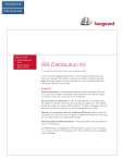 Print Entire Kit Print Forms Only What’s inside: • IRA Distribution Form • Bank Transfer Service Form IRA Distribution Kit To authorize distributions from your Vanguard IRA® If you meet the eligibility requirements, you can begin withdrawing funds from your Vanguard IRA without incurring a premature distribution penalty. Note: If taking required minimum distributions, use our Required Minimum Distribution Service Form instead. Eligibility Normal distribution. You may begin making withdrawals at age 59½ even if you continue working. Contributions and investment earnings are subject to ordinary income tax in the year of the withdrawal. Early (premature) distribution. If you’re under age 59½, your distributions are subject to ordinary income tax and may also be subject to a 10% federal penalty tax unless you meet an IRS exception. To claim an exception from the premature distribution penalty, you must complete IRS Form 5329. Rollover to an employer plan (for traditional IRAs only). Before using the enclosed form, check with your employer to determine whether your plan has its own requirements for accepting IRA assets. Inherited traditional IRA distribution. If the original IRA owner has died and you’re the beneficiary. For details about your eligibility for IRA distributions, consult your tax advisor. You may also refer to IRS Publications 571, 575, and 590, which are available online at irs.gov. Important information about charitable distributions You’re eligible to transfer distributions from your IRA to an eligible charitable organization—without having to count the distributions as taxable income—only if all of the following are true: • You’re age 70½ or older. • The distribution is from a traditional or Roth IRA. (The distribution cannot be made from a SEP-IRA or SIMPLE IRA maintained under an employer plan and to which you contributed during the year of the distribution.) • The distribution is for an amount that would otherwise be taxable (i.e., pre-tax contributions and earnings). • The distribution is being made directly from your Vanguard account to the charity. (This includes checks payable to the charity and sent to your address of record.) • The charity is a qualified charity, as defined in section 170(b)(1)(A) of the Internal Revenue Code. Certain charities— such as donor-advised funds, charitable remainder trusts, and private foundations—are excluded. • The amount of your charitable distribution when added to the total amount of your charitable IRA rollover distributions made this calendar year, doesn’t exceed $100,000. • Amounts withheld for taxes aren’t sent to the charity and wouldn’t qualify as a charitable distribution. For more information about the rules of charitable distributions from an IRA, consult your tax adviser. Special notes about determining taxability of distributions The information below and on the next page pertains to the taxability of IRA withdrawals. Roth IRA conversions If you converted a traditional IRA to a Roth IRA, you paid tax on those assets in the year you converted them. Therefore, you won’t owe tax when you withdraw them. But if you withdraw converted assets less than five years after the conversion and you’re under age 59½, you may owe a 10% federal penalty tax on the withdrawal.* Nondeductible IRA contributions If you made nondeductible contributions to your traditional IRA or rolled over after-tax money from an employer’s retirement plan, part of your IRA distributions will be exempt from additional federal income tax. To calculate the taxable portion of your distribution, complete IRS Form 8606 (available online at irs.gov or by phone at 800-TAX-FORM). See Section VII of The Vanguard Traditional IRA, SEP-IRA, and Roth IRA Disclosure Statement for an example of this calculation. If you’re withdrawing assets from a Roth IRA, use IRS Form 8606 to calculate the taxable amount of any earnings you’ve withdrawn. Inherited IRAs (traditional and Roth) • You may have to take minimum distributions. When you inherit an IRA, the IRS generally requires you to take your first annual distribution by December 31 of the year after the year in which the IRA’s original owner died. You may have additional options if you inherited the IRA from your spouse. • Some traditional IRA withdrawals may be tax-free. If an inherited traditional IRA includes nondeductible contributions or after-tax money rolled over from an employer’s retirement plan, part of your withdrawals may be tax-exempt. To determine the taxable amount of your withdrawals, refer to the original owner’s IRS Form 8606 or Form 8606 worksheets, or consult a tax advisor. • Some Roth IRA withdrawals may be taxable. If you inherited a Roth IRA from someone who established a Roth IRA less than five years ago, you may owe tax on part of your withdrawals. For details, see The Vanguard Traditional IRA, SEP-IRA, and Roth IRA Disclosure Statement. • There’s no penalty for early withdrawal. You can withdraw money at any age from your inherited IRA—either traditional or Roth—without incurring a federal penalty tax. Before completing the enclosed form for an inherited IRA, call us for instructions at 800-662-2739. *The 10% penalty doesn’t apply to rollovers from one IRA to another within a 60-day period or to distributions taken because of your death or disability. Also exempt from the penalty are withdrawals taken to pay for a first home ($10,000 lifetime maximum), to cover medical expenses in excess of 7.5% of adjusted gross income, to pay health insurance premiums if you received unemployment compensation for at least 12 consecutive weeks, to pay qualified postsecondary education costs, or for substantially equal periodic payments. For more details, read Section VII of The Vanguard Traditional IRA, SEP-IRA, and Roth IRA Disclosure Statement, or consult a professional tax or financial advisor. See IRS Form 5329 for instructions on tax