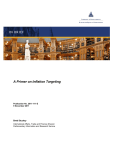 A Primer on Inflation Targeting Publication No. 2011-111-E 9 November 2011 Brett Stuckey International Affairs, Trade and Finance Division Parliamentary Information and Research Service A Primer on Inflation Targeting (In Brief) HTML and PDF versions of this publication are available on IntraParl (the parliamentary intranet) and on the Parliament of Canada website. In the electronic versions, a number of the endnote entries contain hyperlinks to referenced resources. Ce document est également publié en français. Papers in the Library of Parliament’s In Brief series provide succinct, objective and impartial overviews of current issues. They are prepared by the Parliamentary Information and Research Service, which carries out research for and provides information and analysis to parliamentarians and Senate and House of Commons committees and parliamentary associations. Publication No. 2011-111-E Ottawa, Canada, Library of Parliament (2011) CONTENTS 1 MONETARY POLICY IN CANADA ........................................................................... 1 2 WHY INFLATION MATTERS .................................................................................... 3 3 PROS AND CONS OF INFLATION TARGETING .................................................... 3 3.1 Pros ........................................................................................................................ 3 3.2 Cons ....................................................................................................................... 4 4 ALTERNATIVES TO AN INFLATION-TARGETING REGIME .................................. 4 4.1 Decrease the Inflation Target ................................................................................. 4 4.2 Broadened Mandate to Mitigate the Effects of Asset Bubbles .............................. 5 4.3 Price-Level Targeting ............................................................................................. 5 LIBRARY OF PARLIAMENT i PUBLICATION NO. 2011-111-E A PRIMER ON INFLATION TARGETING * On 8 November 2011, the Bank of Canada and the federal government renewed their inflation-targeting agreement, which guides monetary policy in Canada. Monetary policy is focused on how much money is circulating in the economy and what that money is worth, while inflation can be defined as a persistent rise in the average price of goods and services or the “cost of living.” The main objective of Canada’s monetary policy, the conduct of which is the responsibility of the Bank of Canada, is to keep inflation low and stable. “Inflation targeting” refers to a system in which monetary policy decisions are made, implemented and communicated according to a clearly stated inflation target or target range. Debates about the merits of such a monetary policy framework have been occurring in Canada for at least two reasons: global instability associated with the recent financial and economic crisis, and consideration of the merits of changes to the 2006 inflation-targeting agreement between the Bank of Canada and the federal government. Although inflation targeting is thought to be successful in Canada and in other countries that employ such a framework, some analysts believe that Canada’s monetary policy regime could be improved through such means as a change to the inflation target or the target range, a clear mandate for the Bank of Canada to take action to mitigate the effects of asset bubbles as they appear, and/or a change from targeting inflation to targeting prices. This paper describes how the Bank of Canada conducts monetary policy, explains how inflation affects the economy, identifies some of the pros and cons of inflation targeting, and mentions several of the alternatives to inflation targeting. 1 MONETARY POLICY IN CANADA The Bank of Canada Act, enacted in 1934, stipulates in its preamble that the Bank of Canada shall mitigate “fluctuations in the general level of production, trade, prices and employment, so far as may be possible within the scope of monetary action.” The Bank of Canada carries out monetary policy by setting the target for the overnight interest rate, which is the rate at which financial institutions borrow and lend one-day funds among themselves. When the Bank of Canada alters this very short-term interest rate, other interest rates – such as the prime lending rate set by financial institutions – usually move in tandem with it. Changes in these rates affect consumers, with implications for upward and downward pressure on prices, and – consequently – the inflation rate. Since 1991, the Bank of Canada and the federal government have formally agreed on an inflation-targeting regime. The initial objective of this joint agreement, which contained a target inflation rate of the midpoint of a 2%–4% target range, was to LIBRARY OF PARLIAMENT 1 PUBLICATION NO. 2011-111-E A PRIMER ON INFLATION TARGETING reduce inflation – as measured by the All-Items, or total, Consumer Price Index (CPI)1 – from a rate of about 5% in late 1990 to 2% by the end of 1995; in fact, a 2% rate was achieved in January 1992. A new agreement with a target range of 1%–3% was reached in 1993, and the five subsequent agreements2 – the most recent of which was signed in November 2011 – have focused on keeping total CPI at an annual rate of 2%, the midpoint of that range. In conducting monetary policy, the Bank also considers “core” CPI, which excludes eight of the most volatile components in the basket of goods and services that is used to calculate the CPI and adjusts the remaining components to remove the effect of changes in indirect taxes. Figure 1 shows core and total CPI,3 and the 1%–3% target range and its 2% midpoint, since the first joint agreement was reached in 1991. Since 1993, when the 1%–3% target range was agreed to, core CPI has exceeded the upper limit of the target range once and has been below the lower limit of the target range three time